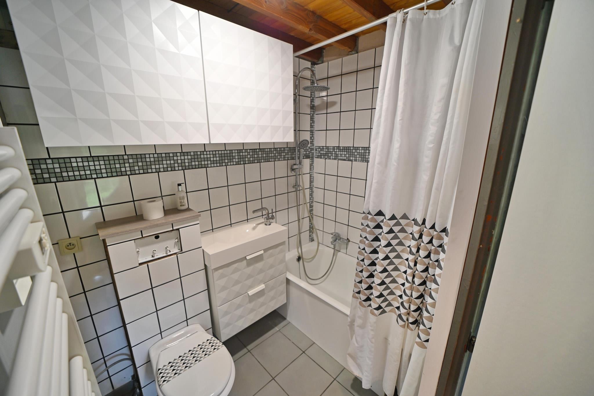 Stueetage: (åbent køkken(spisebord, komfur(induktion), ovn, mikrobølgeovn, køleskab), stue / spisestue(dobbeltsovesofa, Fjernsyn(digital), kakkelovn(pille), sofahjørne), badeværelse(badekar, håndvask, toilet)) På 1. etage: (soveværelse(dobbeltseng), soveværelse(køjeseng)) varme(elektrisk), terrasse(overdækket), havemøbler, parkering