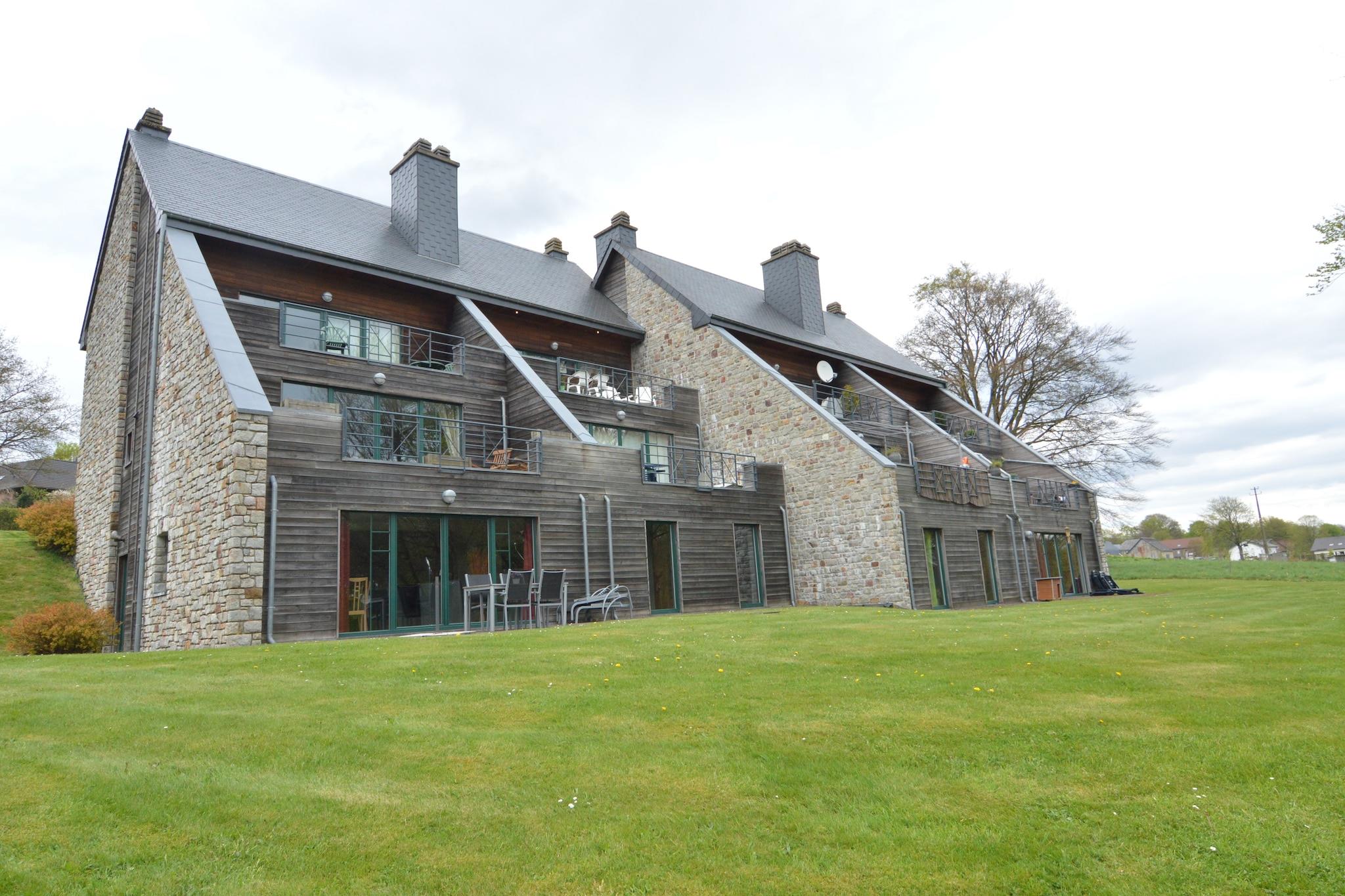 På kanten af søen Robertville finder du dette veludstyrede kompleks, der består af flere ejendomme. De 6 pers. Pænt indrettet bolig, ligger på 2. sal og har en balkon (18 m) med udsigt over søen og skovene. Du har et rummeligt græsareal omkring boligen.
