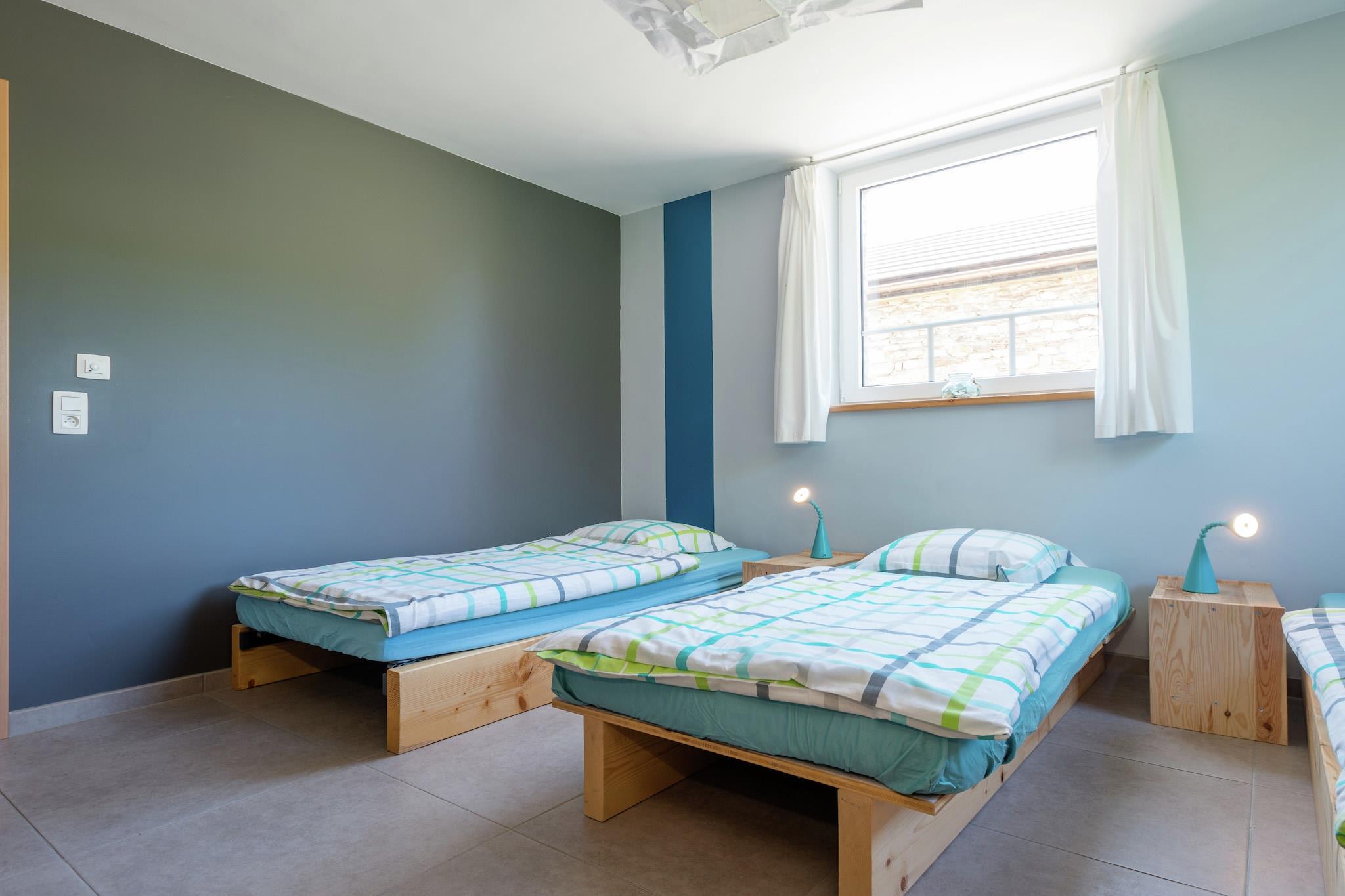 Gennemsyret af charmen fra svundne tider, byder dette 4-værelses feriehus i Ovifat velkommen til op til 9 gæster til en fredelig flugt på landet. Omgivet af skove og tæt på en sø, er det perfekt for naturelskere og familier (bemærk: ungdomsgrupper er ikke tilladt). Hjemmet har en sauna, boblebad og en grill, der tilbyder komfort og foryngelse i hver sæson. Den private have er et paradis for afslapning, meditere blandt blomster, fodre fuglene, eller bare nyde den friske luft med havemøbler ved din side. Interiøret med træaccent, herunder et hyggeligt opholdsrum og et veludstyret køkken, fremkalder en rustik varme, der er både nostalgisk og indbydende. Beliggende kun 1 km fra langrendsløjper og 2 km fra offentlig transport, er hjemmet godt forbundet, men alligevel saligt roligt. Byens centrum er i nærheden til daglige ting, og det omkringliggende område byder på vandreture, cykling og naturskønne udsigter, der vil løfte dit humør. Et sjælfuldt Ardenner-tilflugtssted venter.