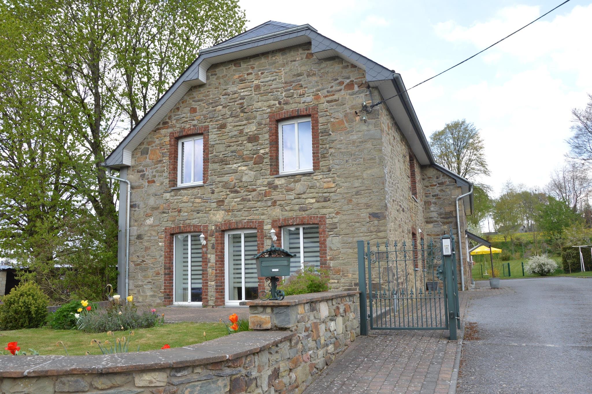 En familieferiebolig, ideel til at udforske Ardennerne. Du er her i byen Waimes, to kilometer fra centrum, i et meget roligt boligområde. Boligen er et anneks til ejerens hus, men du har en helt egen indgang. Boligen er blevet fuldstændig renoveret, den er moderne og varm på samme tid. Til din rådighed: en privat terrasse med udendørs bord og stole, tre rummelige soveværelser, et pillefyr i stuen, hvor du kan nyde Netflix, et fuldt udstyret køkken og en internetforbindelse. Haven deles med ejeren, men er fuldstændig tilgængelig for dig. ") passerer 50 meter væk og giver dig mulighed for at nå Malmedy, Saint Vith og Sourbrodt på cykel. Om sommeren og vinteren er der mange aktiviteter til rådighed for dig inden for en radius af 5 til 10 km: de alpine skiløjper i Ovifat, Lake Robertville, slottet Reinhardstein og selvfølgelig naturparken Fagnes.