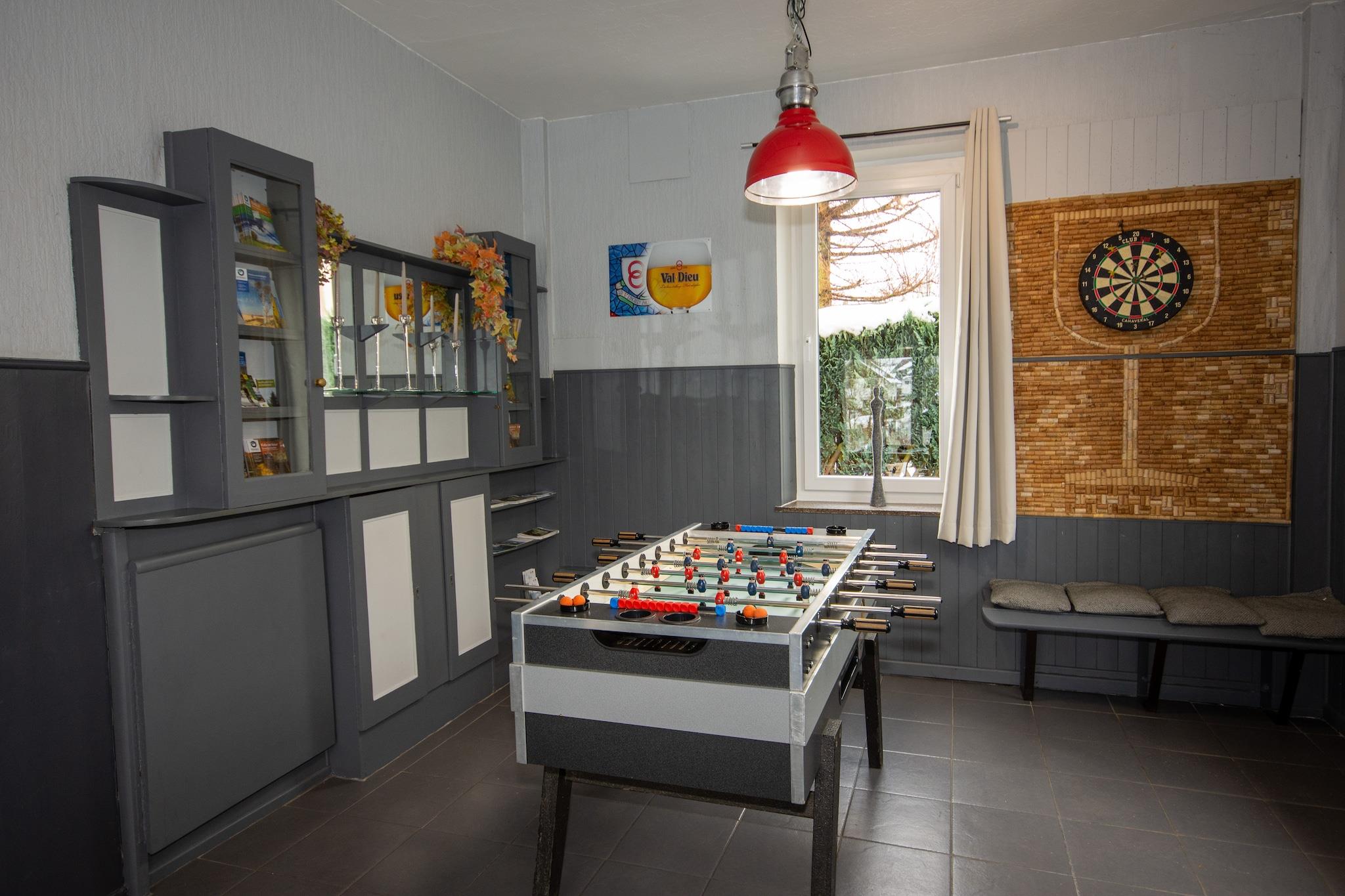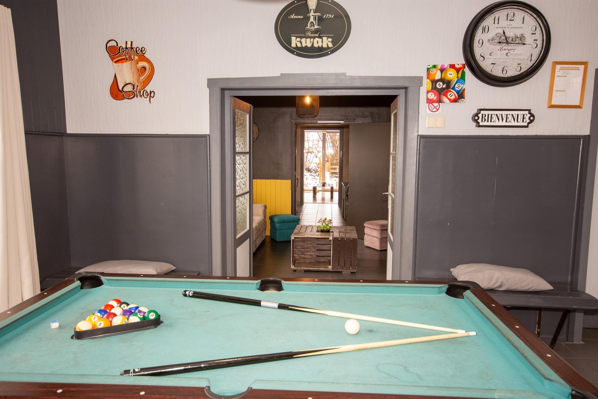 Beliggende i den naturskønne Waimes-region tilbyder dette elegante palæ et fredeligt tilflugtssted omgivet af natur. Med rummeligt interiør og en møbleret have er det en ideel tilflugtssted for store familier eller grupper. Efter en dag ude kan du slappe af i den private sauna eller nyde frisk luft i den fredfyldte udendørs. Den charmerende bymidte med butikker og spisesteder ligger kun 1 km væk, perfekt til afslappede aftenture. For dagsture, tag til den nærliggende sø (10 km) for fantastiske solnedgange eller udforsk de kulturelle perler i Spa og Liège, begge fyldt med historie og lokal karakter. Slap af i den hyggelige lounge med et glas vin eller nyd et spil billard og bordfodbold. Palæet byder også på 20 cykler til at udforske området på to hjul. En barneseng, høj stol og adgang til kæledyr gør det familievenligt. Parkering er tilgængelig på stedet, hvilket sikrer et stressfrit ophold.