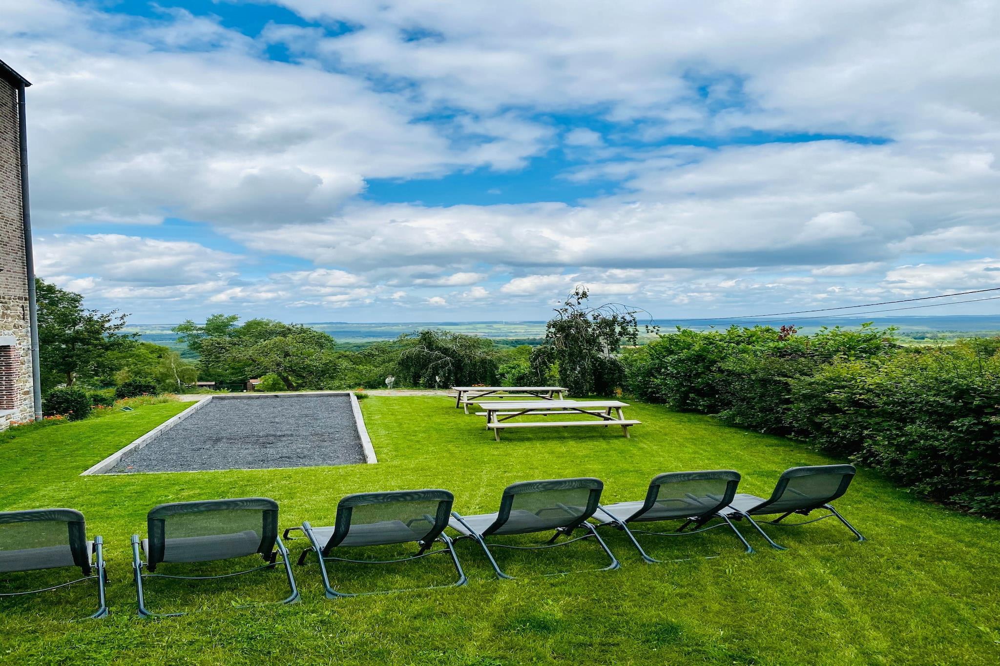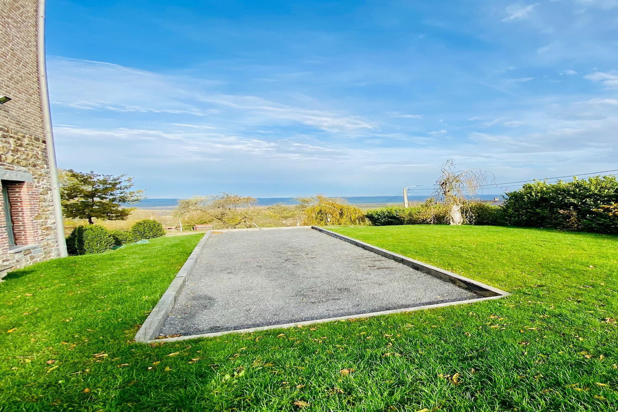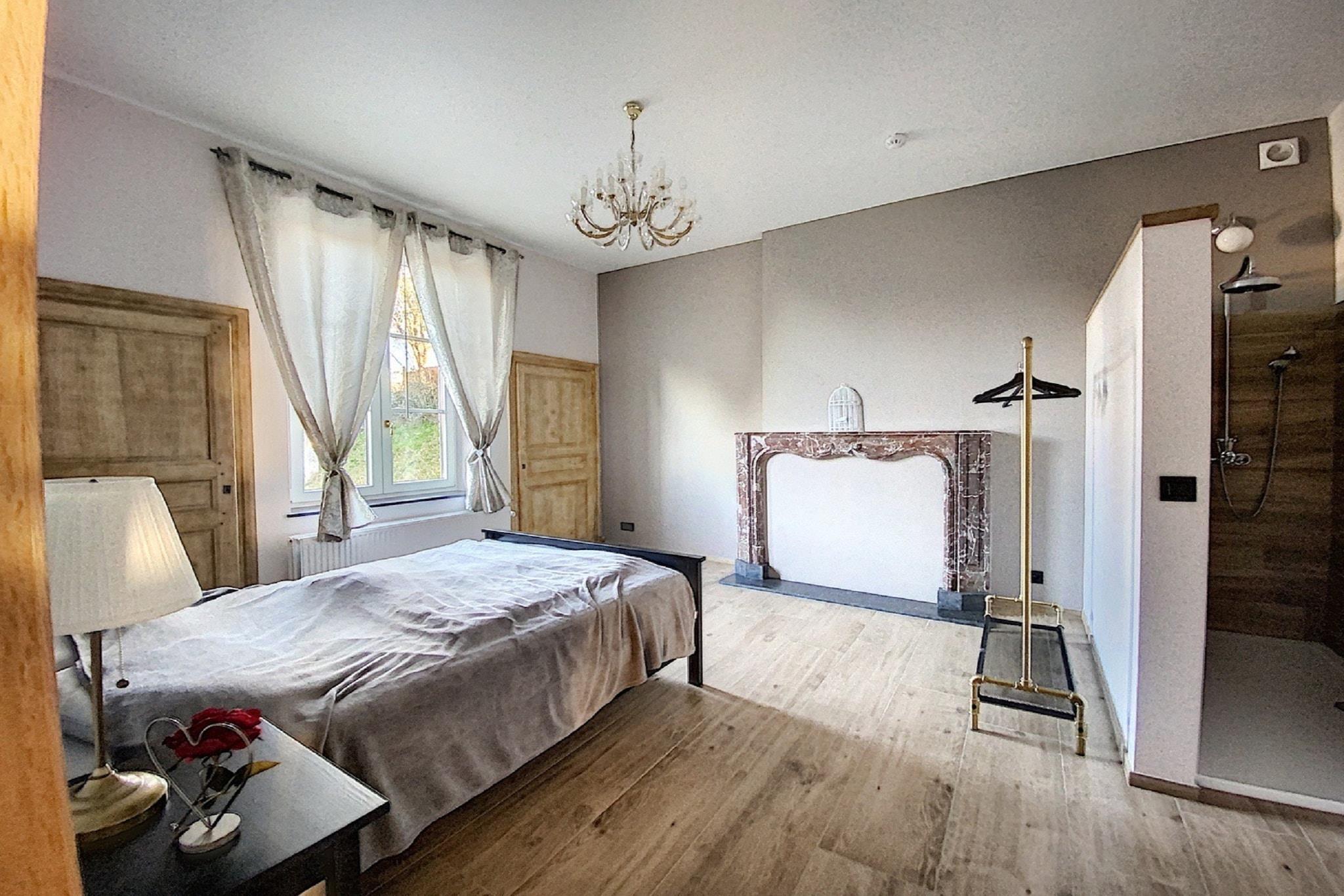 Gemt væk fra landevejen og oppe over landsbyen, tilbyder dette rummelige palæ til 14 gæster en flot udsigt over dalen og fredelige omgivelser til at slappe af. Med fem smukt indrettede soveværelser, en overdækket terrasse og en frodig have, er det det perfekte tilflugtssted for familier eller grupper, der søger komfort og forbindelse med naturen. Bekvemt beliggende nær lokale restauranter og den offentlige swimmingpool i Givet, placerer hjemmet dig også inden for rækkevidde af kulturelle perler. Bare en kort køretur væk kan du udforske Vor Frue af Beauraings helligdom, slentre gennem den naturskønne Castel Park, eller vove dig til Citadel of Dinant og det eventyrlignende Vêves Slot, begge under en time væk. Indenfor kan boligen prale af smagfuld indretning, højt til loftet og en indbydende stue komplet med et billardbord, pejs og bar - ideel til hyggelige aftener. Det fuldt udstyrede køkken har en generøs bordplade til gruppemåltider, mens hvert soveværelse har eget badeværelse med brusekabine eller badekar og blødt sengetøj. Udendørs kan børn nyde gyngestativet, boulebanen og legeredskaberne, mens voksne slapper af på liggestole eller samles omkring havens spiseplads til måltider under stjernerne.