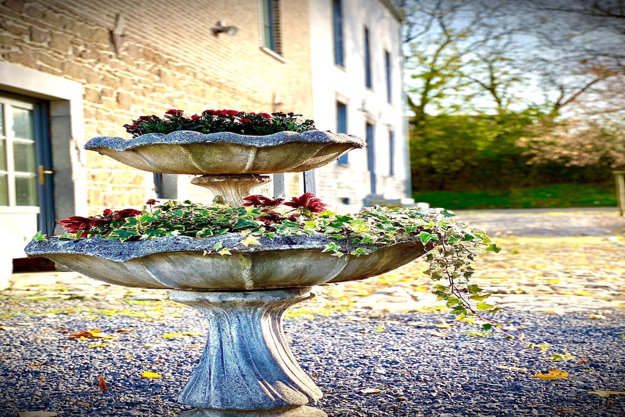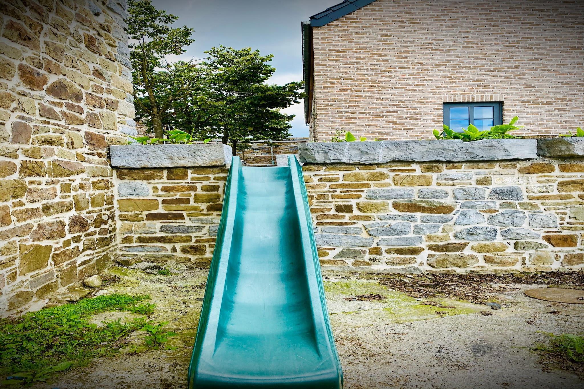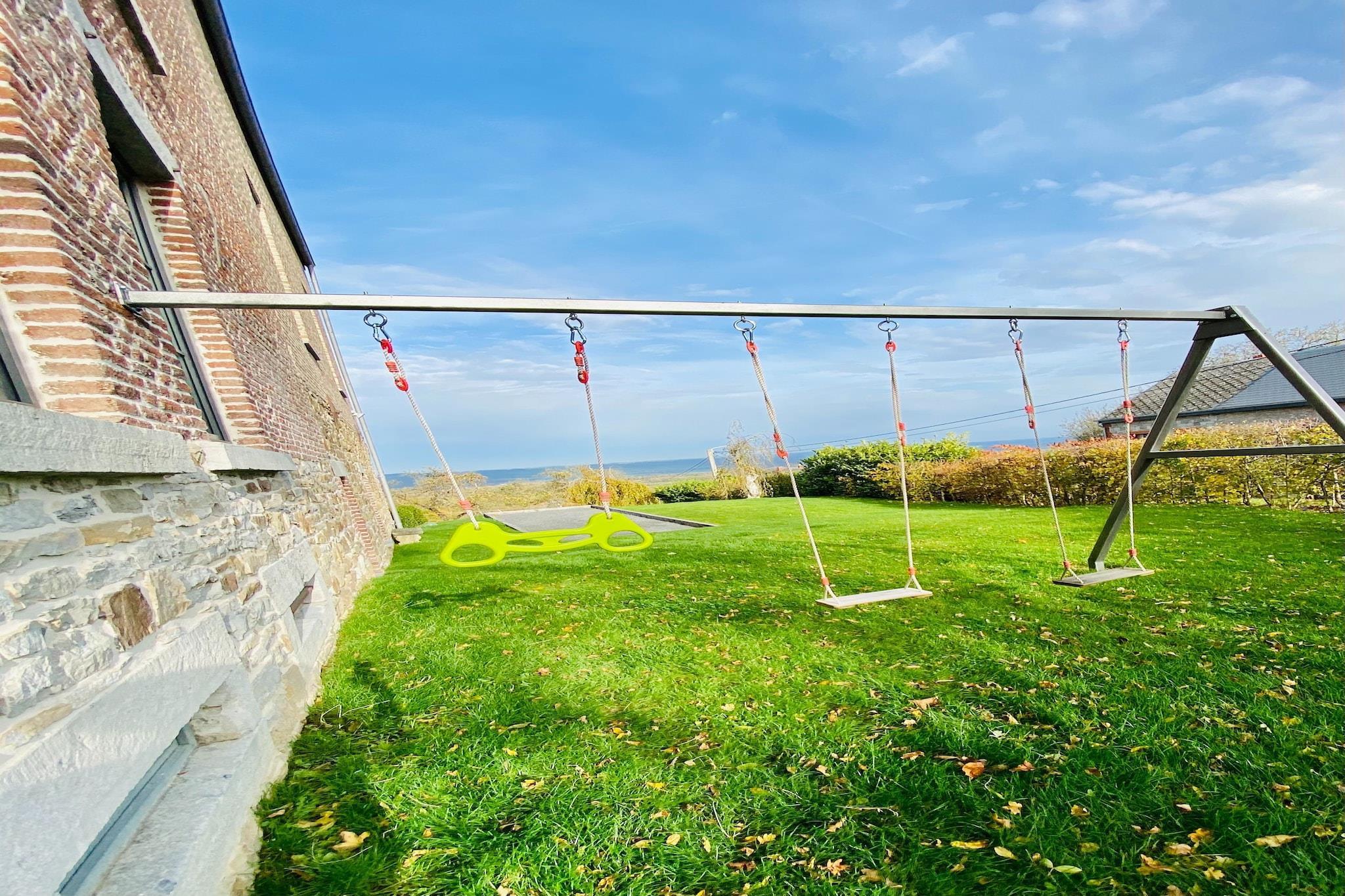 Gemt væk fra landevejen og oppe over landsbyen, tilbyder dette rummelige palæ til 14 gæster en flot udsigt over dalen og fredelige omgivelser til at slappe af. Med fem smukt indrettede soveværelser, en overdækket terrasse og en frodig have, er det det perfekte tilflugtssted for familier eller grupper, der søger komfort og forbindelse med naturen. Bekvemt beliggende nær lokale restauranter og den offentlige swimmingpool i Givet, placerer hjemmet dig også inden for rækkevidde af kulturelle perler. Bare en kort køretur væk kan du udforske Vor Frue af Beauraings helligdom, slentre gennem den naturskønne Castel Park, eller vove dig til Citadel of Dinant og det eventyrlignende Vêves Slot, begge under en time væk. Indenfor kan boligen prale af smagfuld indretning, højt til loftet og en indbydende stue komplet med et billardbord, pejs og bar - ideel til hyggelige aftener. Det fuldt udstyrede køkken har en generøs bordplade til gruppemåltider, mens hvert soveværelse har eget badeværelse med brusekabine eller badekar og blødt sengetøj. Udendørs kan børn nyde gyngestativet, boulebanen og legeredskaberne, mens voksne slapper af på liggestole eller samles omkring havens spiseplads til måltider under stjernerne.