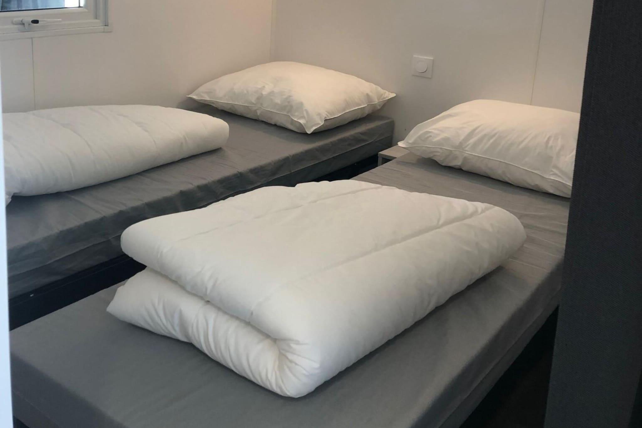 Nyd det bedste fra to verdener i den fantastiske Siesta Lodge, et hyggeligt tilflugtssted, der kombinerer letheden ved et mobilhome med den finurlige charme fra et glampingtelt. Denne hytte på 30 m² er omhyggeligt designet til små familier eller grupper og tilbyder alt, hvad du har brug for til en fredfyldt og mindeværdig ferie. Træd indenfor og find et hyggeligt og indbydende opholdsområde, hvor to enkeltsenge i soveværelset med eget bad suppleres af en sovesofa gemt væk i loungen, hvilket giver fleksible sovepladser for alle. Køkkenet er velindrettet med alle de hvidevarer, du har brug for til at lave lækre måltider, og det en-suite toilet og badeværelse giver et unikt strejf af bekvemmelighed og privatliv. Siesta Lodge har sin egen privat parkeringsplads, så du kan gå rundt i området uden besvær. Siesta Lodge er ikke bare et fredeligt tilflugtssted, det er perfekt placeret til eventyr. Antwerpen, en historisk og kulturel by, ligger kun 30 minutter fra lodgen. Gå ikke glip af Rubens House, Chokolademuseet og en af de ældste zoologiske haver i Europa. Hvis du tager familien med, ligger Bobbejaanland kun 20 minutter væk, en adrenalinspækket forlystelsespark med familievenlige shows. Naturelskere vil også sætte pris på de dejlige vandrestier i området, og for at få det sjovt med vandet, tilbyder De Lilse Bergen og Netepark udendørs swimmingpools at plaske rundt i på varme sommerdage. Efter at have udforsket området og oplev den lækre campingplads og Spanien, hvor restauranten La Cantina og Spanien kan nydes. sangria serveres med levende flamenco-guitarmusik i weekenden. Eller, for en mere afslappet oplevelse, kom forbi campingpladsens bar for at slappe af med drinks og snacks.