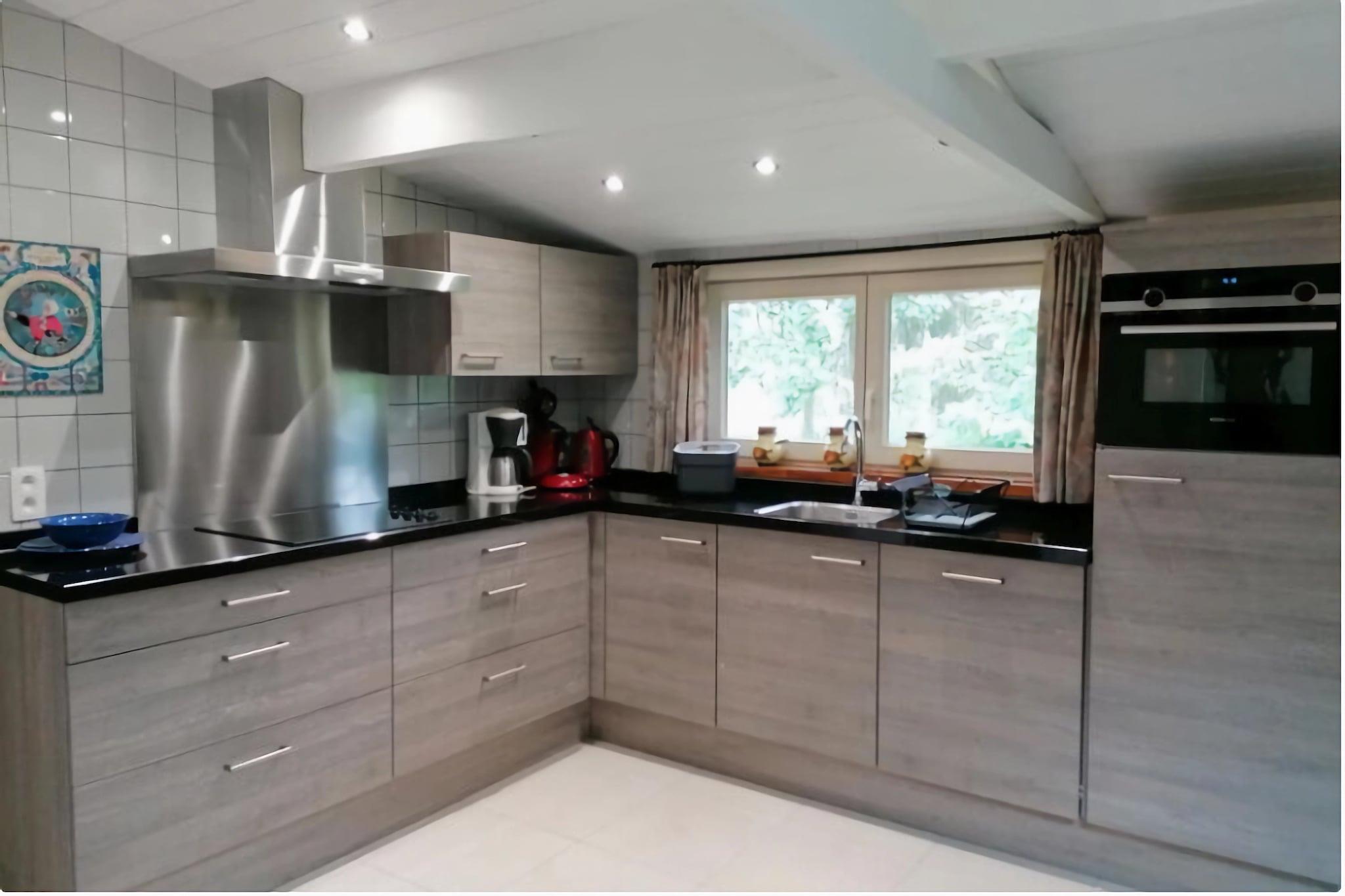 Het chalet bevat alleen voorzieningen. Vaatwasser, wasmachine, oven. Het chalet was schoon en goed bijgehouden. De tuin is prachtig. De ontvangst was gastvrij en we hebben echt genoten!