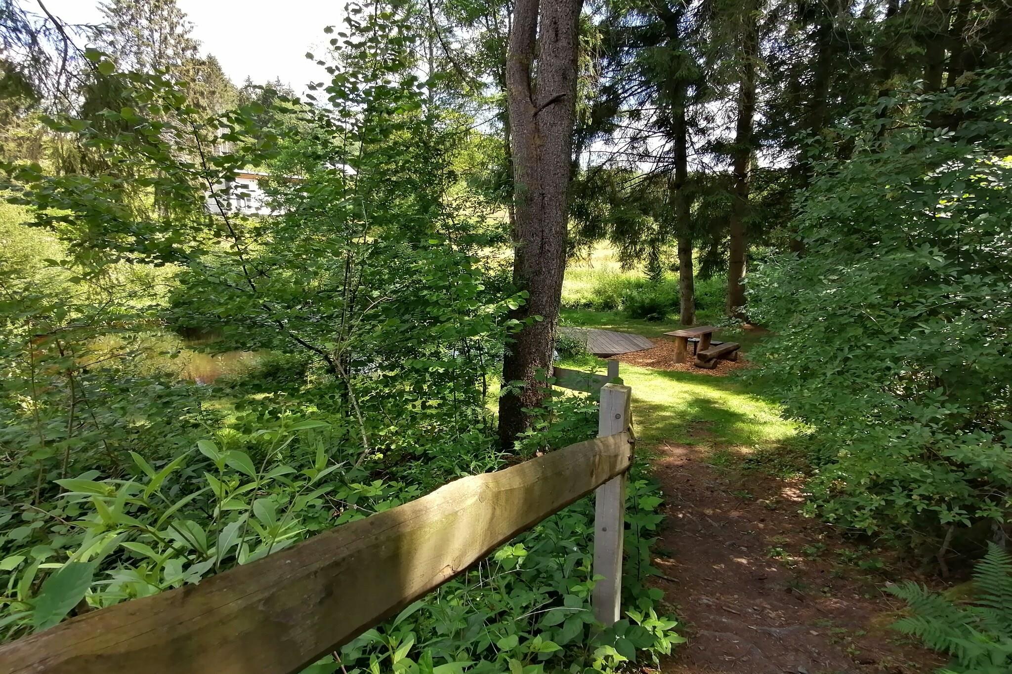Prachtige chalet met alles erop en eraan. De overdekte BBQ was ook top. De sauna hebben we wel niet gebruikt maar die was ook tip-top in orde. Mijn man heeft het meest genoten van de privé visvijver met forellen en een kabbelend beekje ernaast. Ook leuk voor de hond dat de tuin volledig omheind is. Vele mooie wandelingen te doen in de streek mooi voorbereid met kaarten gemaakt door de eigenaar. Ook een leuk cafétje op maar 600 meter afstand