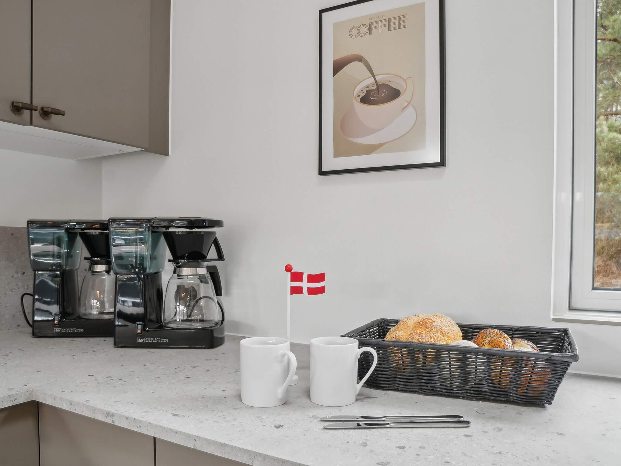 Det store køkkenalrum er husets naturlige samlingspunkt, hvor I kan tilberede lækre måltider og nyde dem ved det lange spisebord. Brændeovnen skaber en hyggelig stemning og giver ekstra varme på kølige dage.