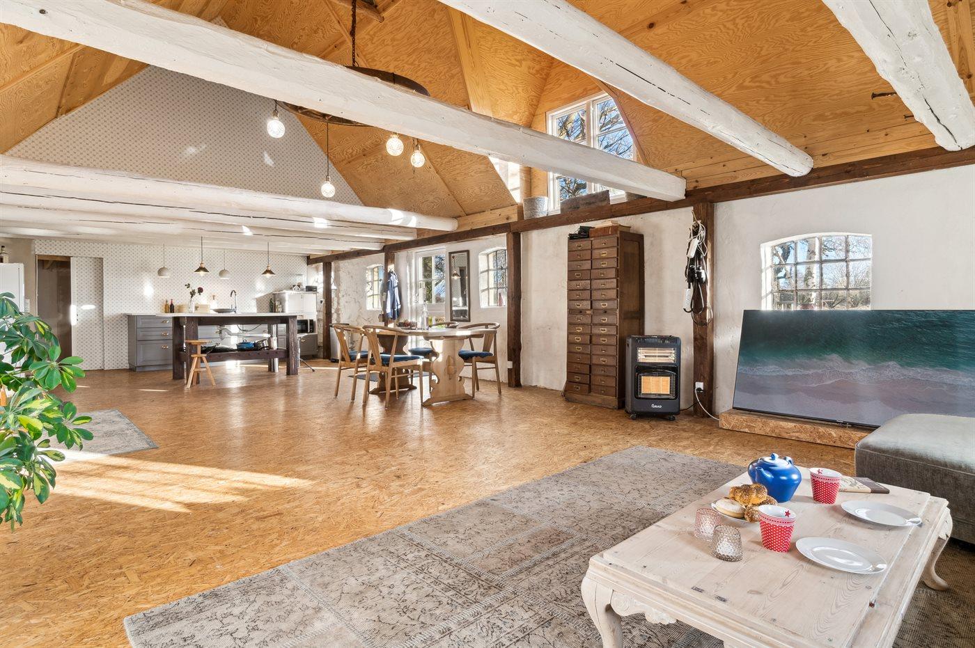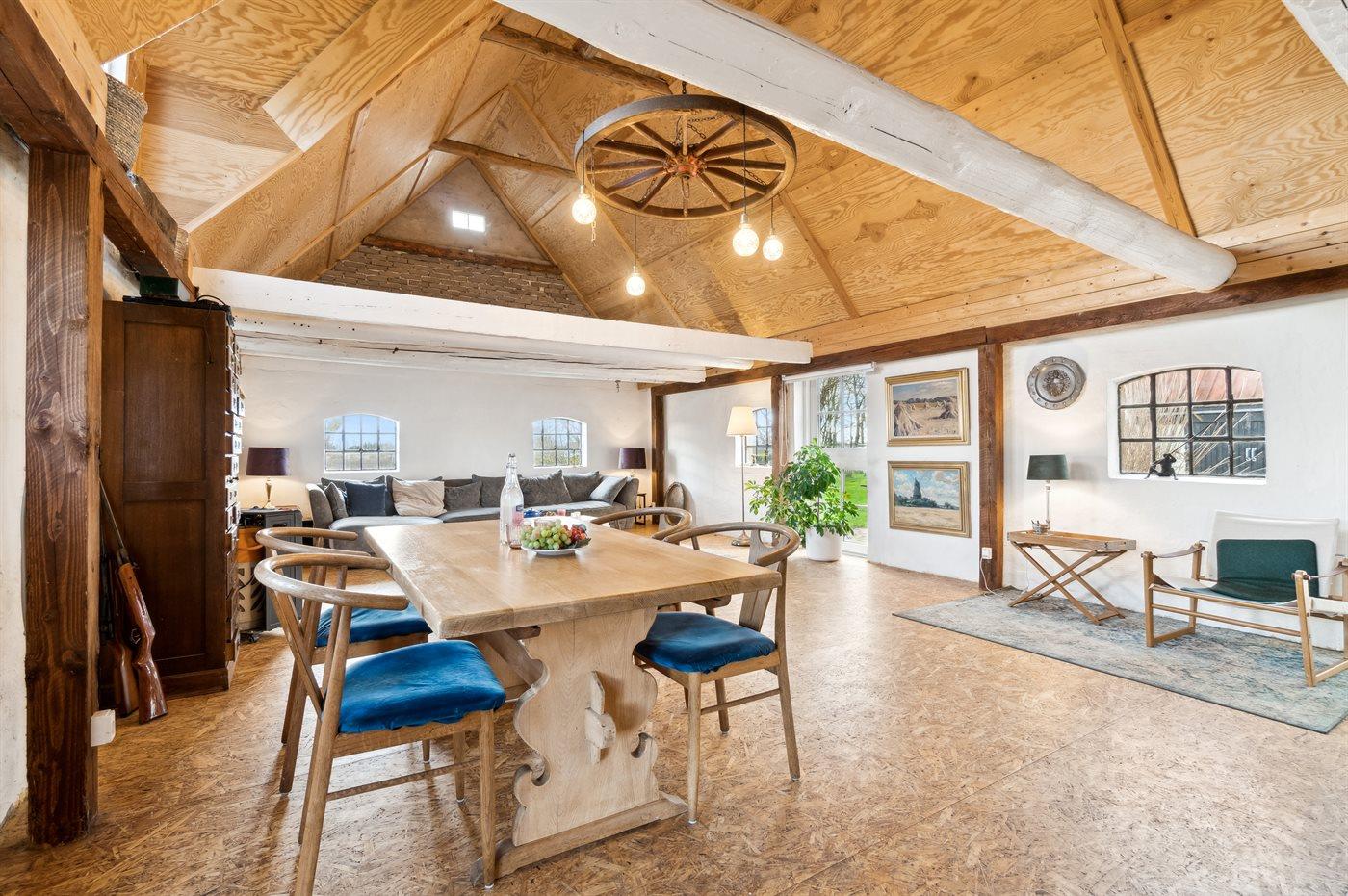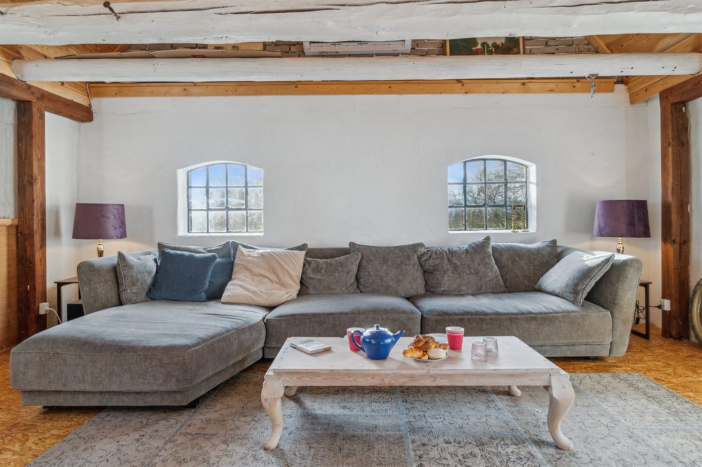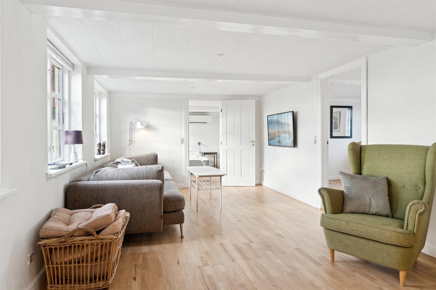 Sommerhuset er i to afdelinger, der selvfølgelig er forbundne med hinanden. En meget stor stue med brændeovn, køkkenafdeling og i det hele god plads til alle og så en mindre stue med plads til hygge og fællesskab. Har man brug for ro til at læse en bog eller at sidde og slappe af, så anbefales reposen, som et roligt område. Den store have, der omgiver huset, er delvis lukket, så man lade hundene løbe frit i indhegningen, når der er brug for det. Ønsker man fred og ro, så er dette virkelig et godt sted at feriere.