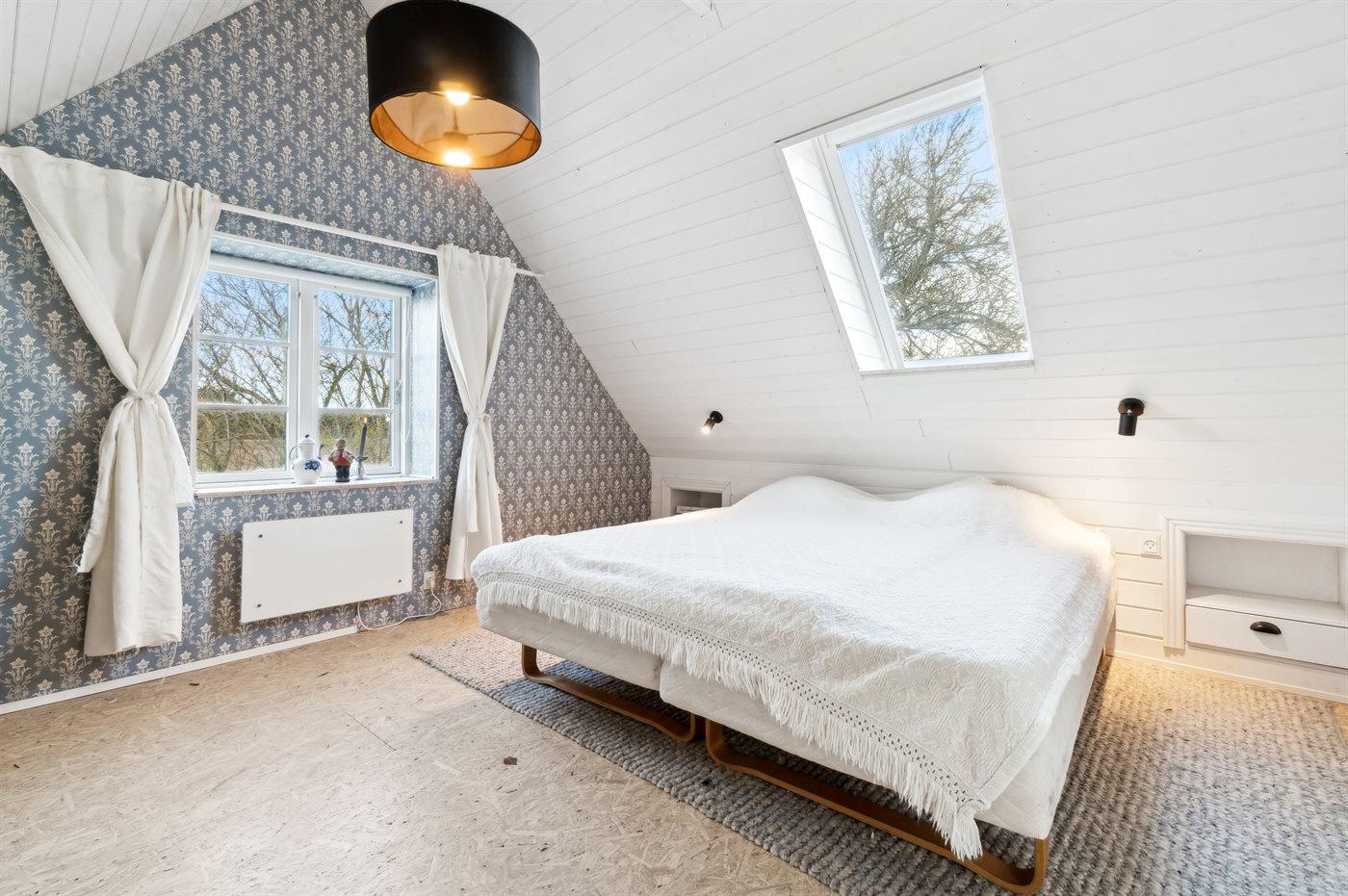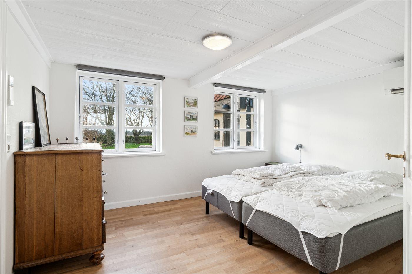 Der er i alt 6 soveværelser. Sovepladserne fordeler sig på: 10 sovepladser i dobbeltsenge. 2 sovepladser i enkeltsenge.