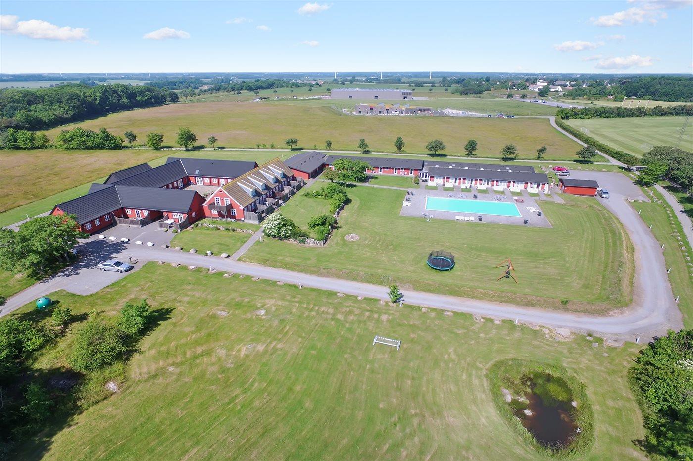 Lejligheden ligger på et fællesareal med bl.a. udendørs swimmingpool (16 x 10 x 0,7-1,8 m) samt legeplads med gynge, sandkasse og trampolin samt petanquebane og lille boldbane med fodboldmål. I perioden fra den 15/6 til 15/9 (fra kl. 8:00 til kl. 20:00) opvarmes swimmingpoolen vha. varmepumpe.