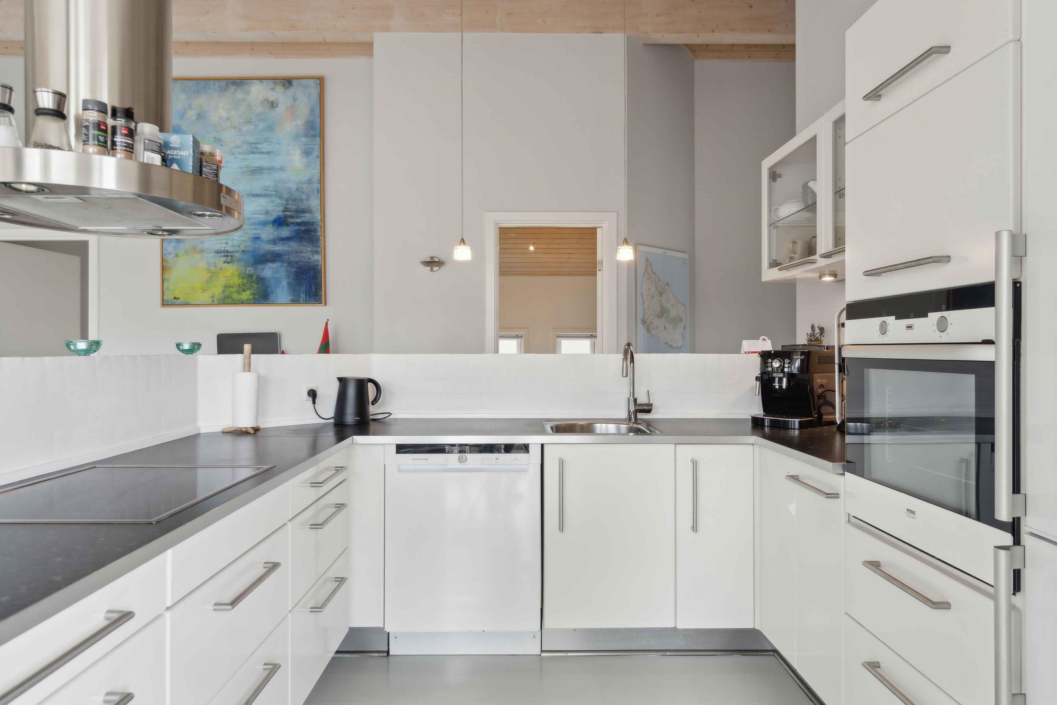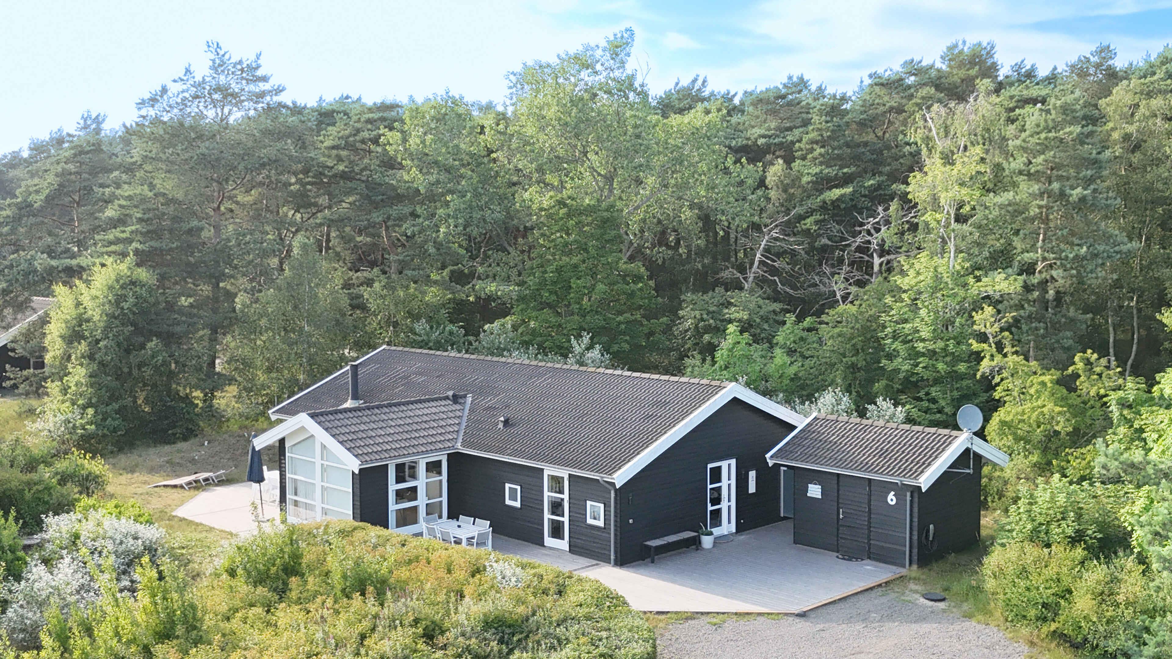 Her kan du holde et dejlig ferie i et smukt og naturskønt område i Øster Sømarken. Dejligt køkken med spiseplads, åbent ind til stuen. Huset er lyst med store vinduespartier og flere udgange til terrassen. Huset er moderne møbleret med lædersofa, gode stole og bord. Det store badeværelse har spabad og godt med plads. Der er gulvvarme i badeværelserne, stuen og køkken. Tre soveværelser har dobbeltsenge og et værelse har to enkelt senge. Alle senge er gode boksmadrasser og der er god plads i værelserne. Nyd livet udenfor På den store terrasse som vender mod syd, findes der to sæt havemøbler. En lille del af terrassen er overdækket, og her er der mulighed for at søge skygge. Udendørs bruser kan bruges fra primo maj til medio september. Udhuset kan benyttes til opbevaring af cykler, barnevogne, bagage eller andet. Der er plads til parkering af bil lige ved siden af huset, hvor der er elbils-lader (Type 2 med 11 kW). Kom tæt på de lokale oplevelser Huset ligger tæt ved Sømarkens dejlige børnevenlige sandstrand. Det ligger lidt tilbagetrukket fra de andre huse i området. På Holsteroddevej findes der en legeplads og flere åbne pladser velegnet til leg. Bakkarøgeriet ligger tæt på området, og her kan man spise frokost.