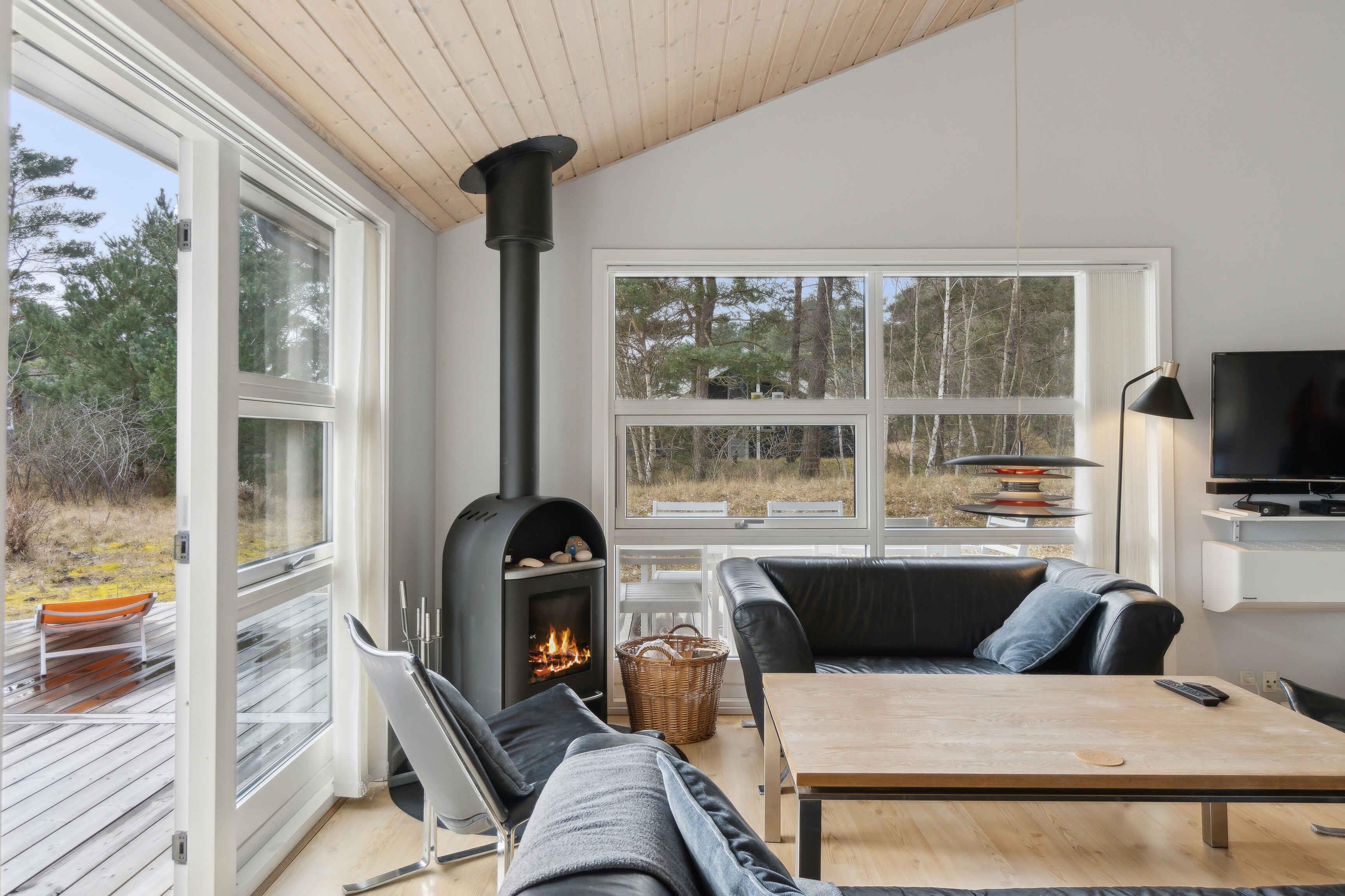 Dejligt sommerhus med god plads, åbent køkken/alrum, stue med brændeovn, 2 badeværelser, spa, sauna, stor terrasse i træ, udendørsbruser. Der er blot 250 m til en lækker sandstrand. Sommerhuset er udstyret med varmepumpe og gulvvarme.