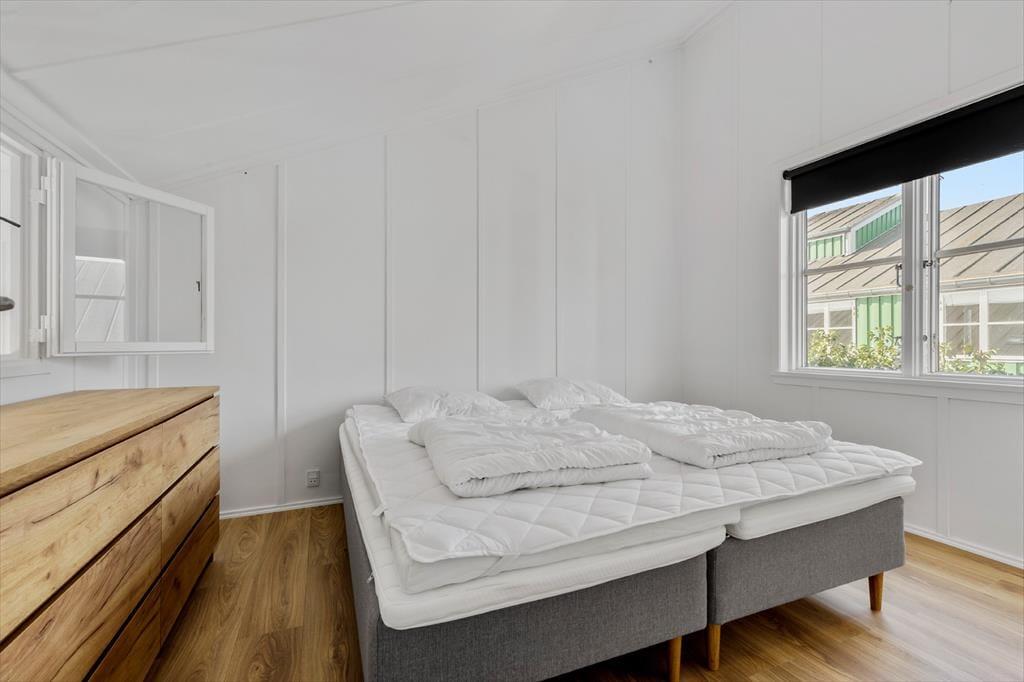 Når du åbner døren til sommerhuset, møder du et lyst og indbydende rum, hvor feriefølelsen straks falder på plads. Stuen er hyggeligt indrettet med komfortable møbler og store vinduer, der lukker masser af dagslys ind og giver dig udsigt til de rolige omgivelser. Køkkenet ligger i åben forbindelse med opholdsrummet, så du kan være en del af fællesskabet, mens du laver mad. Her er alt, hvad du skal bruge til både en hurtig morgenmad og en lækker feriemiddag. De tre soveværelser er velindrettede og giver dig et behageligt sted at trække dig tilbage efter dagens oplevelser. Badeværelset er lyst og funktionelt – præcis som man ønsker sig i et moderne feriehus.