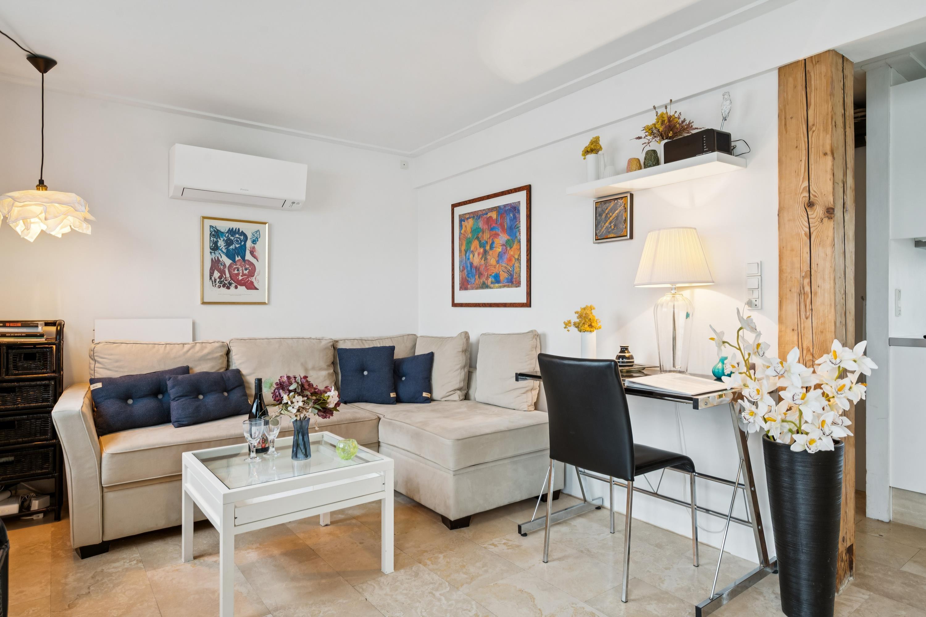 Hyggelig lejlighed med stor terrasse og natur