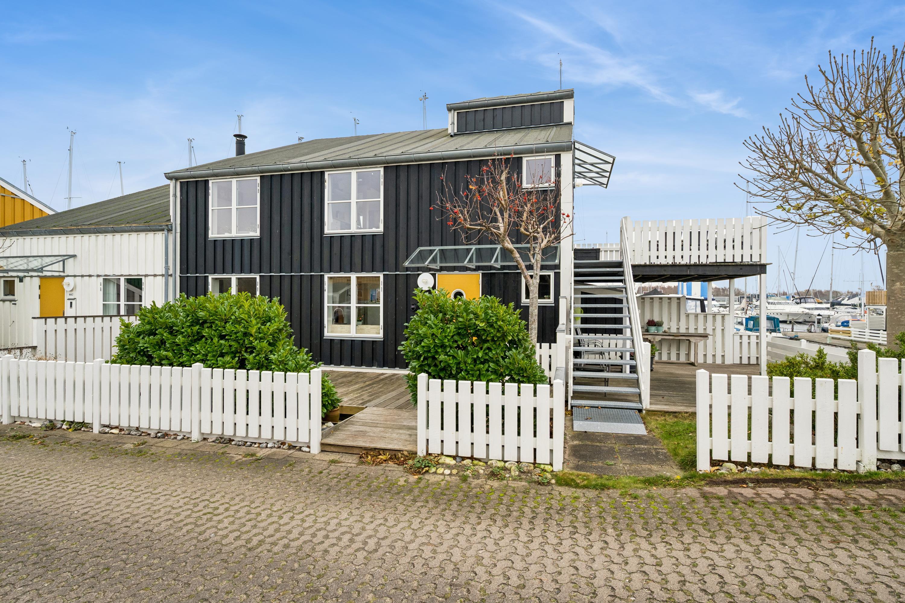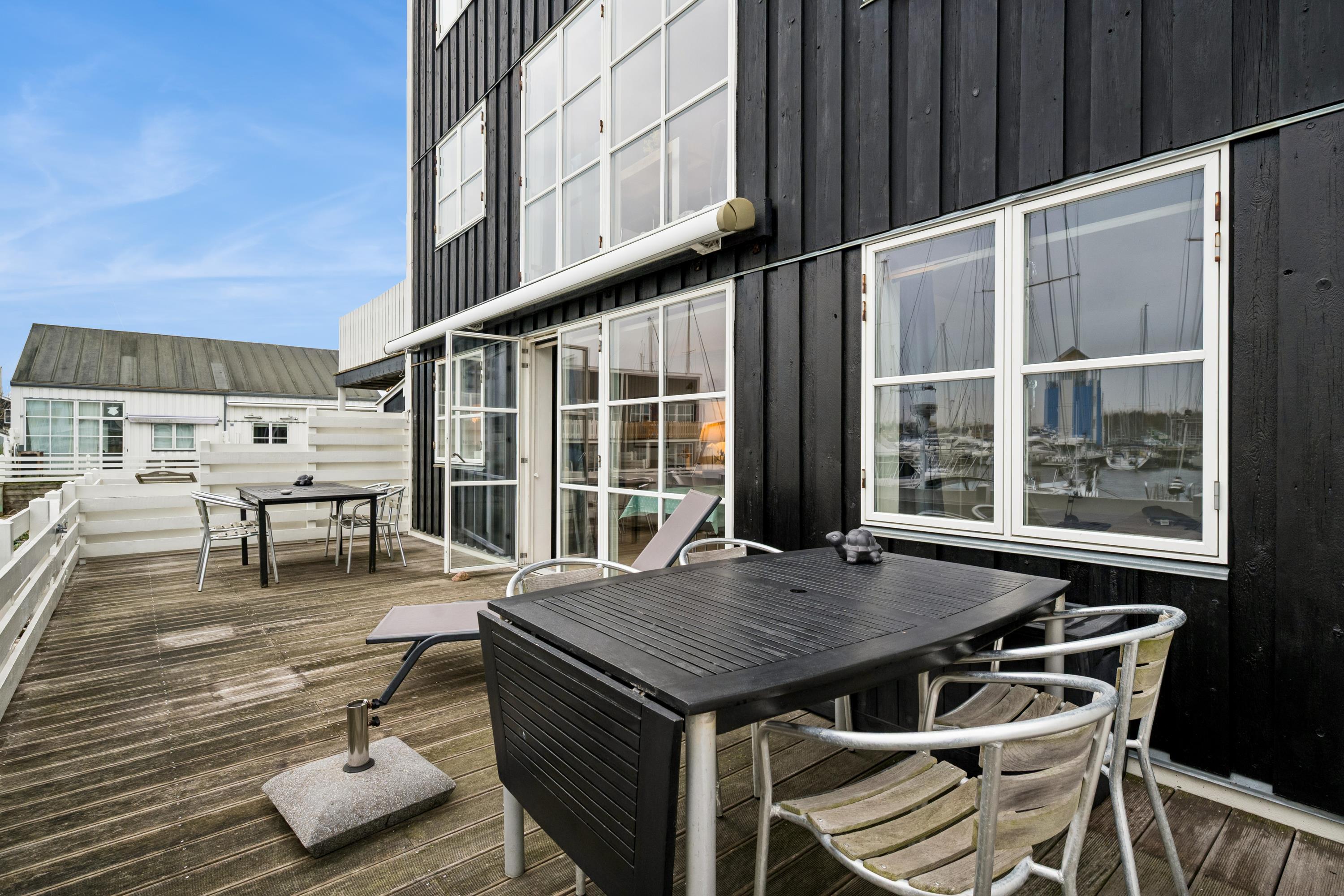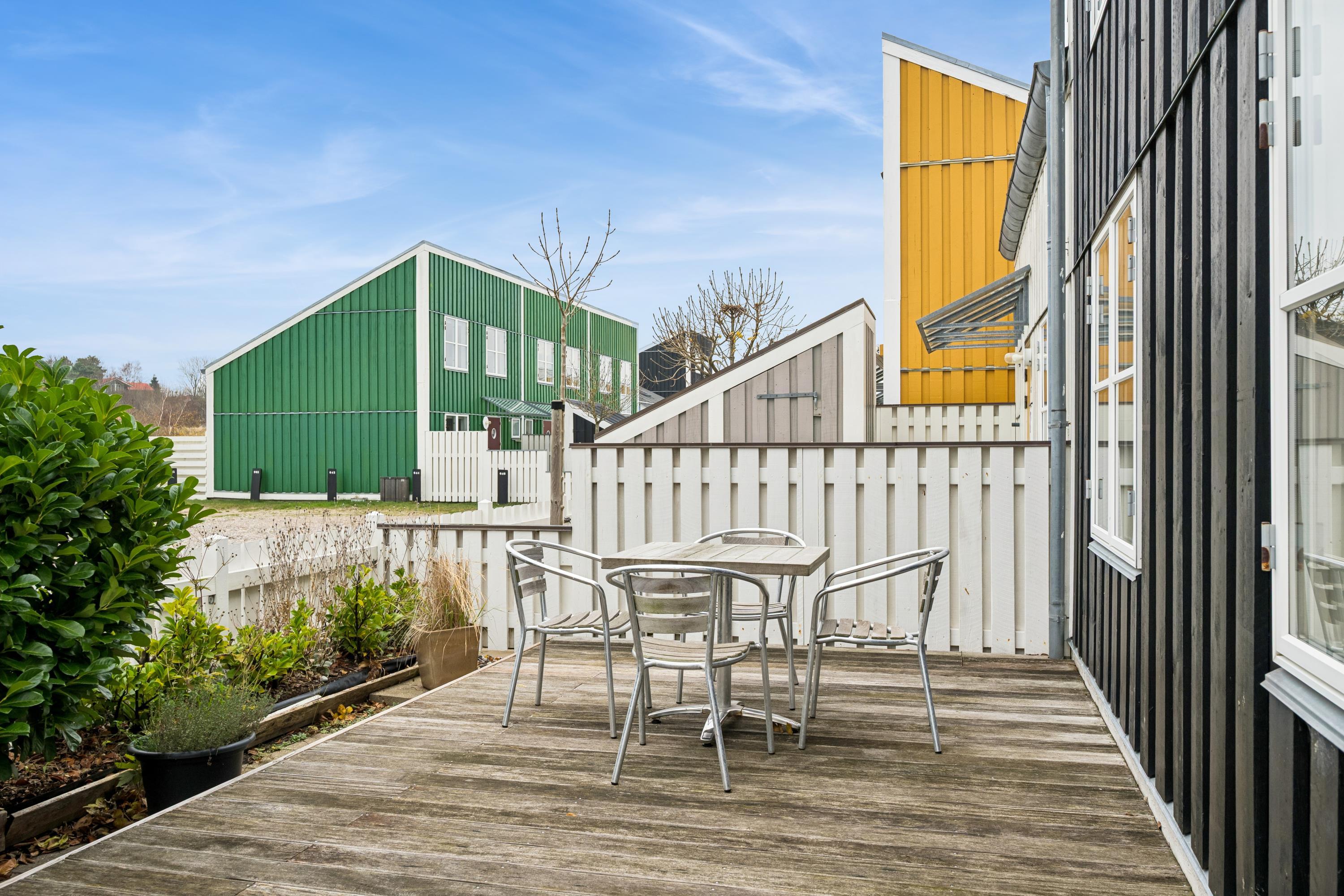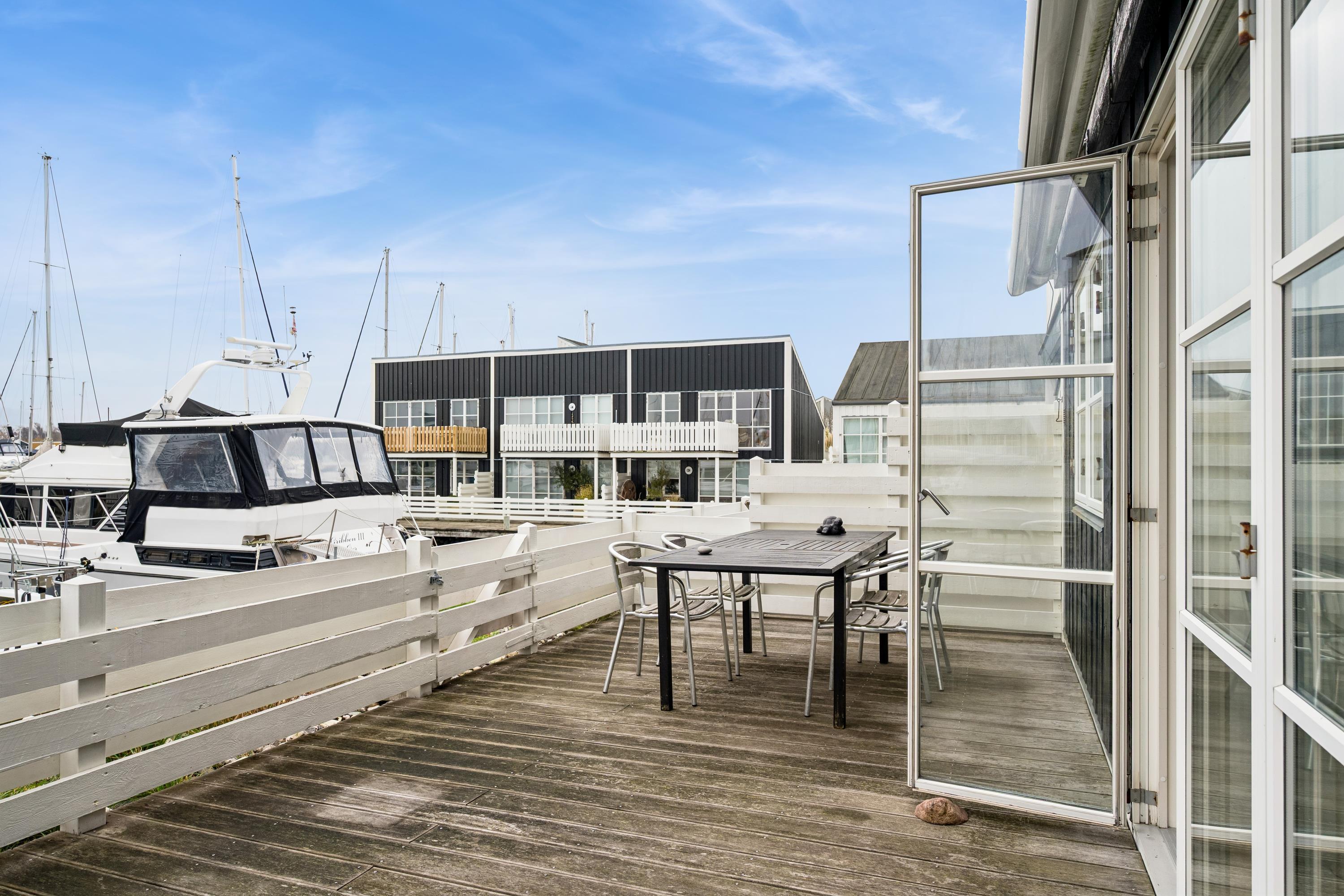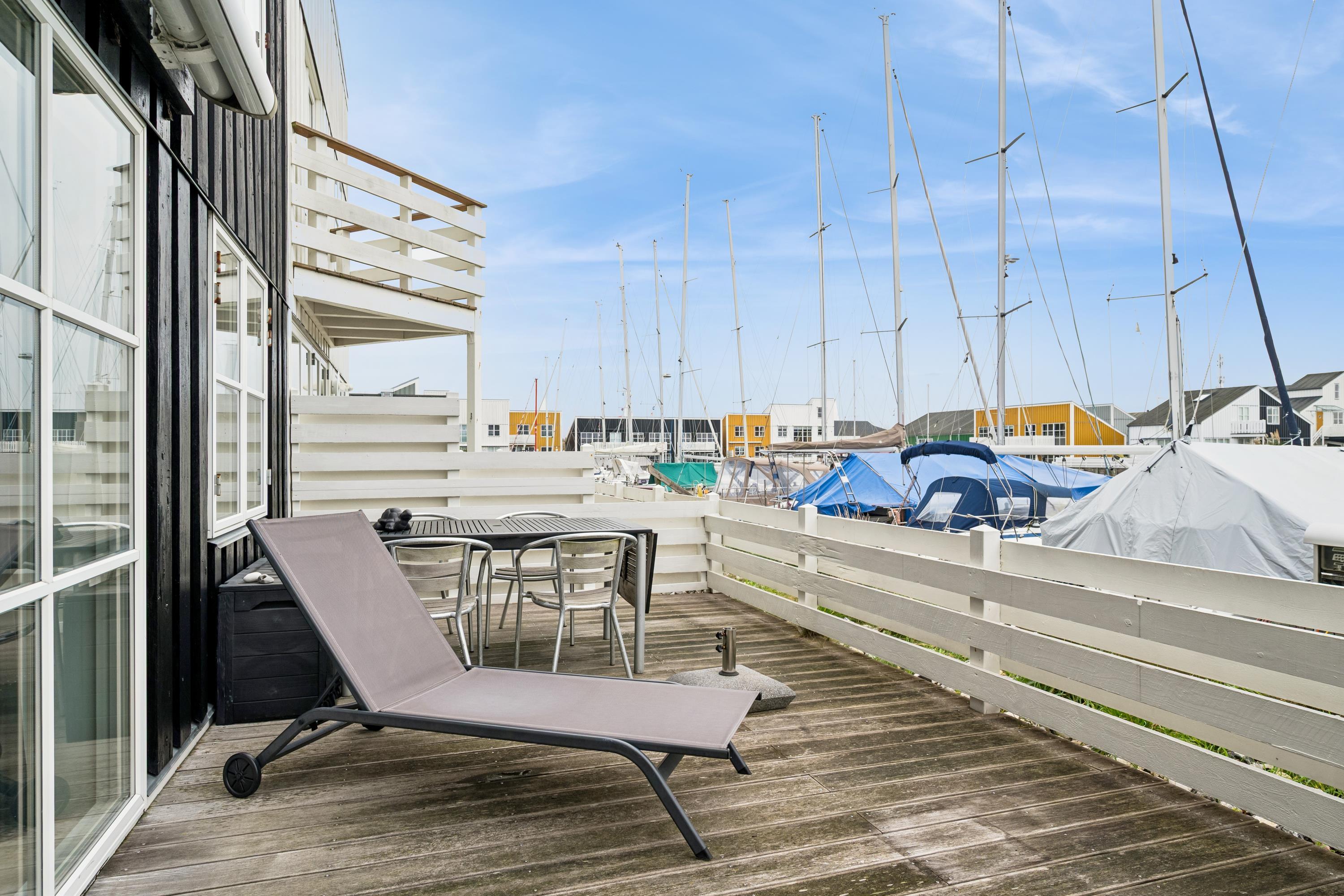 Hyggelig et plans lejlighed i Øer Maritime Ferieby med stor terrasse og adgang til sportsfaciliteter i naturskønne omgivelser.