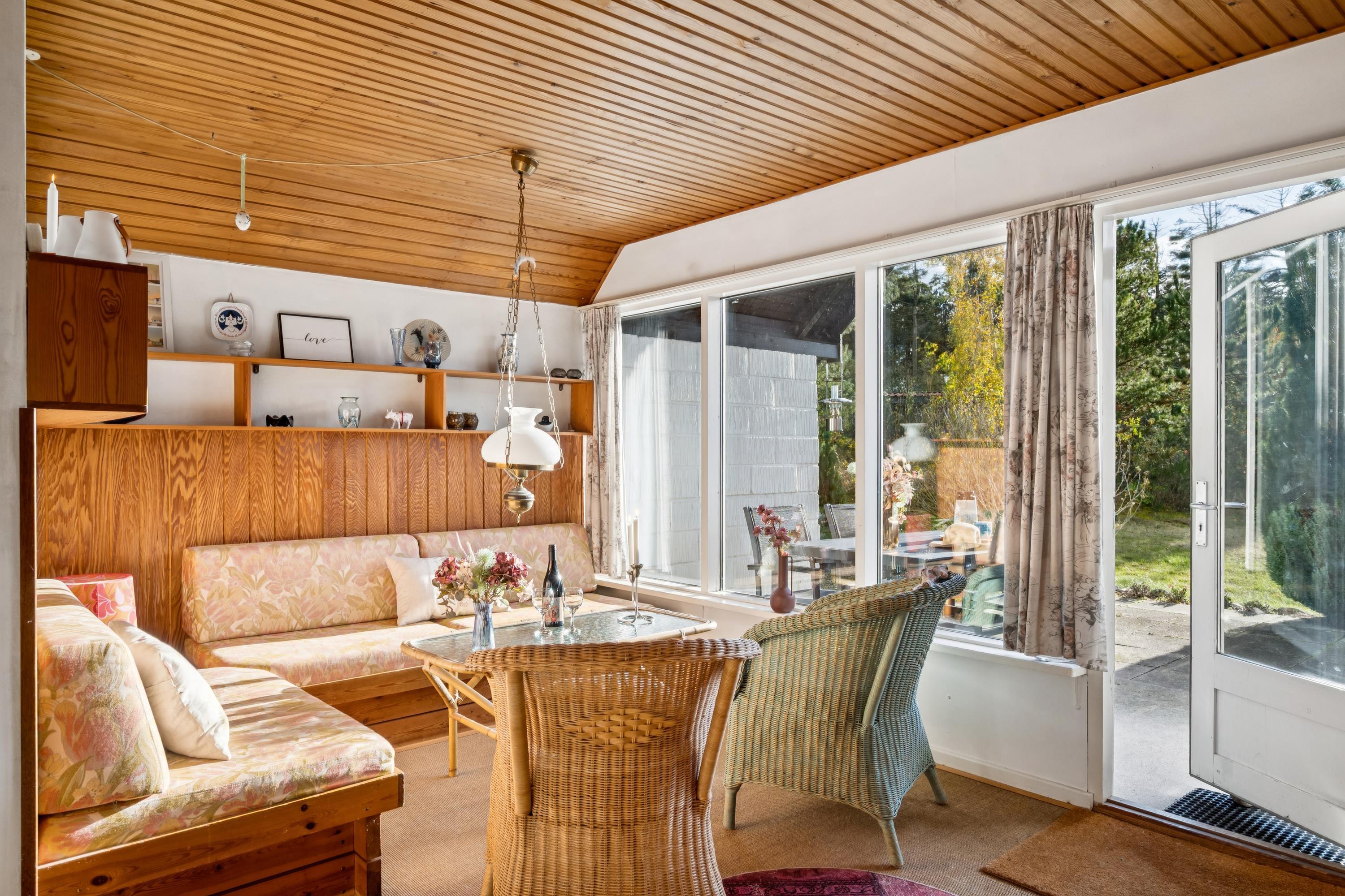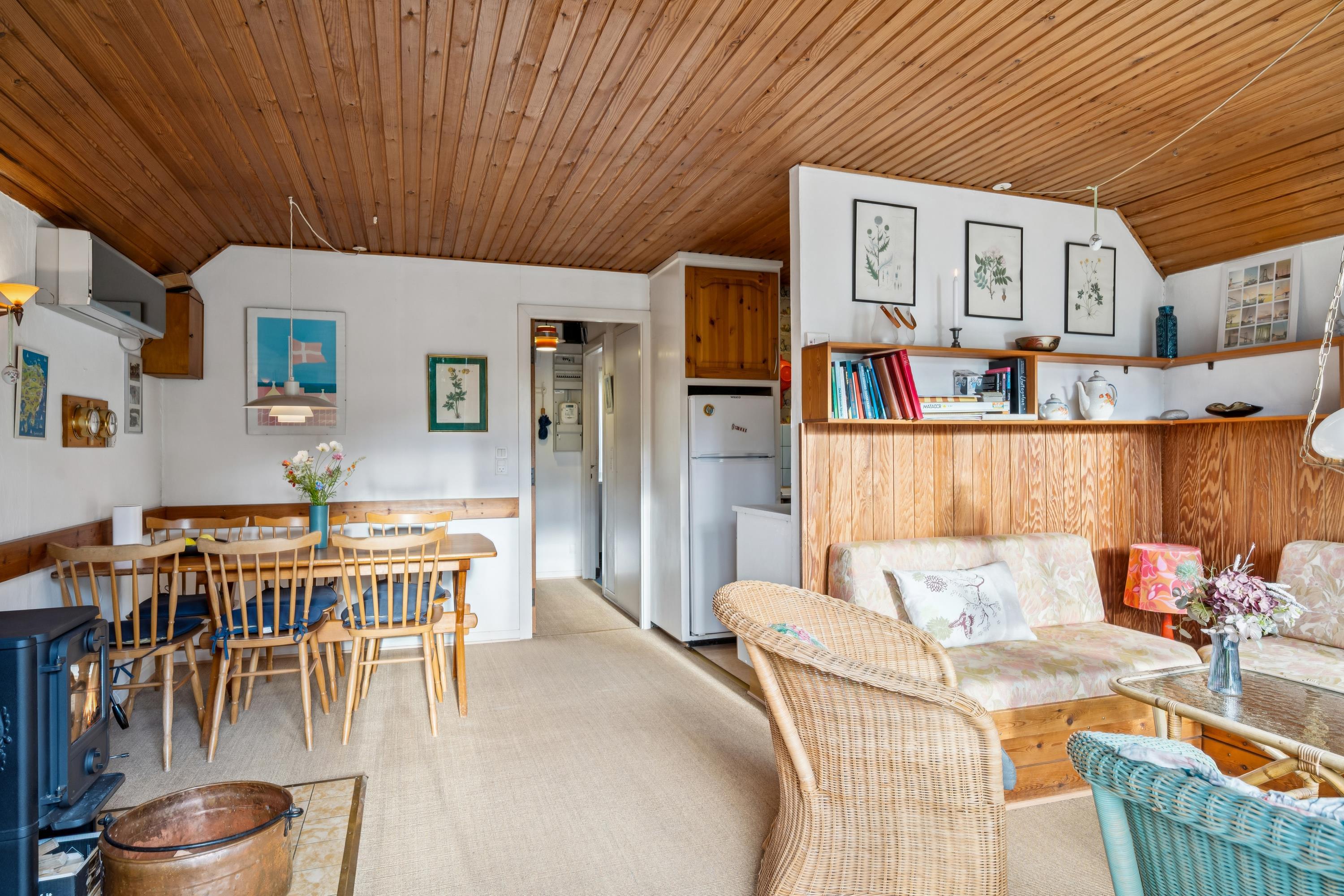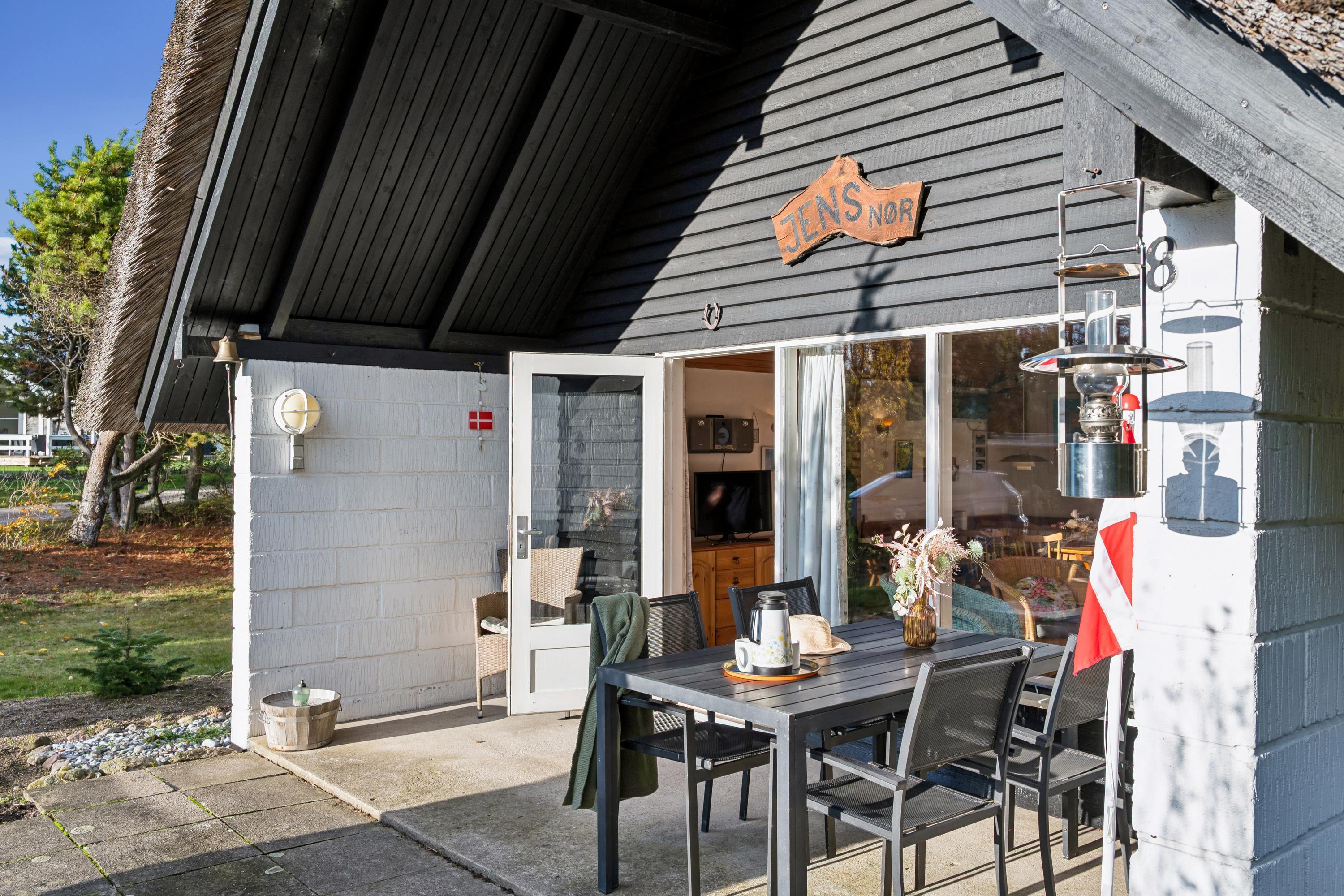 Velkommen til dette lille autentiske retrohus med stråtag. Her har ejeren valgt at beholde det originale look, de fleste steder, dog med nogle nutidige tiltag. Her finder man en lille hyggelig stue med brændeovn og varmepumpe som let kan opvarme det hele. I forbindelse med stuen ligger det lille køkken med original køkkentapet og hvor opvasken foregår med håndkraft. Soveværelse med en god dobbeltseng samt et nyere badeværelse med bruseniche, gulvvarme og vaskemaskine samt et babybadekar og puslepude. Husets sidste to sovepladser finder man i et nyere anneks med to enkeltsenge og som opvarmes med en el radiator. Til de små feriegæster er der høj barnestol og barneseng. Udendørs er der en hyggelig terrasse med havemøbler og til de små feriegæster er der en sandkasse. Der er en stor græsplæne, velegnet til leg og udendørs hygge. Hvis der skal grilles, henstilles der til, at det bliver på græsplænen og ikke på terrassen af hensyn til husets stråtag og brandfare.