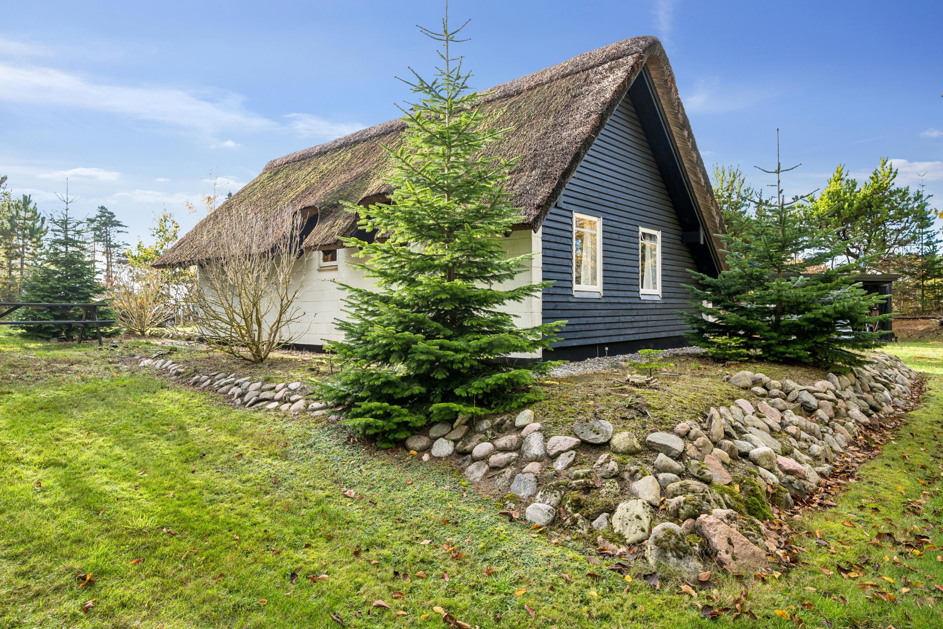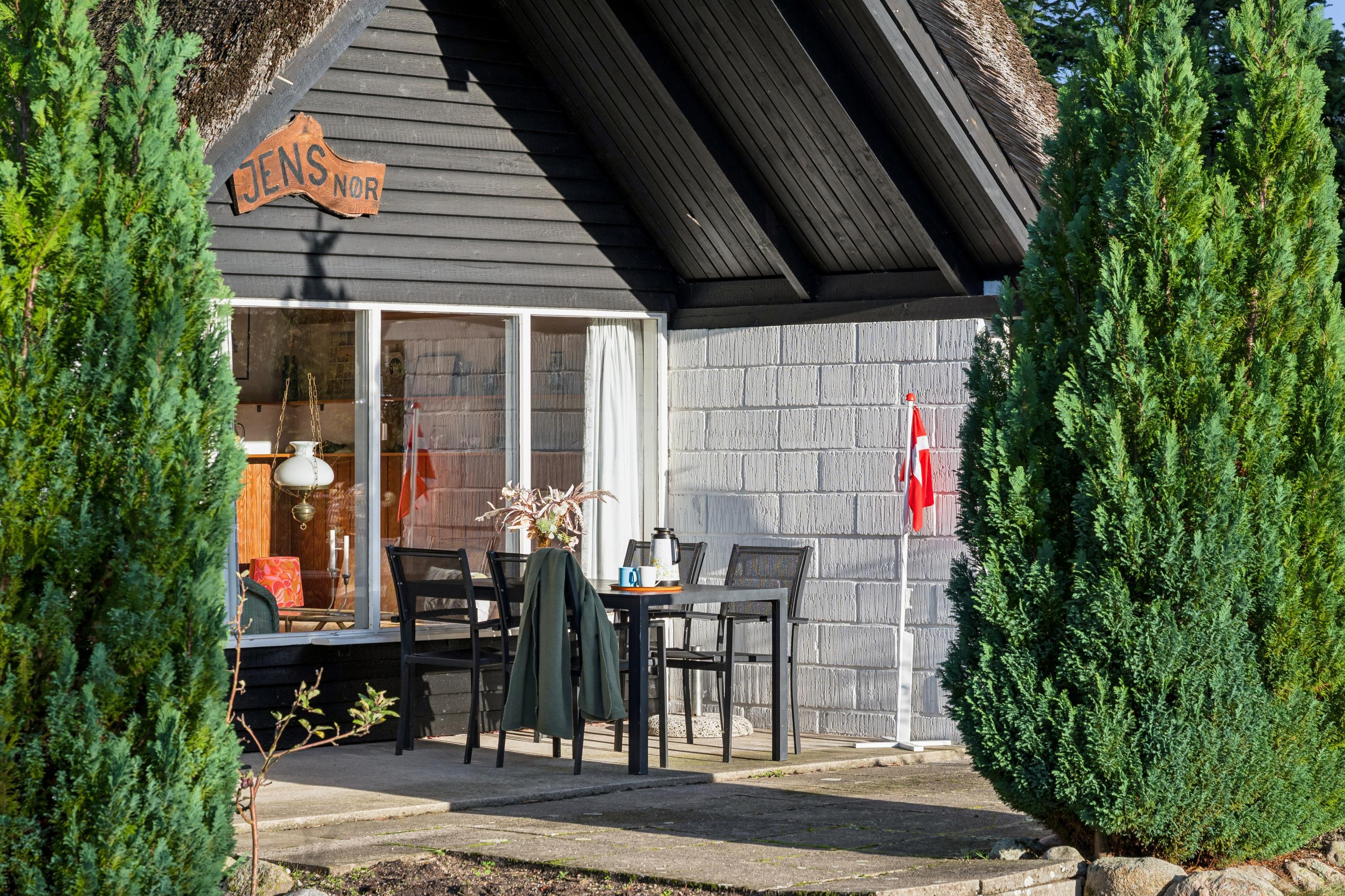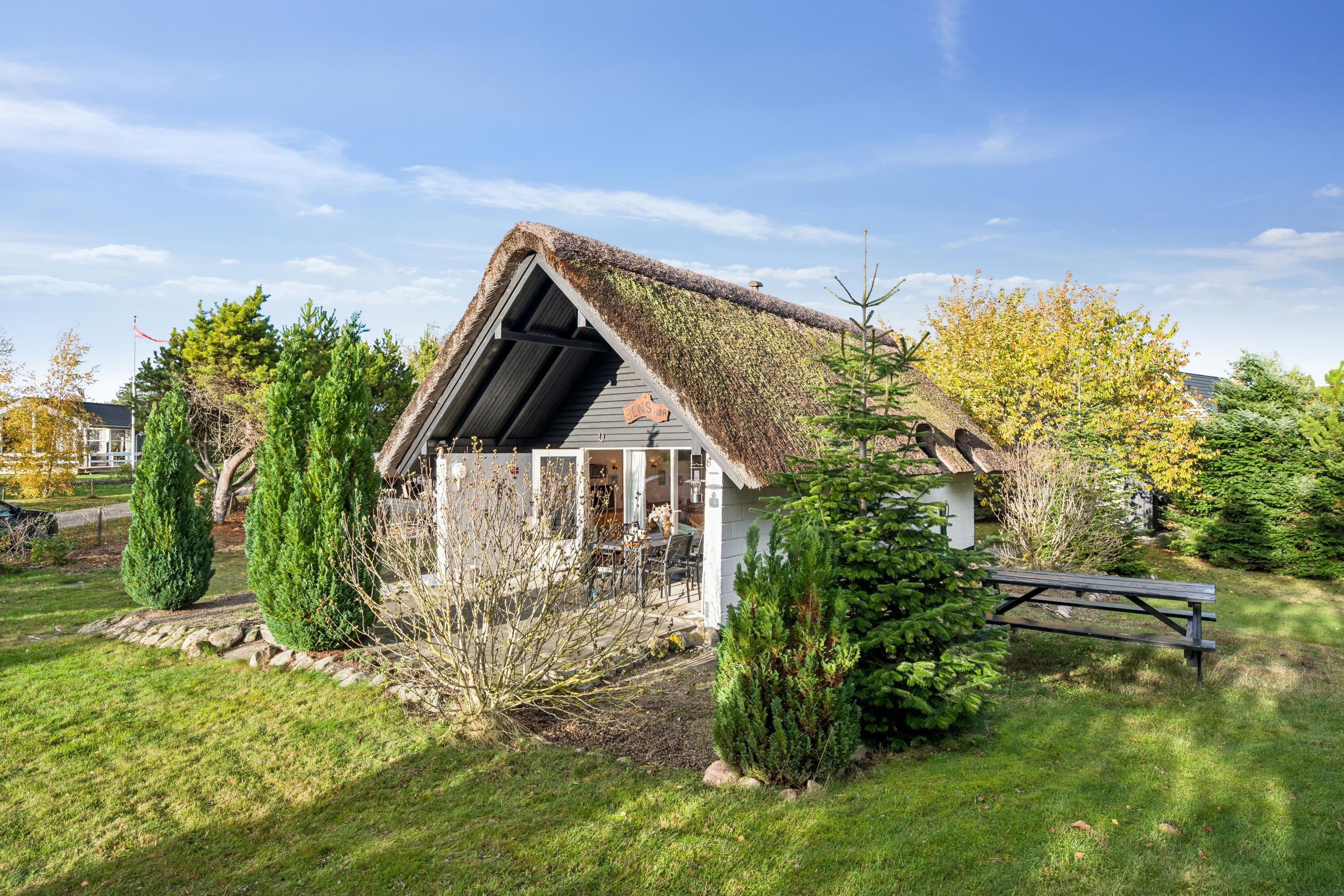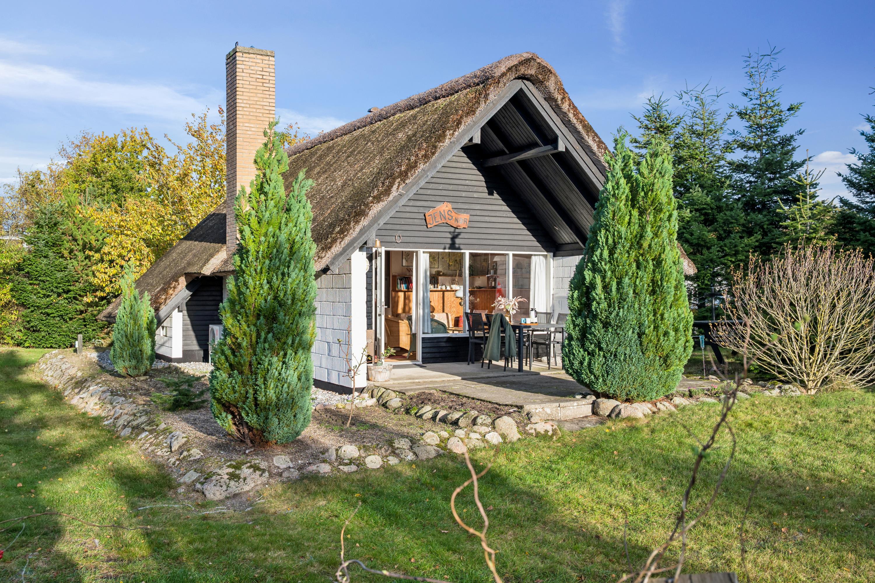 Charmerende retrohus med stråtag og moderne faciliteter nær Øer strand.