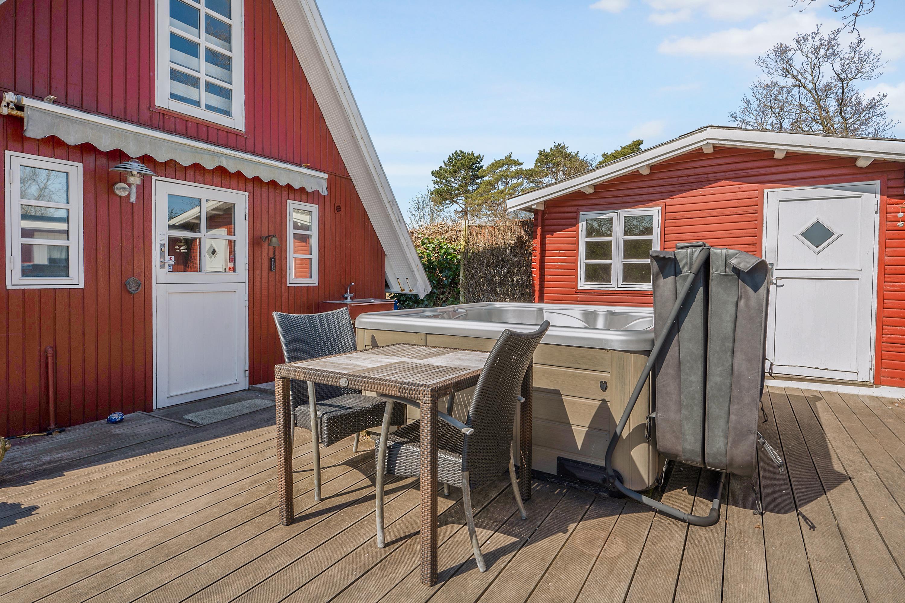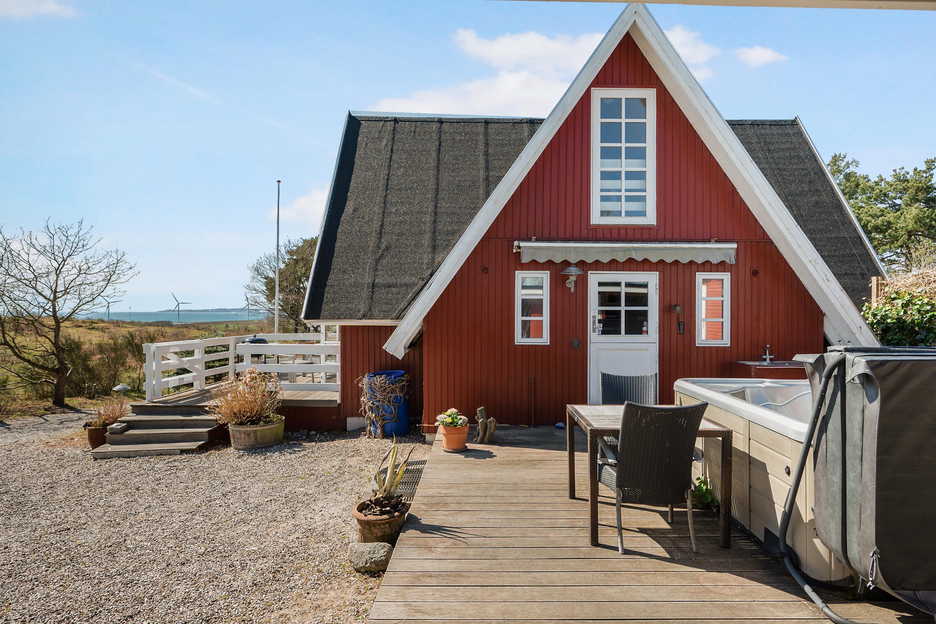 Rummeligt feriehus med spabad og skøn udsigt til Kattegat nær Ebeltoft og børnevenlige strande.
