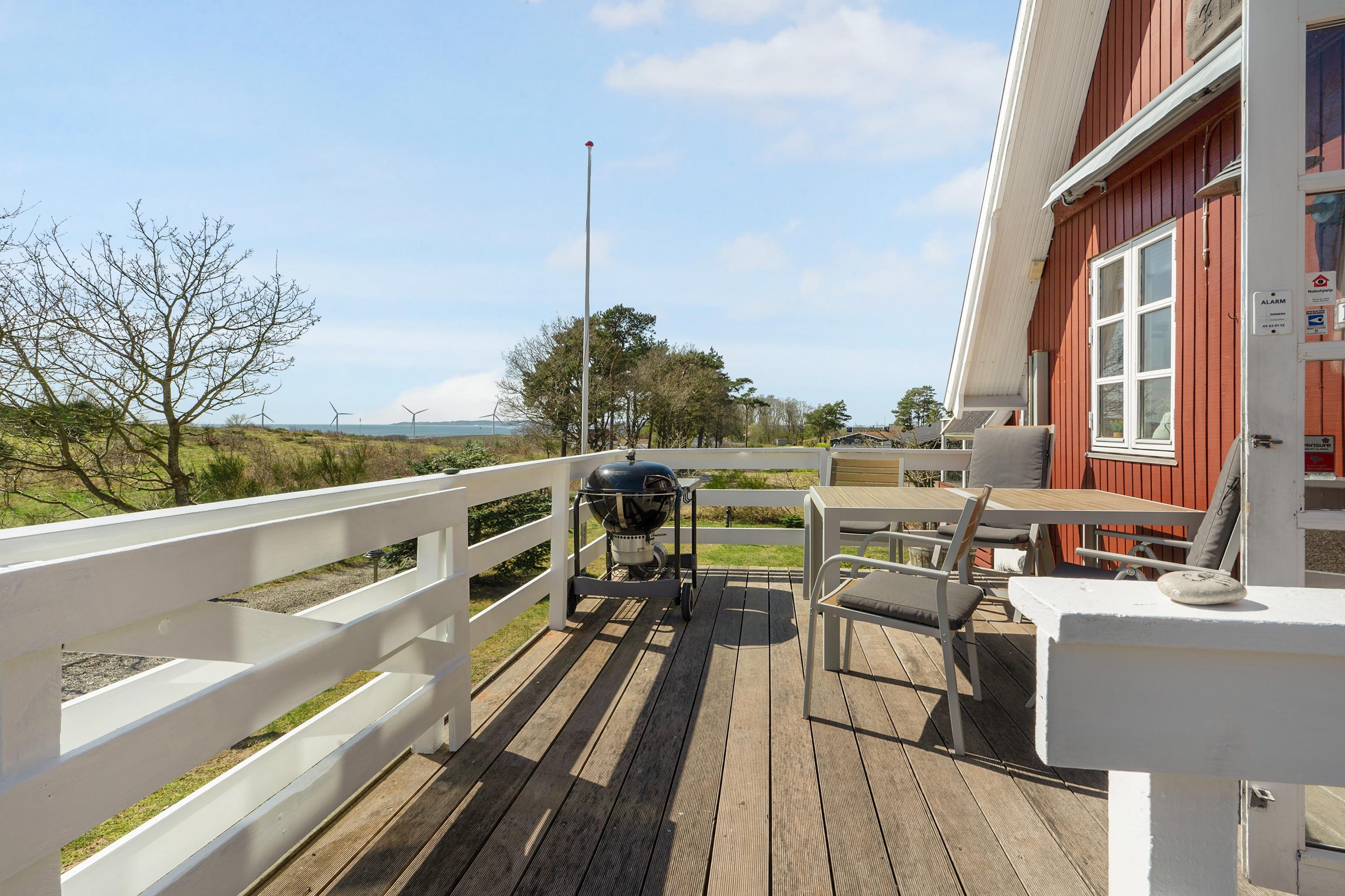 Ældre, velholdt og rummeligt feriehus i 2 plan, højt beliggende på rolig vej tæt på både Ebeltoft og Øer og med dejlig udsigt til Kattegat. To skønne, afskærmede træterrasser mod syd og vest samt stor, central og indhegnet træterrasse med spabad. Der er havemøbler, liggestole, grill og parasol samt dejligt udekøkken. Huset har carport.