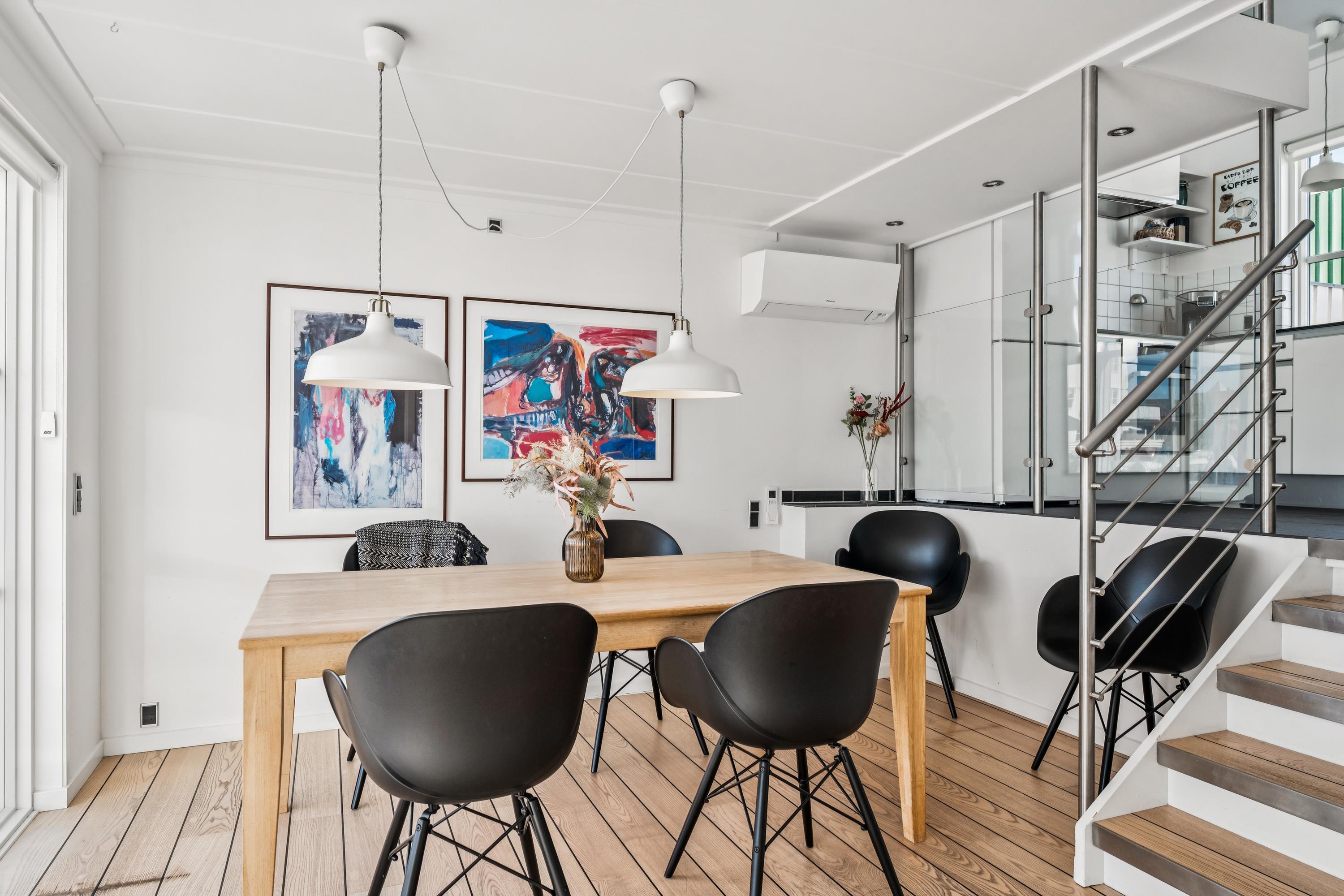 I Øer Maritime Ferieby finder man dette flotte og velindrettede hus. I stueplan finder man det skønne køkken med b.la. opvaskemaskine og flot badeværelse. Nedgang til forsænket spisestue, og hvorfra der er udgang til en skøn terrasse med havemøbler. I underetagen finder man også det ene af husets soveværelser med dobbeltseng. Opgang til første sal, hvor man finder en dejlig stue, hyggelig møbleret og hvorfra der er udgang til endnu en lille terrasse. Her finder man også huset andet soveværelse med dobbeltseng samt indbygget alkove. Ved indgangen til huset er der endnu en terrasse med havemøbler, så man har altid mulighed for at nyde både solopgang og solnedgang. Et virkelig flot og gennemført hus.