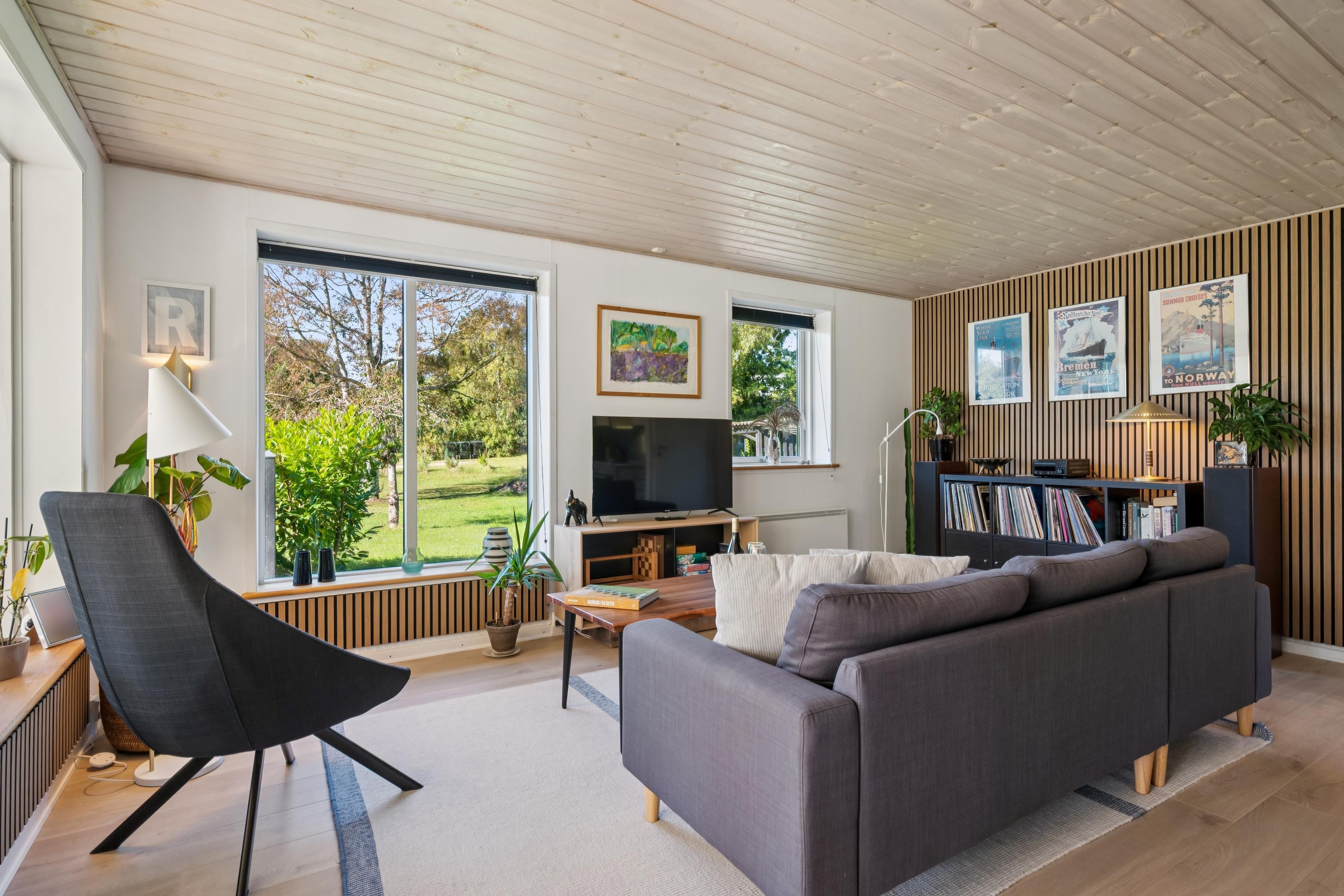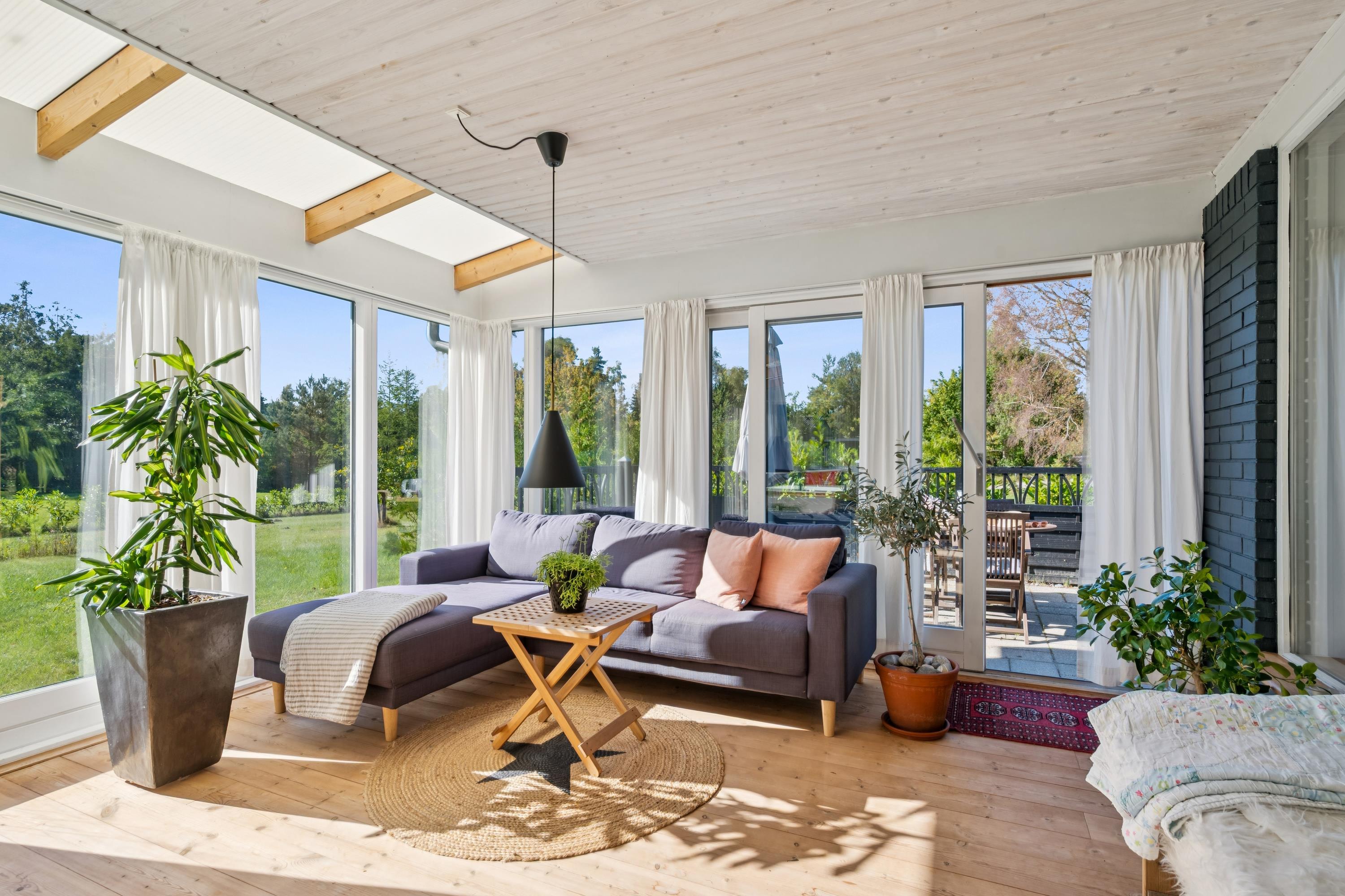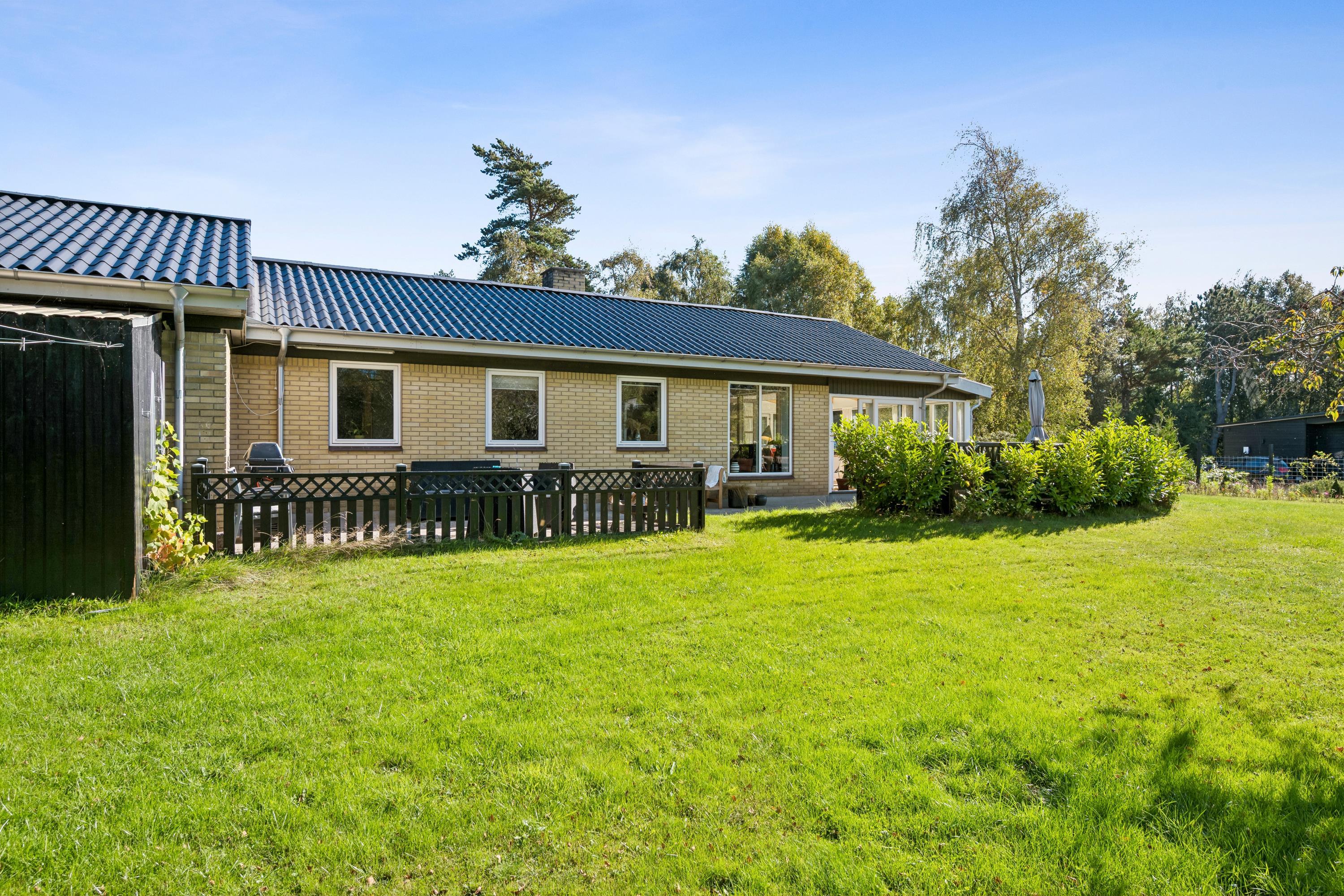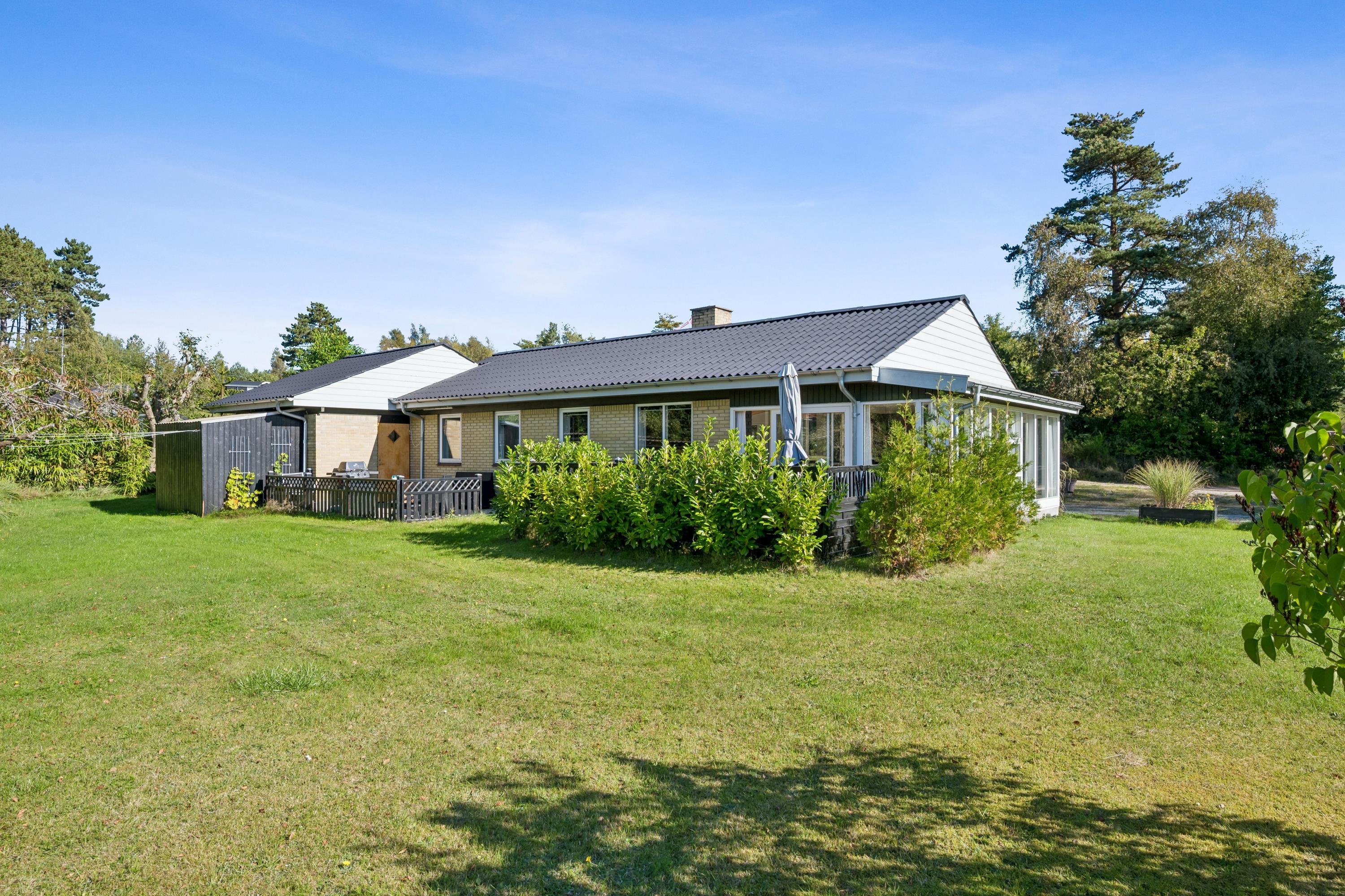 Hyggeligt feriehus nær Ebeltoft med brændeovn, udestue og stor have, perfekt til afslapning og naturoplevelser.