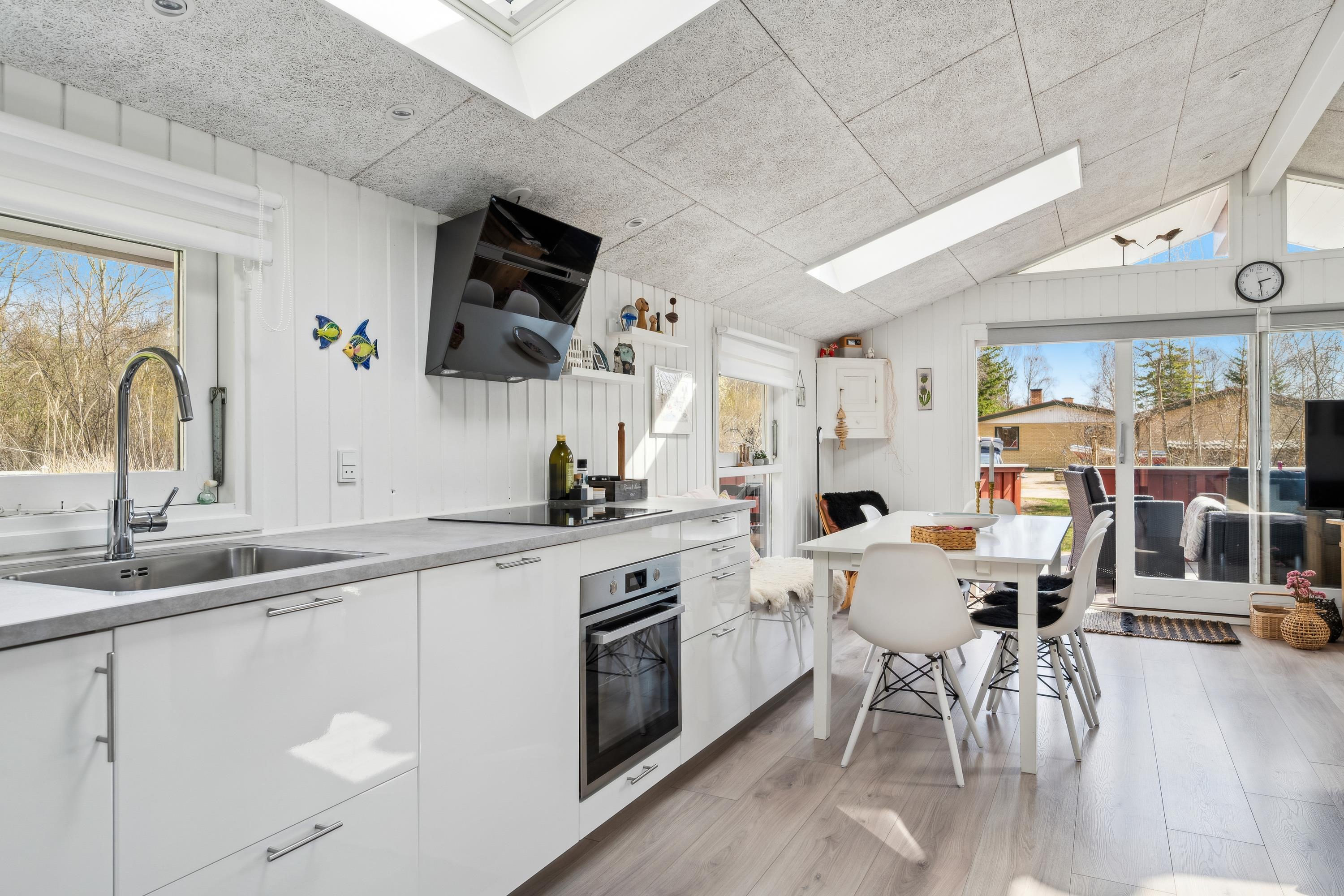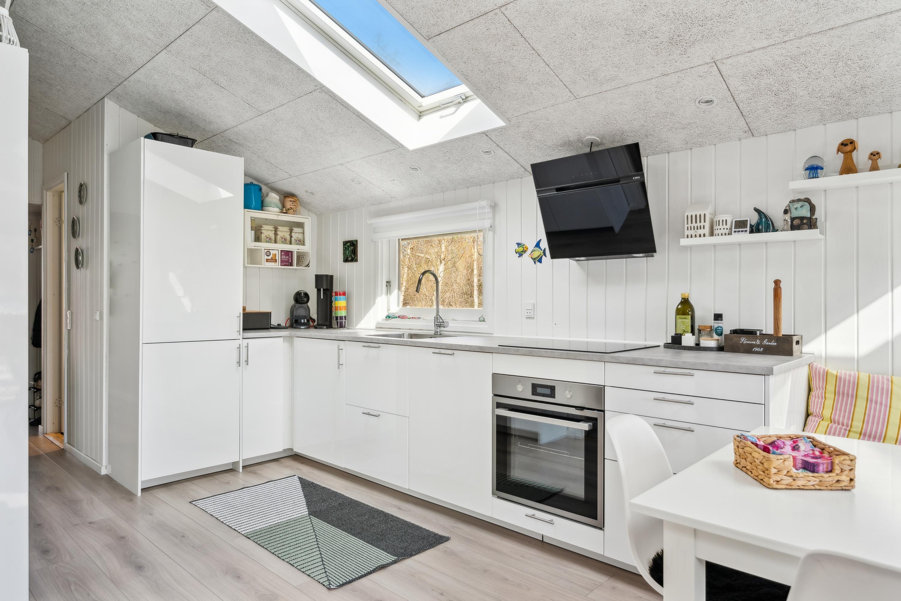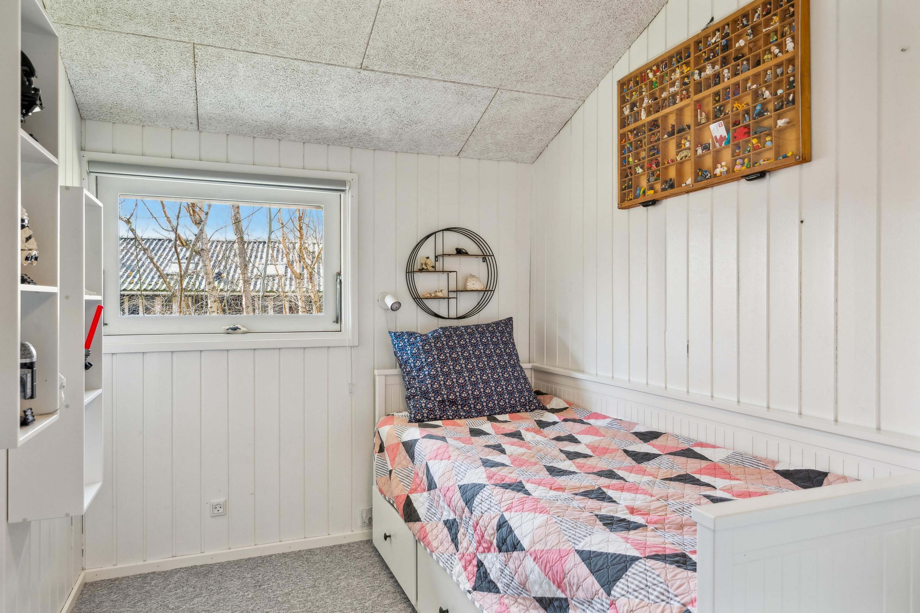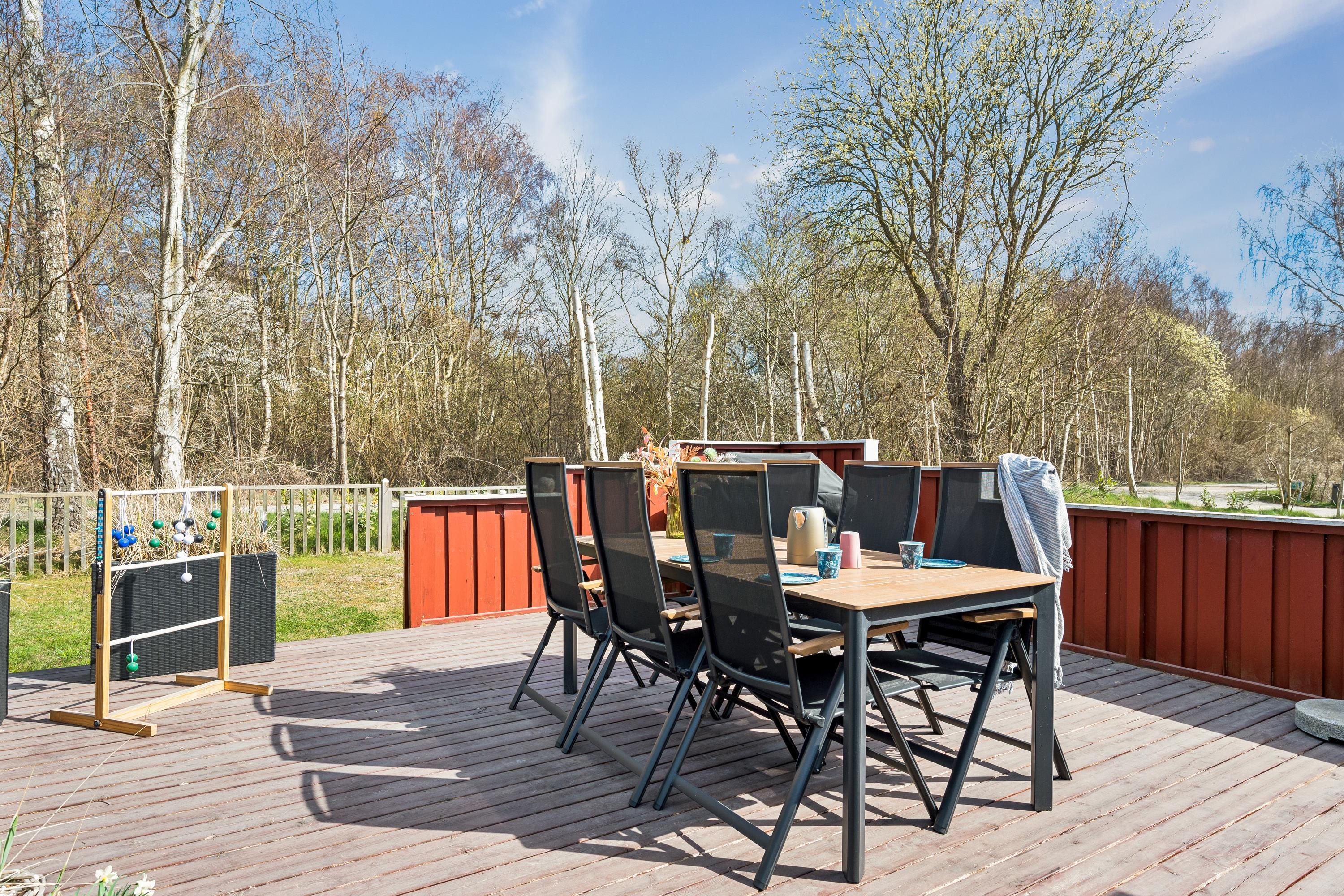 Allerede når man åbner døren og træder ind i entreen, fornemmer man den ægte sommerhusstemning, der er i dette hus. Her finder man en velindrettet og rigtig hyggelig stue med gode møbler og med varmepumpe og brændeovn. Fra stuen er der udgang til en dejlig overdækket terrasse med loungemøbler samt til en stor åben terrasse – også med havemøbler og grill. I forbindelse med stuen finder man den hyggelige køkkenafdeling med b.la. opvaskemaskine og god spiseplads. Husets sovepladser finder man i tre hyggelige værelser, heraf et værelse med dobbeltseng, et værelse med to enkeltsenge og et værelse med en enkelt seng. Flot badeværelse med bruseniche. Huset er beliggende på en rigtig skøn grund med stor græsplæne, velegnet til leg og boldspil. Der er masser af udendørs spil til fri afbenyttelse b.la. kongespil, ærtepose spil m.m. samt gynger, rutschebane og fodboldmål. Et virkelig hyggeligt hus til den lille børnefamilie. Huset ligger i gå-afstand til stranden.