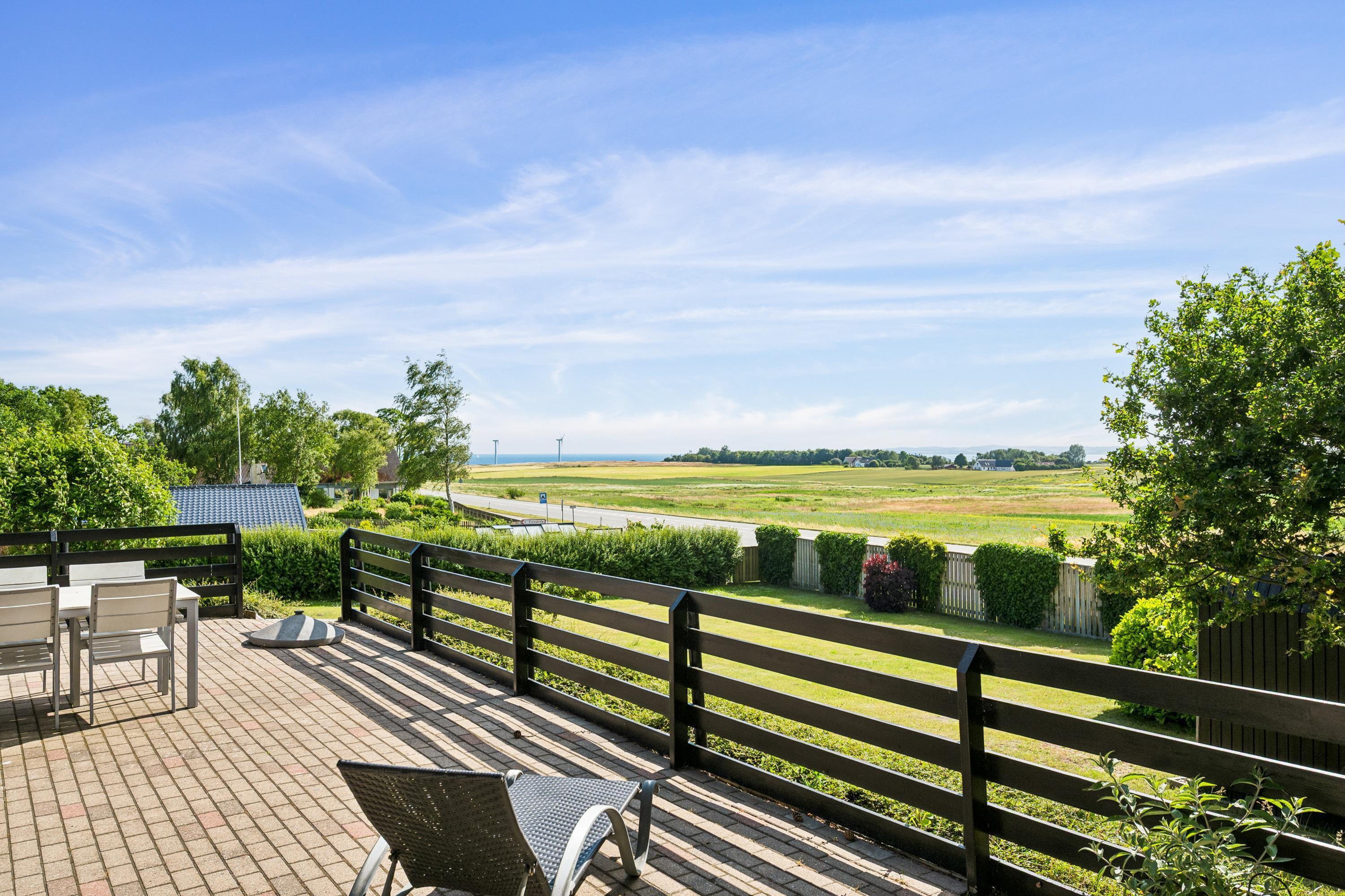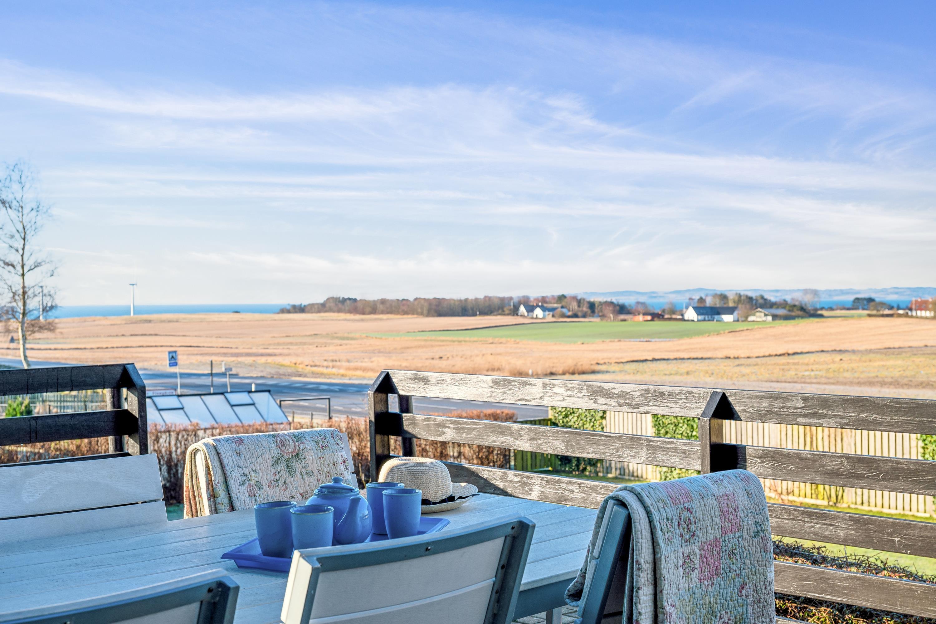 Hyggeligt sommerhus med panoramavinduer, brændeovn og udsigt over Kattegat tæt på Øer Strand.