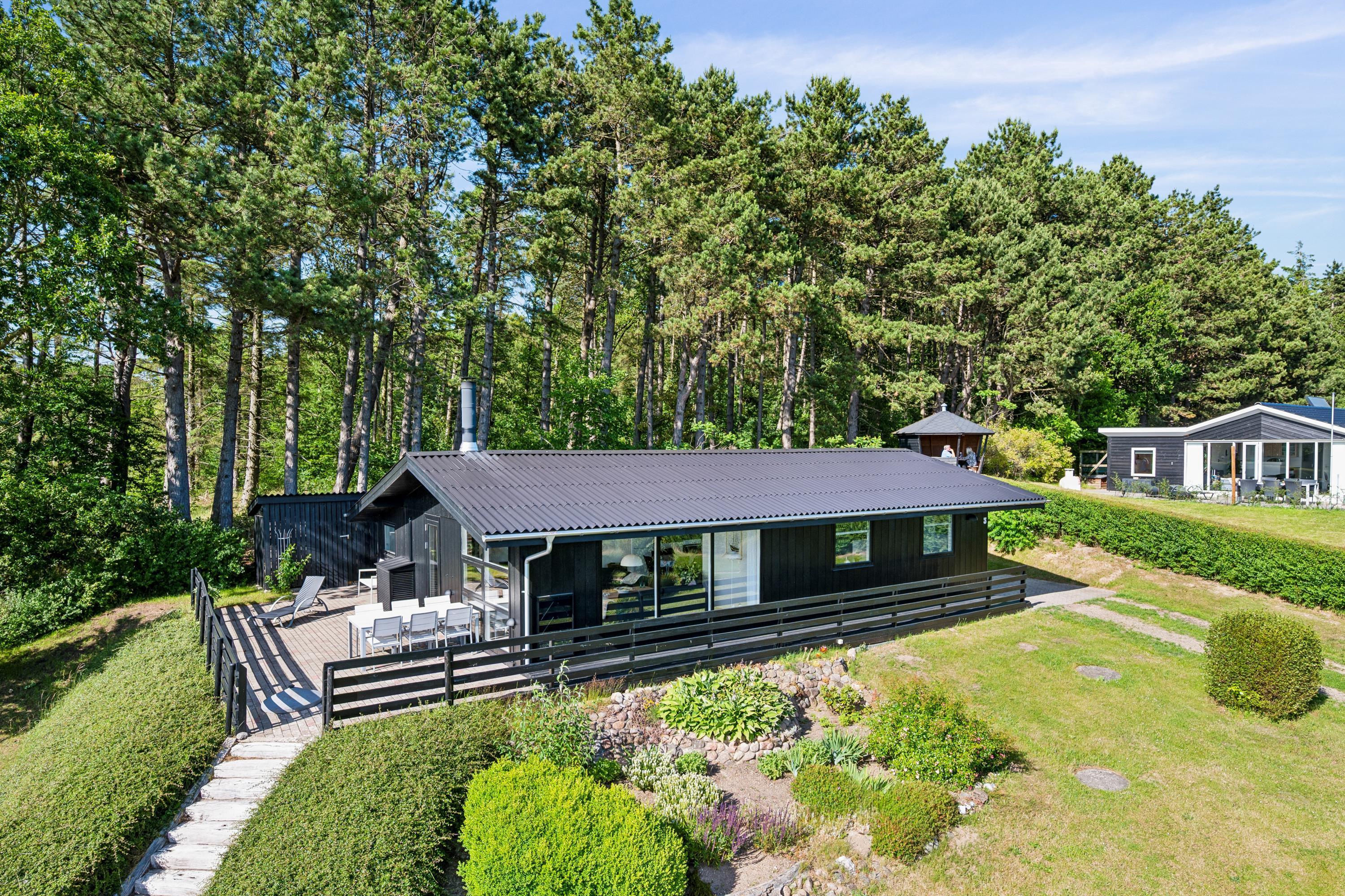 Ældre, gennemmoderniseret sommerhus beliggende på skrånende naturgrund lige op til Sønder Plantage og med dejlig udsigt over Kattegat og landskabet ved Øer. Huset har to store, syd- og østvendte fliseterrasser med havemøbler, liggestole, parasol og grill. På den store naturgrund er der desuden bålplads. Et både velindrettet og meget hyggeligt hus. Bemærk, at Færgevejen løber 100 meter fra huset.