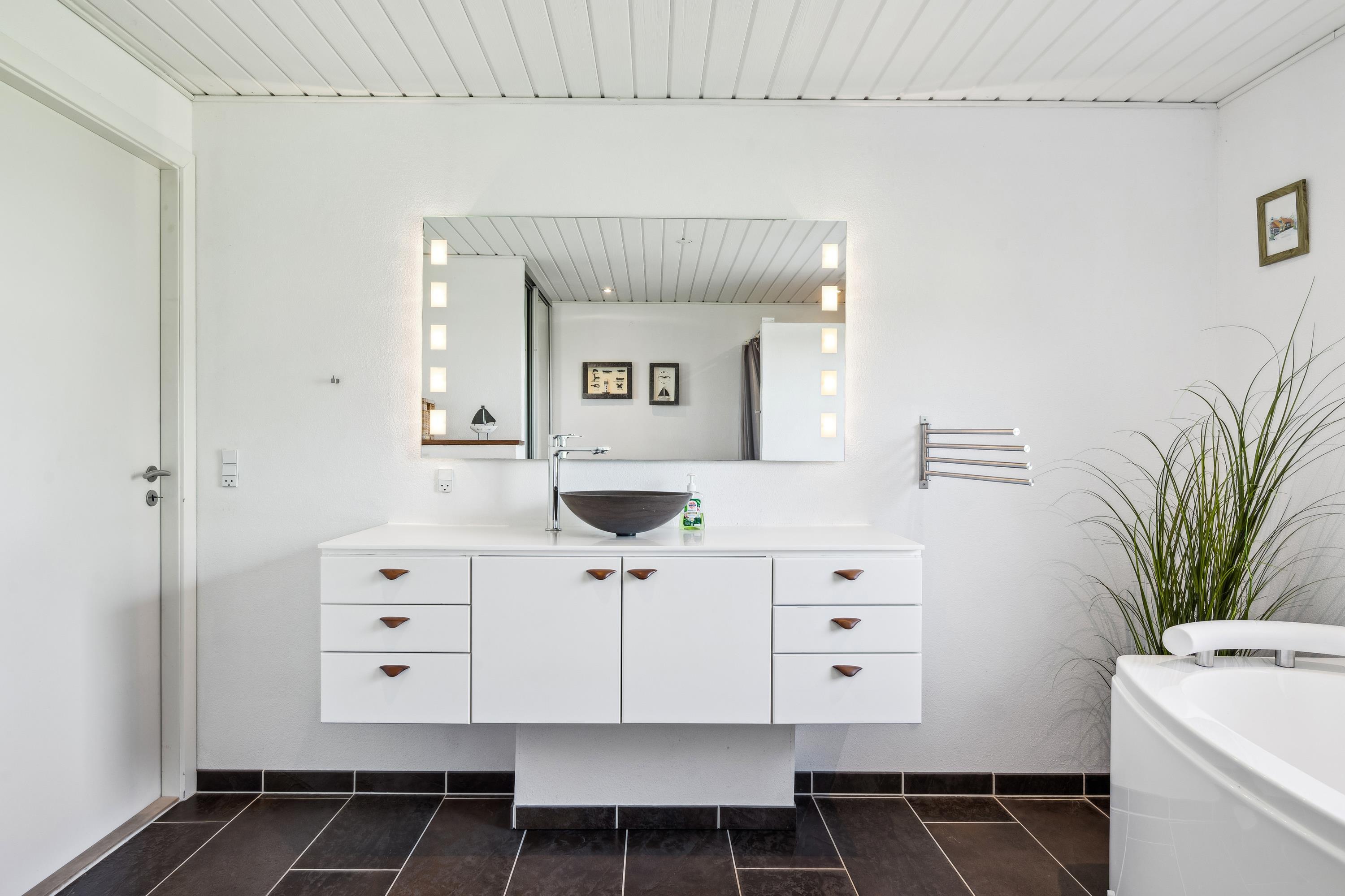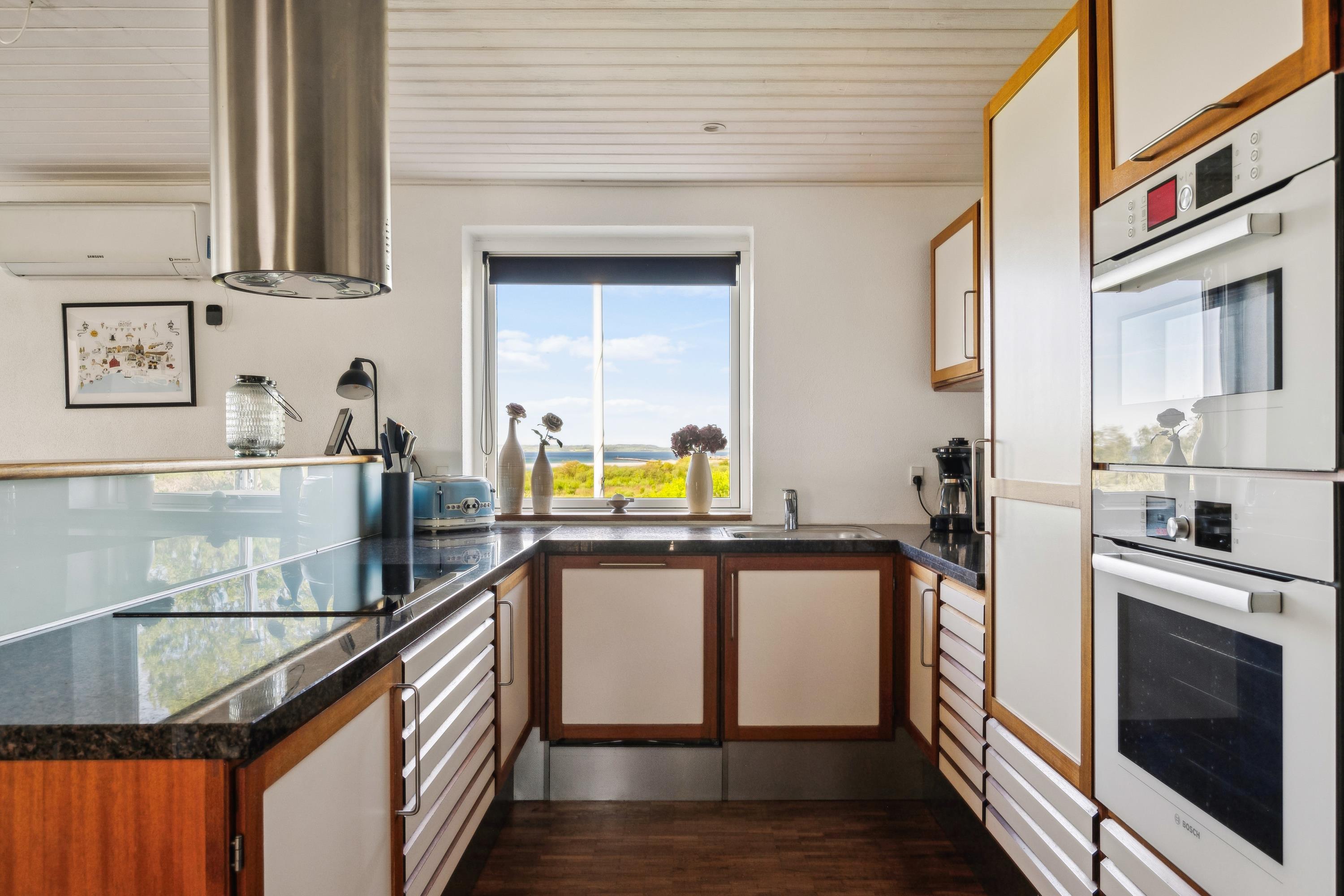 Dette store og fuldstændig nyrenoverede feriehus ligger højt med skøn udsigt over landskabet ved Øer og Øer Maritime Ferieby. Et virkelig gennemført og indbydende hus med usædvanlig gode faciliteter. Stor, sydvestvendt træterrasse omkring huset med havemøbler, grill og parasol og mulighed for at nyde solen hele dagen. Desuden dejlig, møbleret stenterrasse/solkrog i haven.