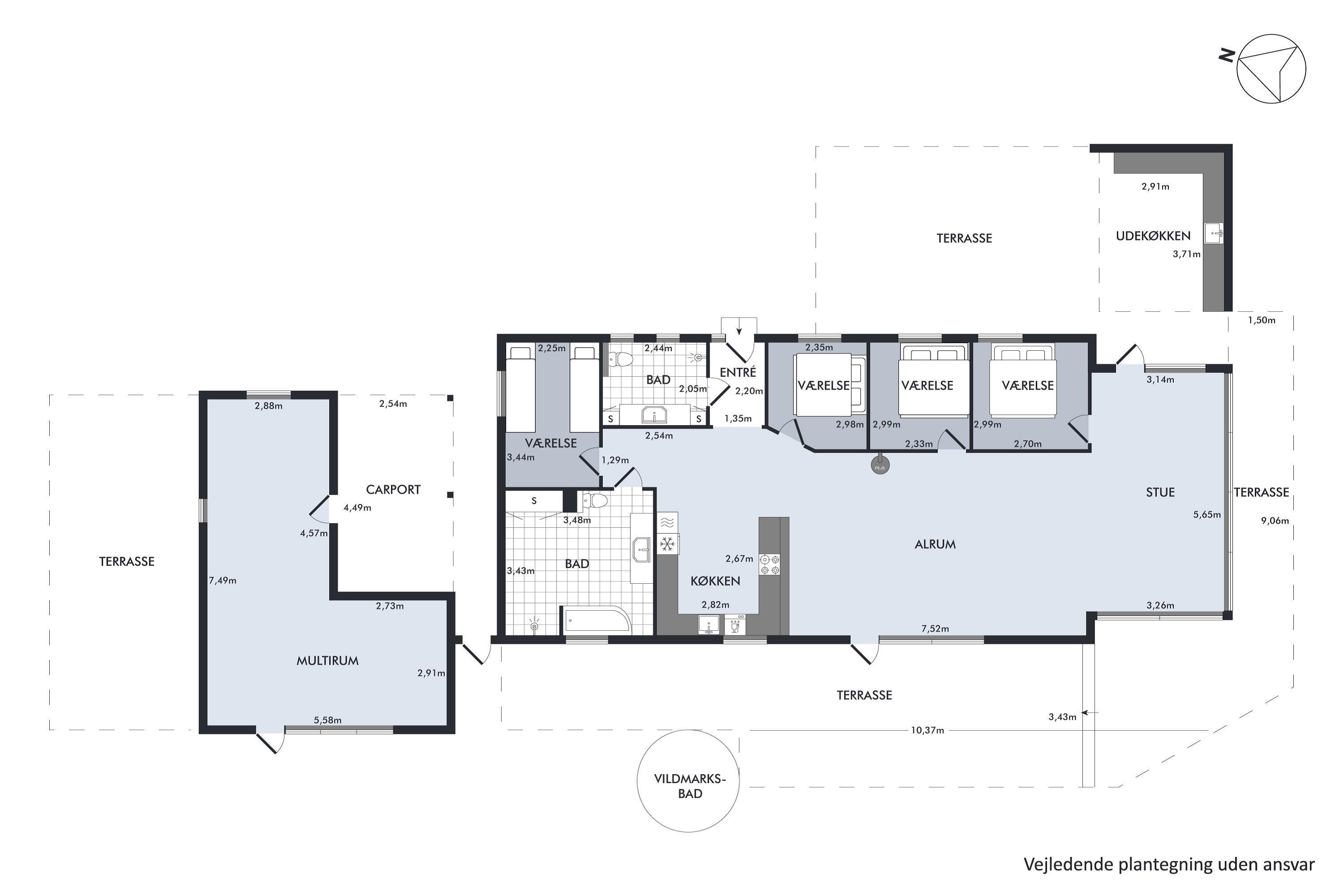 Stor, lys og yderst velmøbleret opholdsstue med brændeovn, to udgange til terrassen samt dejlig spiseafdeling til 10 personer. Parabol-TV med danske (inkl. TV2) og tyske kanaler. I åben forbindelse med stue finder man det flotte og velindrettede køkken med keramiske kogeplader, indbygningsovn, køle-/fryseskab, opvaskemaskine samt mikroovn. Husets sovepladser fordeler sig på 4 gode soveværelser: 3 med dobbeltsenge og 1 med 2 enkeltsenge. Stort, lækkert badeværelse med 2-personers spa og bruseniche. Desuden mindre badeværelse med vaskemaskine og tørretumbler. I 2018 er der tilbygget ca. 30 kvm. aktivitetsrum med opholdsafdeling og TV, billard, dart, bordfodbold samt udendørs bordtennisbord. Trådløst internet og bluetooth højttaler. Carport.