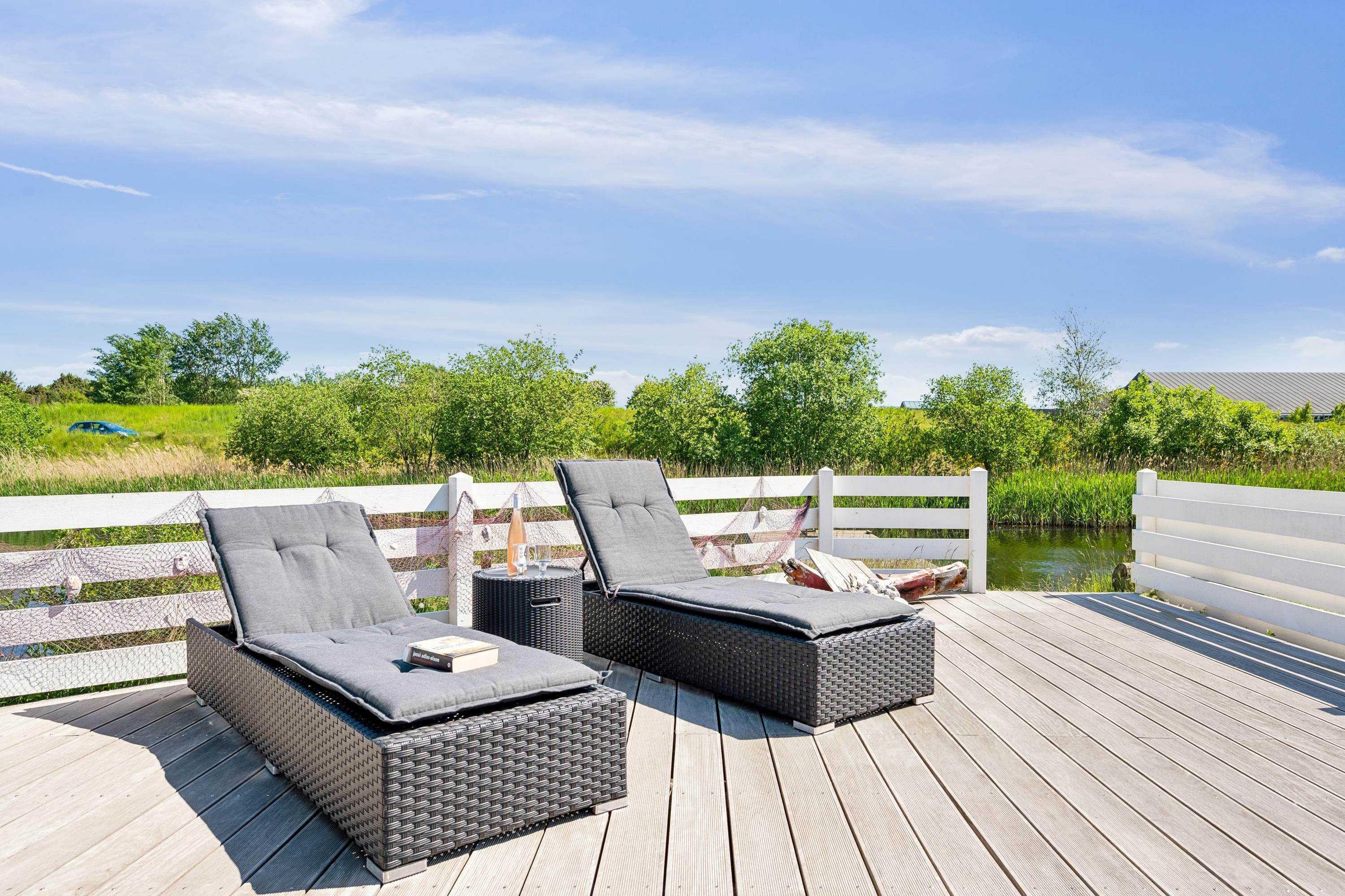 Flot feriehus ved Øer med badebro og terrasse