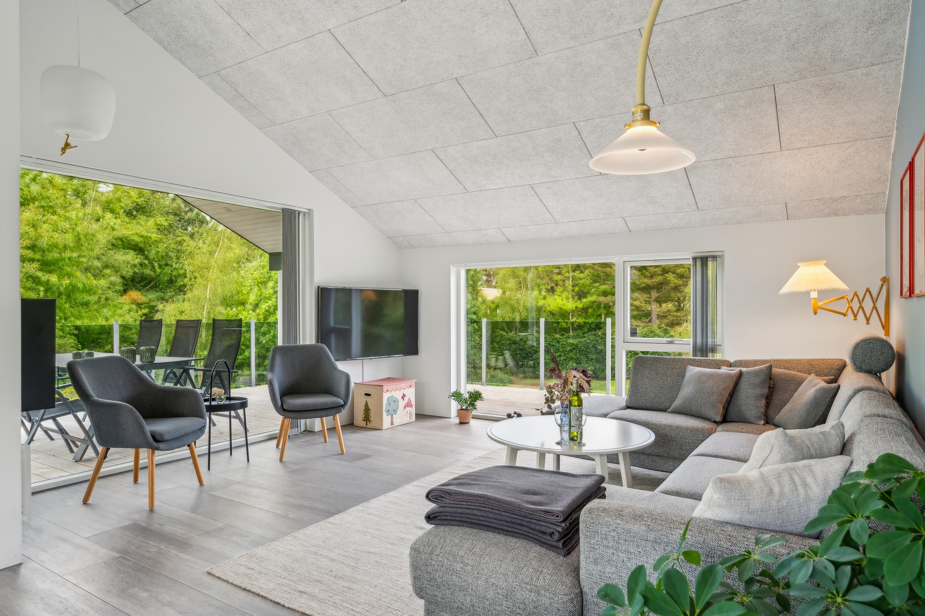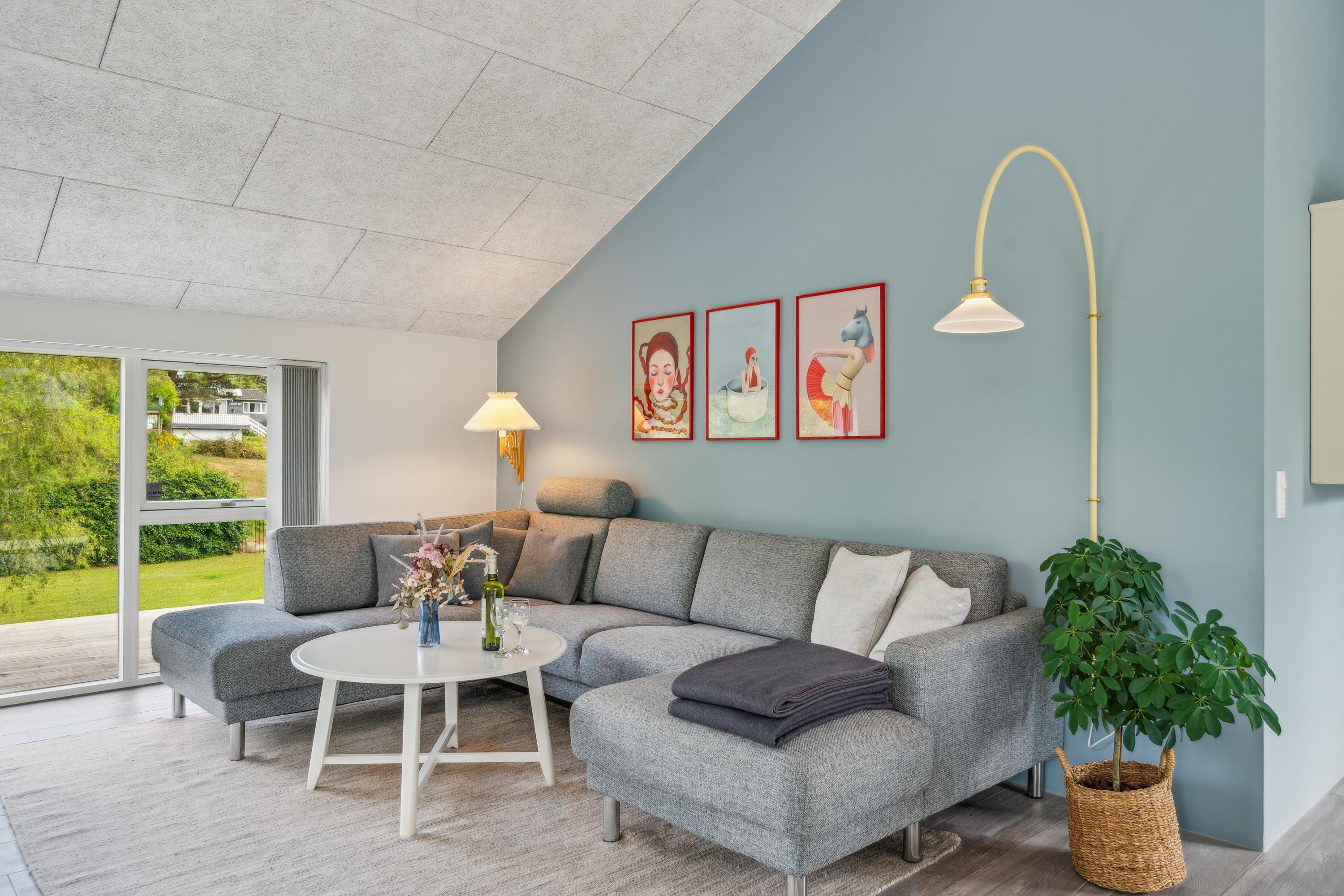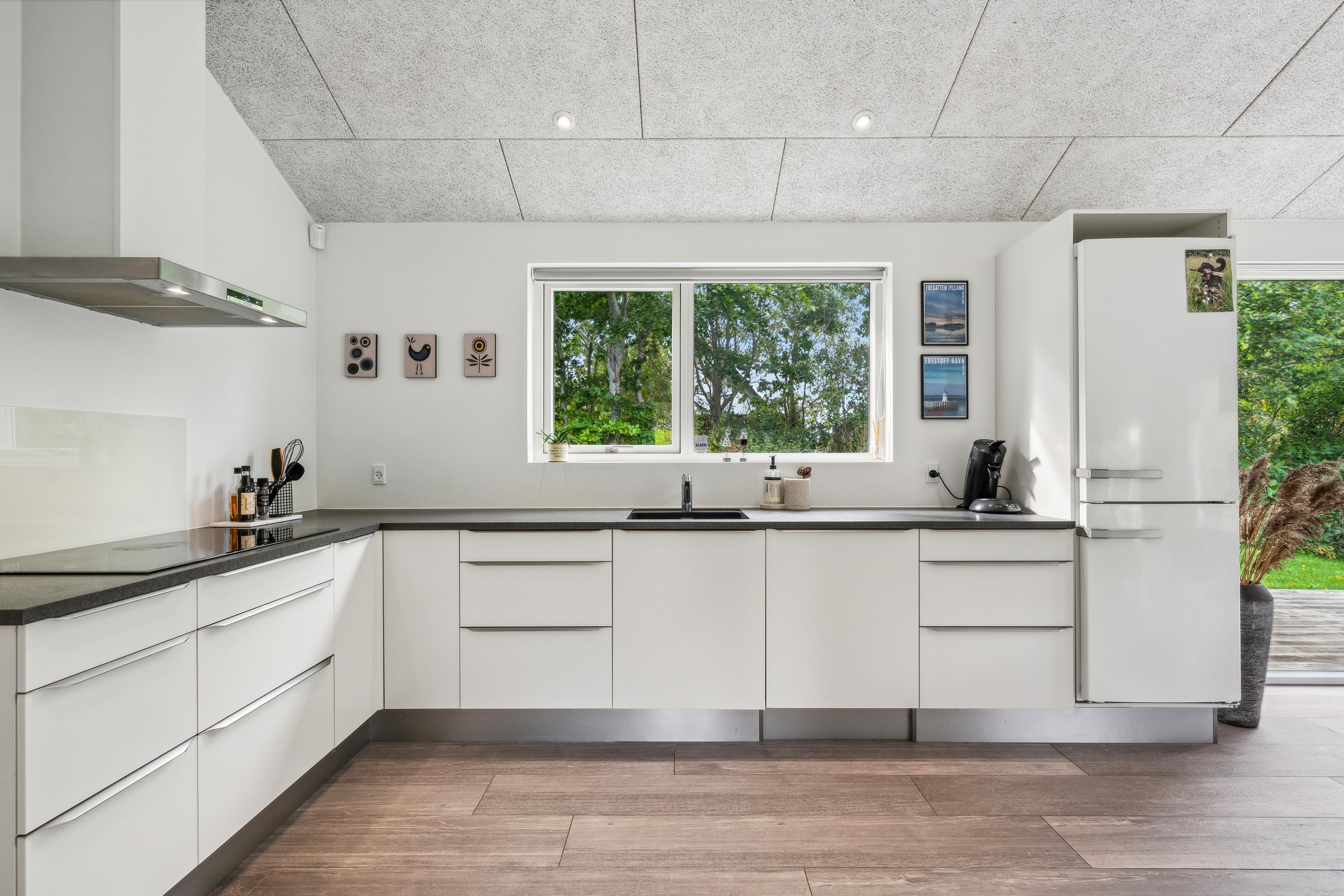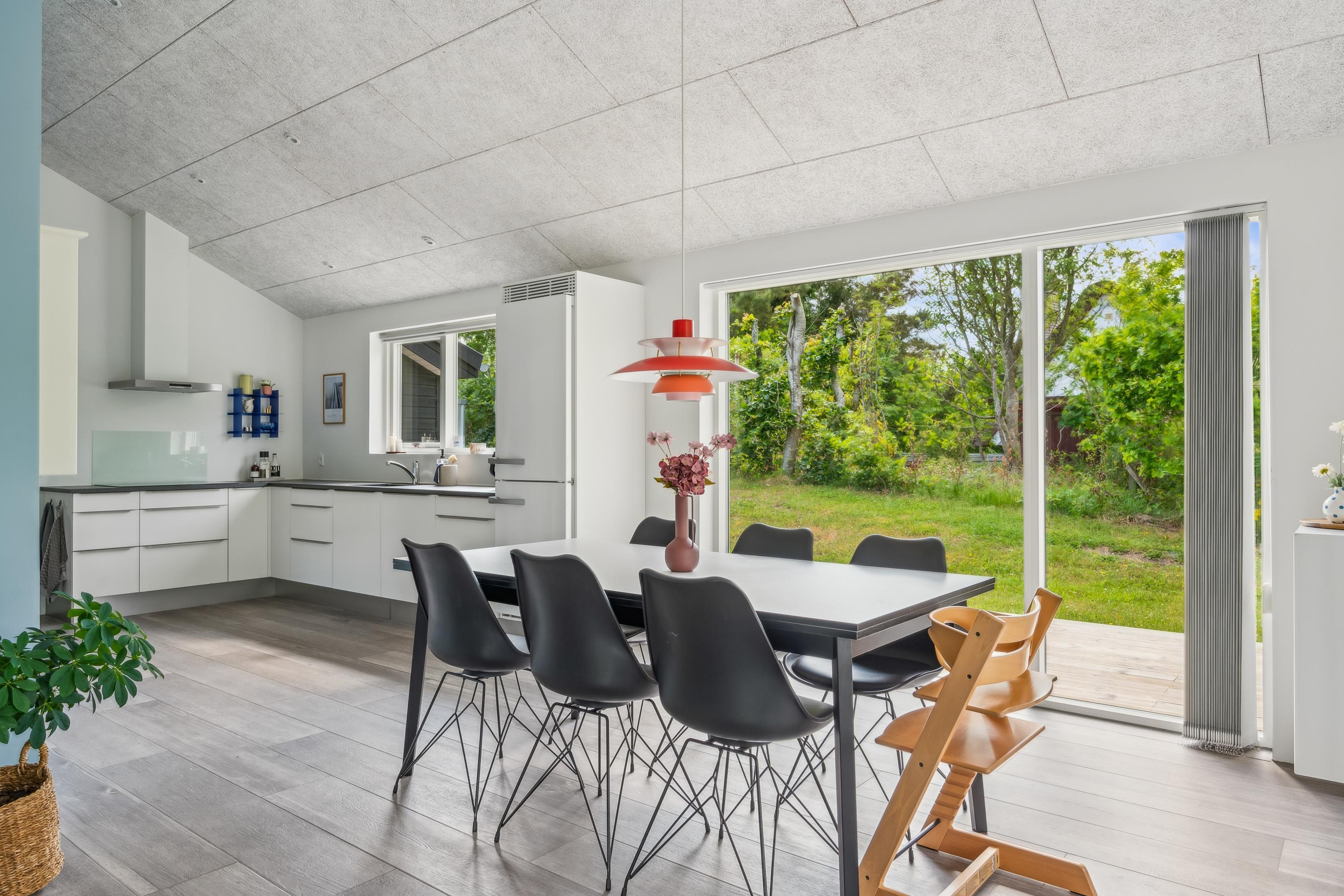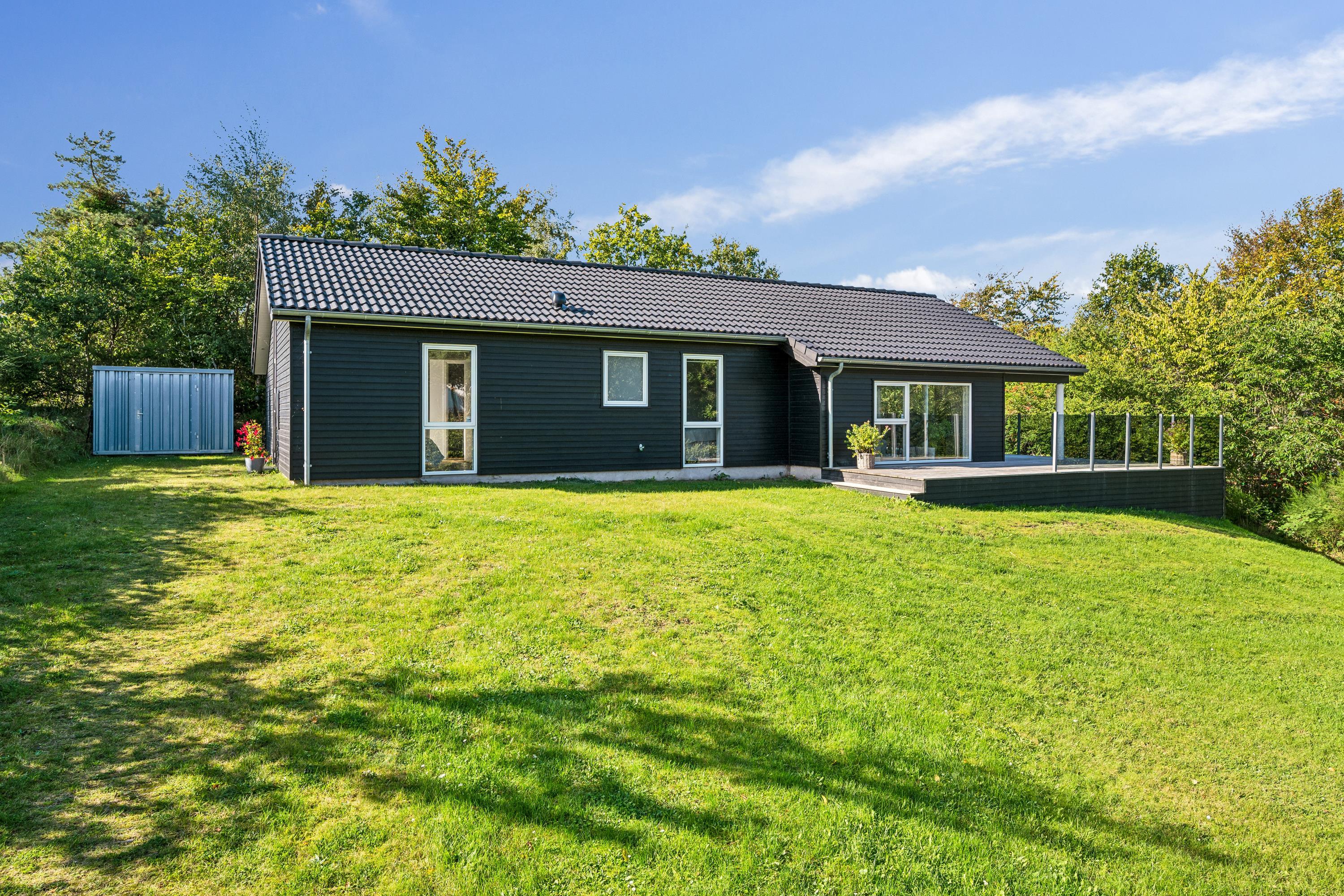 Blot 10 min. kørsel fra Ebeltoft finder man dette flotte og velholdte hus. Her finder man en hyggelig og indbydende stue, møbleret med gode møbler og varmepumpe samt udgang til en skøn terrasse med gode havemøbler. I forbindelse med stuen finder man det flotte køkken med b.la. opvaskemaskine og en god spiseafdeling. To flotte badeværelser med gulvvarme og hvoraf det ene indeholder et badekar. Husets seks sovepladser finder man i tre gode værelser med dobbeltsenge. Til de små feriegæster er der en høj stol og en weekendseng. TV foregår via chromecast og box med tyske kanaler kan lejes på vores kontor (hvis lager haves) Huset er beliggende på en skrående grund med stor græsplæne, velegnet til leg og udendørs hygge. Er man flere familier afsted, så udlejer vi nabohusene Drosselvej 2, Drosselvej 18 og Drosselvej 19