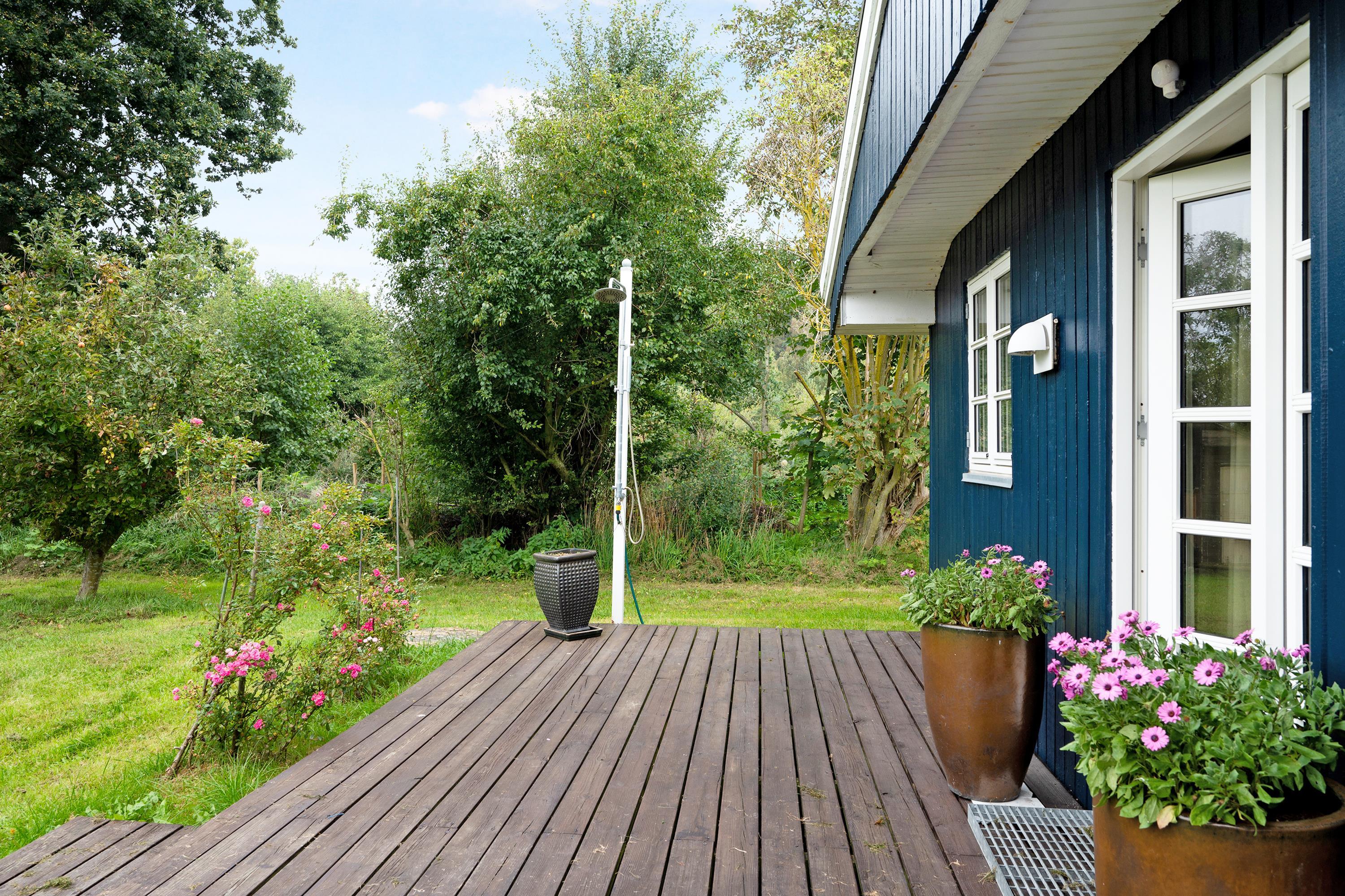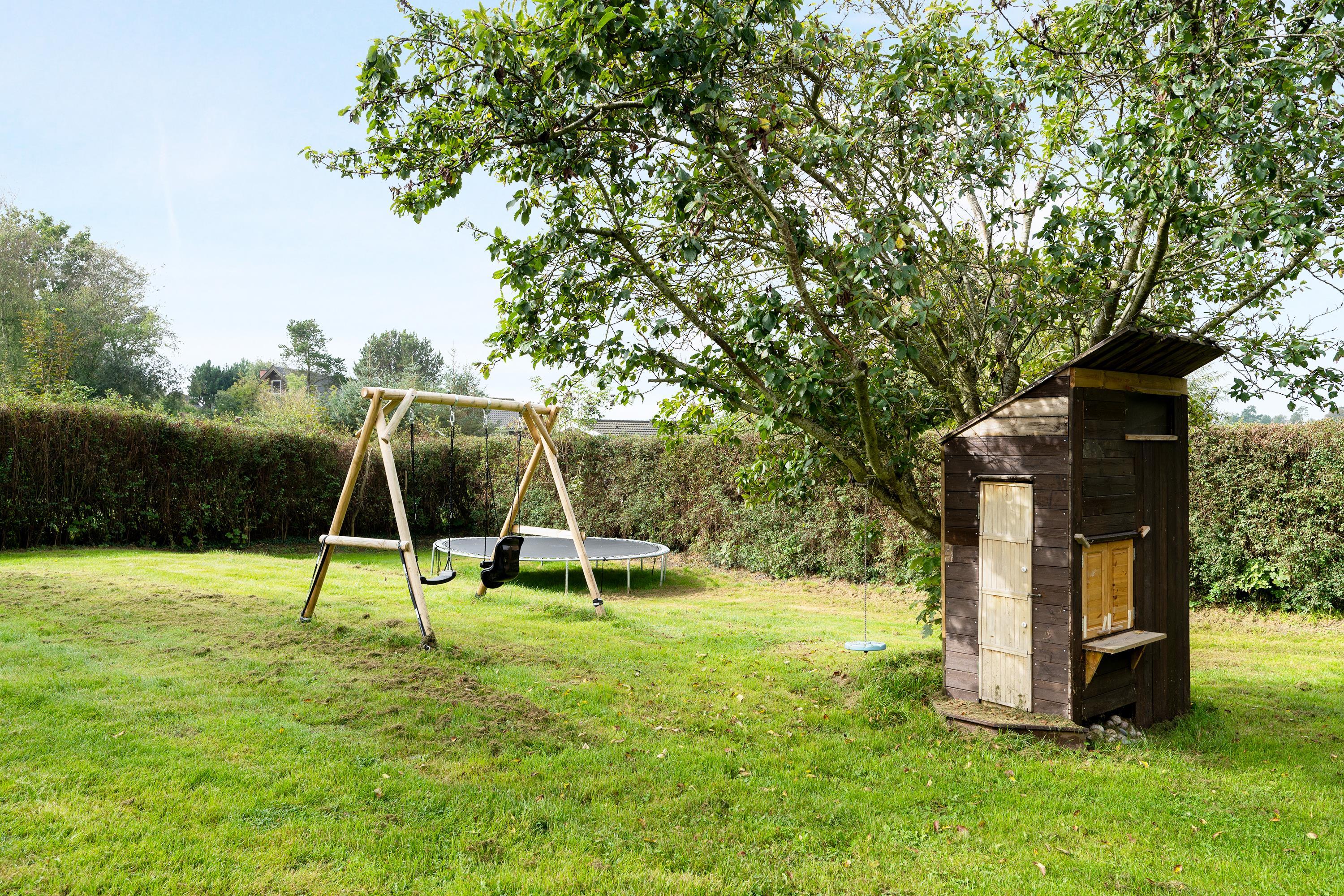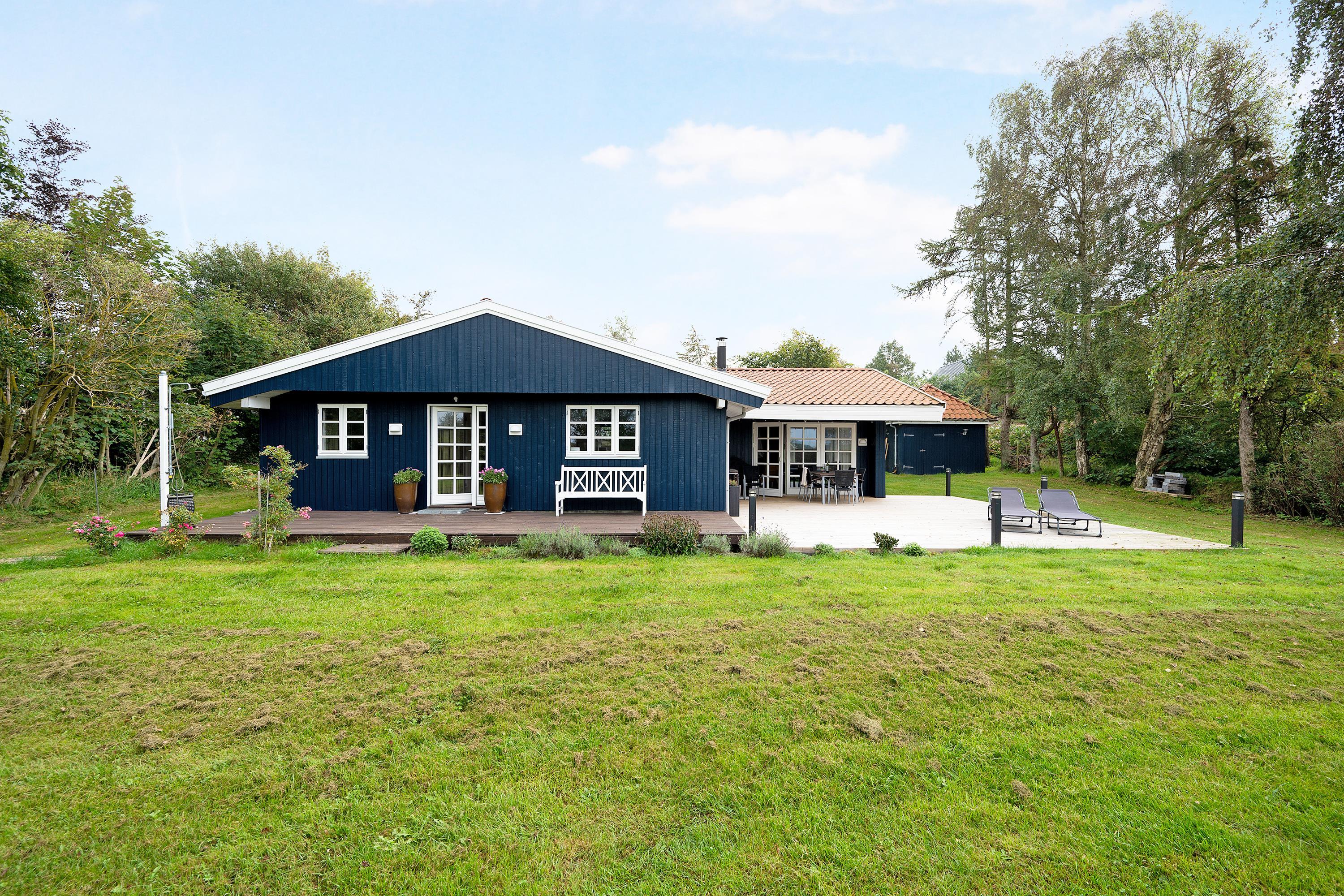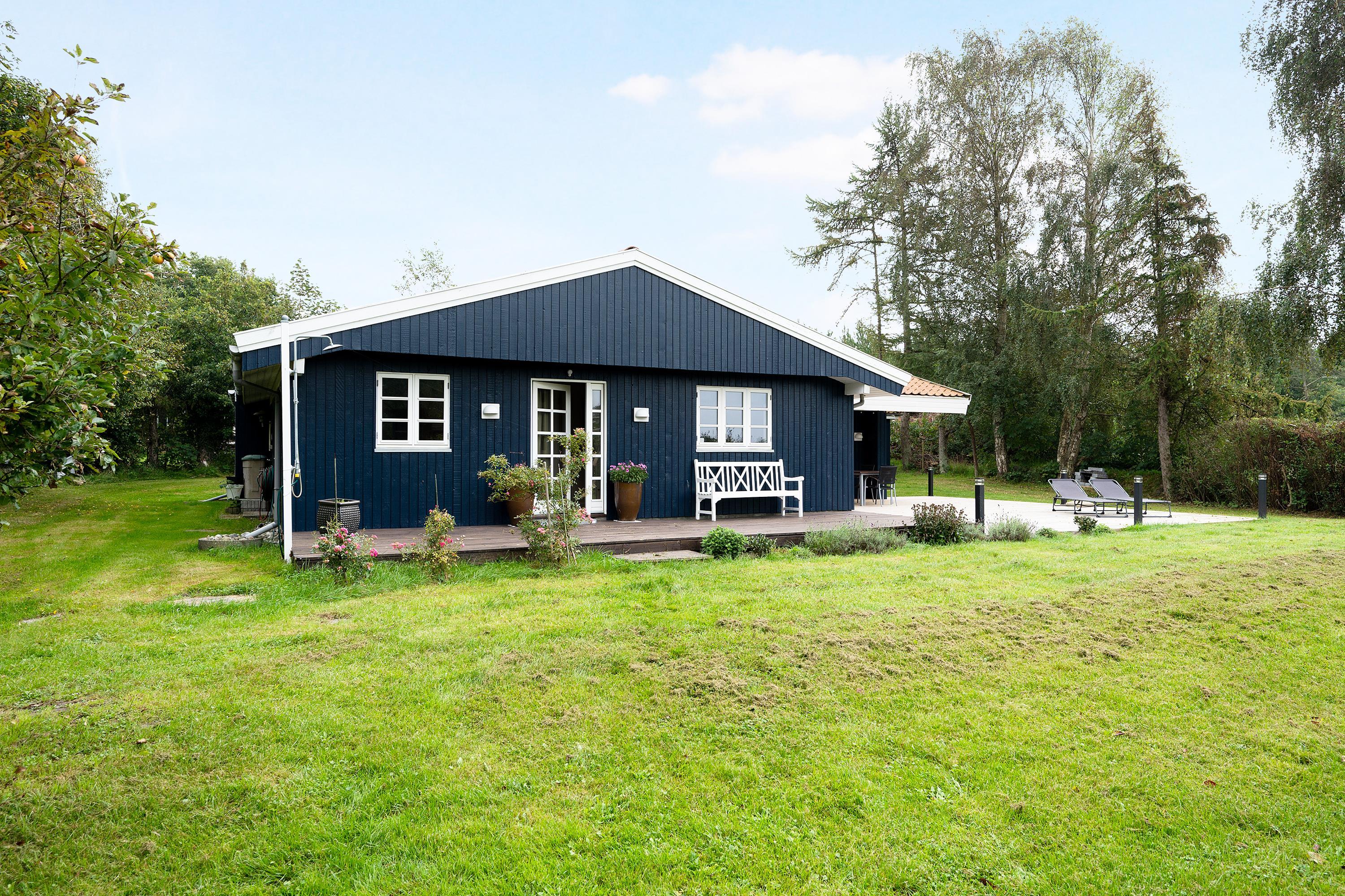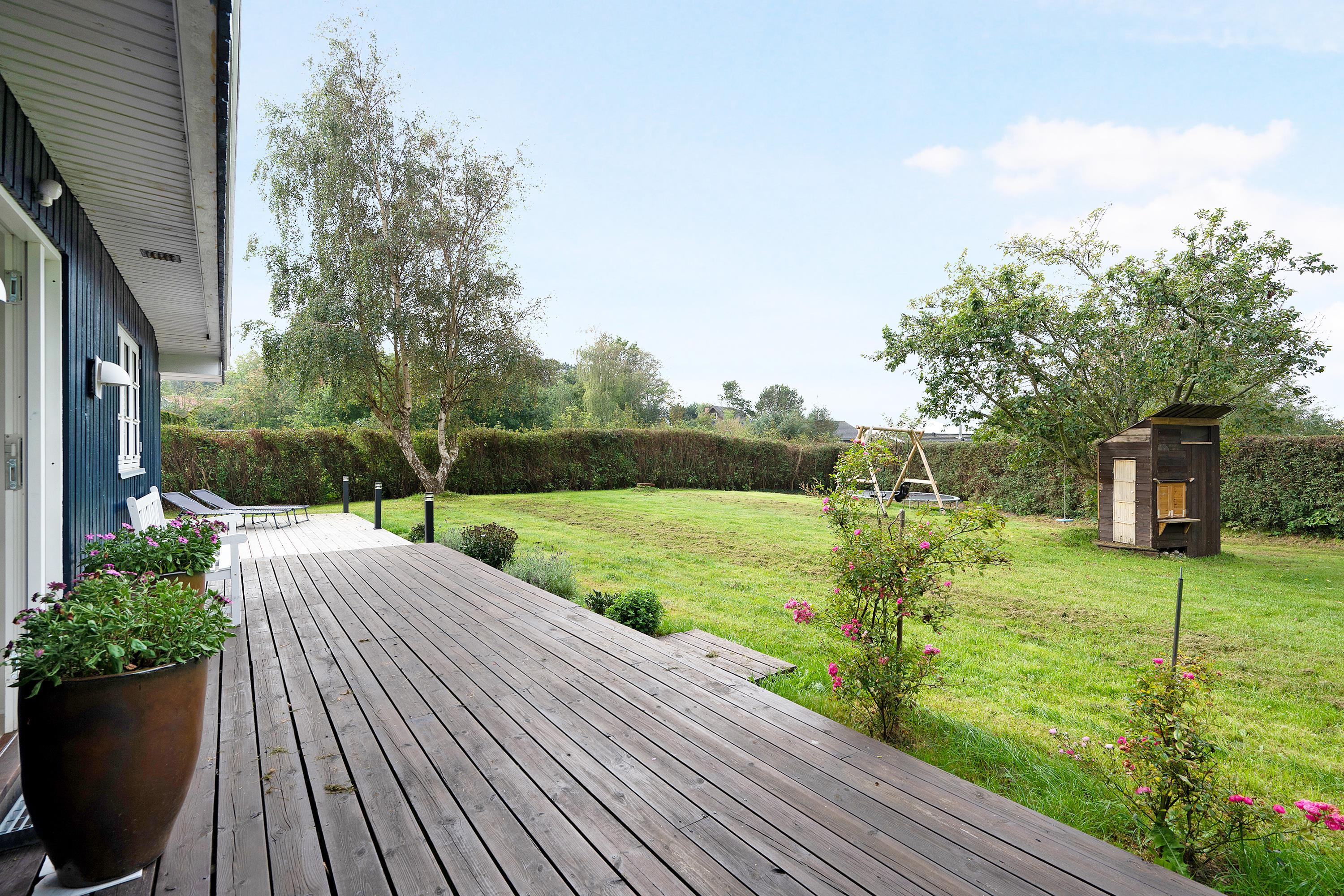 Rummeligt og velholdt feriehus tæt på strand og Ebeltoft med terrasse, spa, børnefaciliteter og moderne komfort.