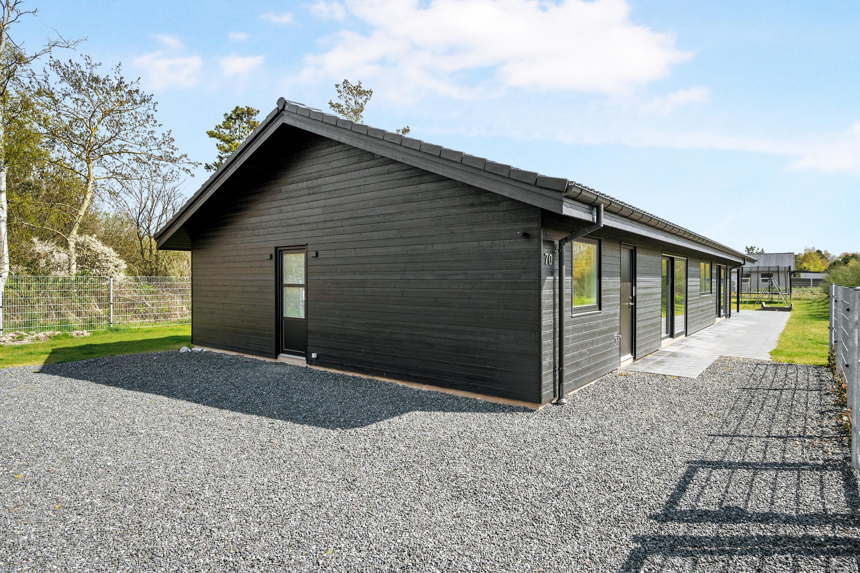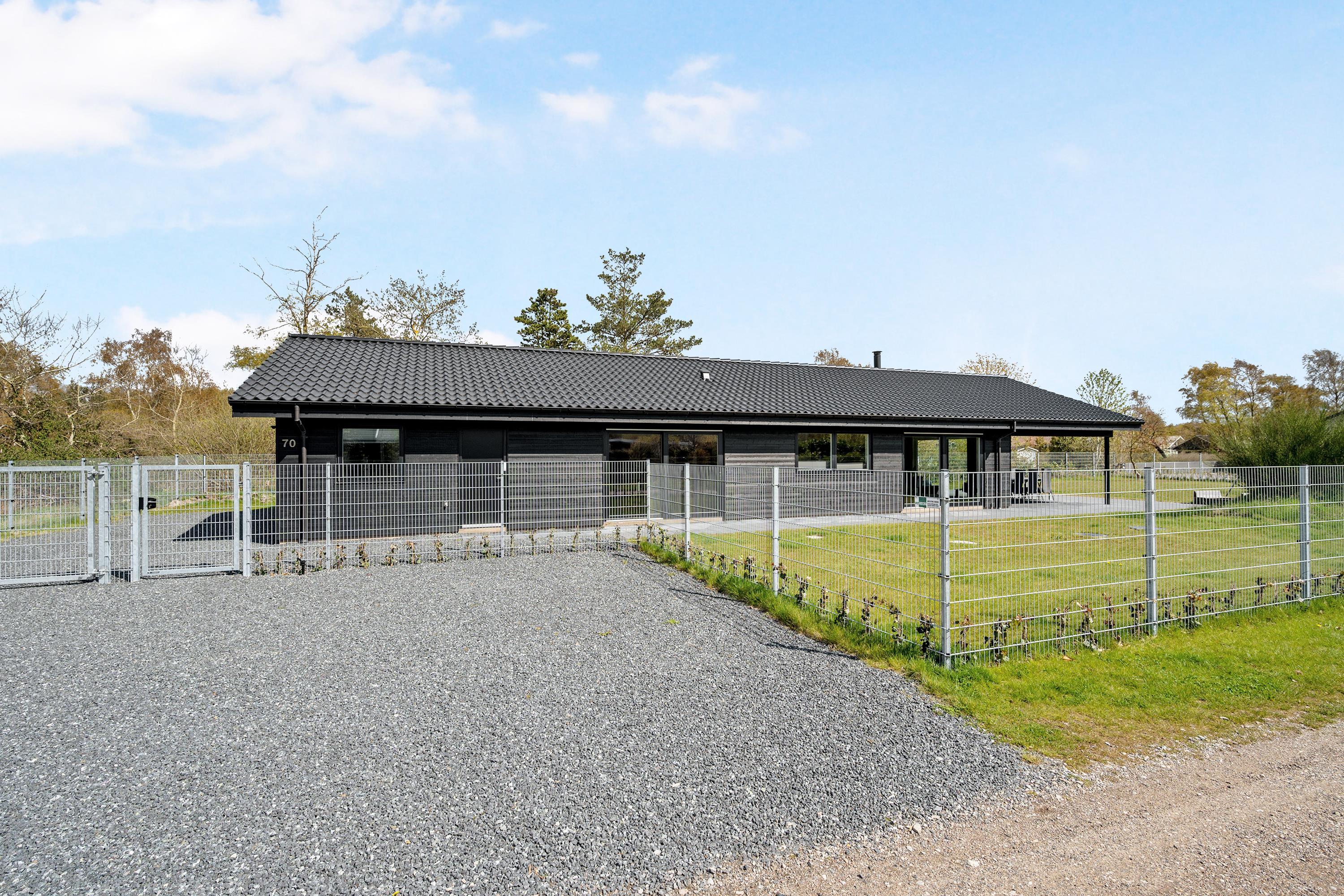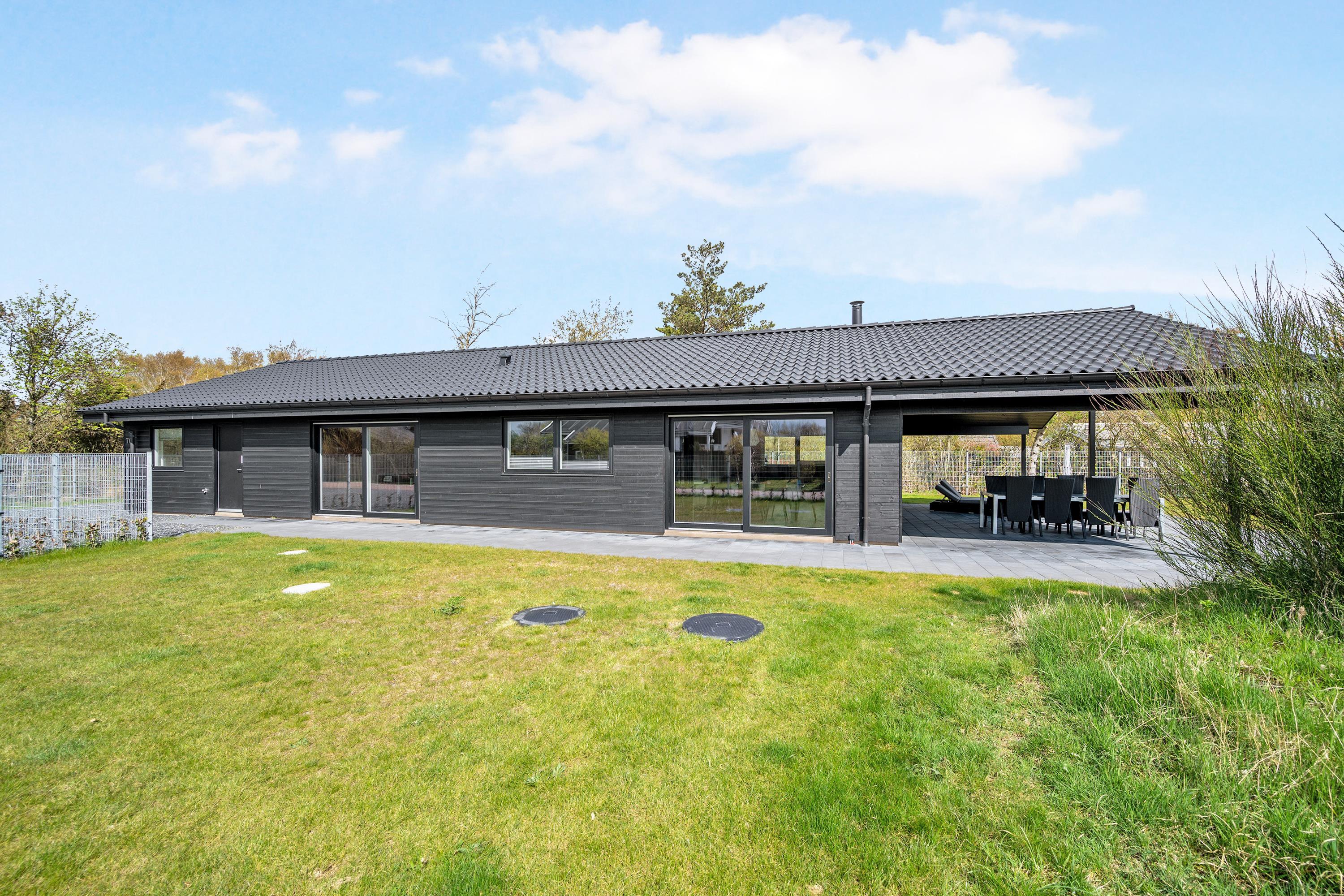 Dette nye og yderst rummelige feriehus er beliggende på naturgrund ved Øer syd for Ebeltoft. Huset er omgivet af stor, delvist overdækket fliseterrasse med havemøbler, liggestole, parasol og grill, og til børnene er der gynger, trampolin og sandkasse. Hele grunden er indhegnet, således at en hund kan løbe frit. I aflåst skur er der desuden udendørs bordtennisbord, som man kan sætte op i have eller på terrasse. Et flot og gennemført hus med alt i udstyr og komfort uanset aldersgruppe.