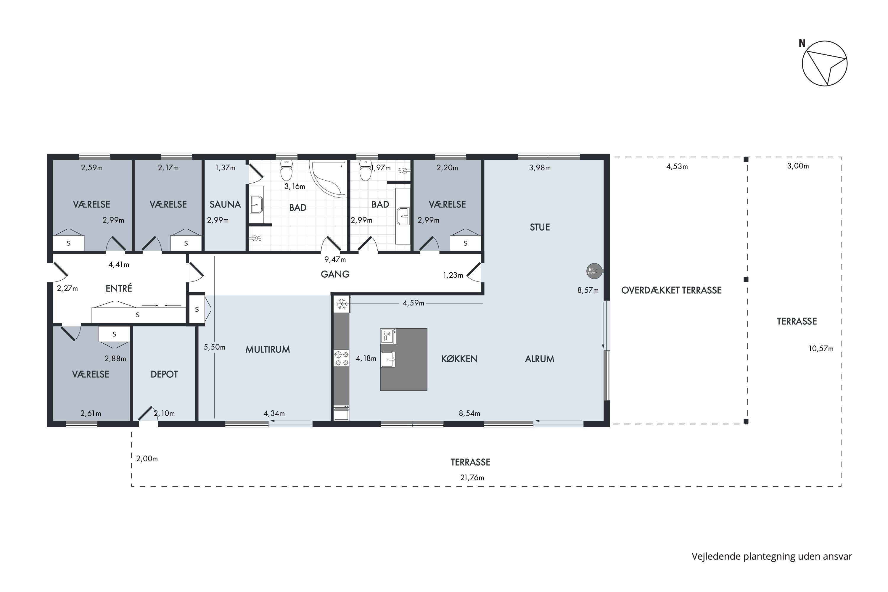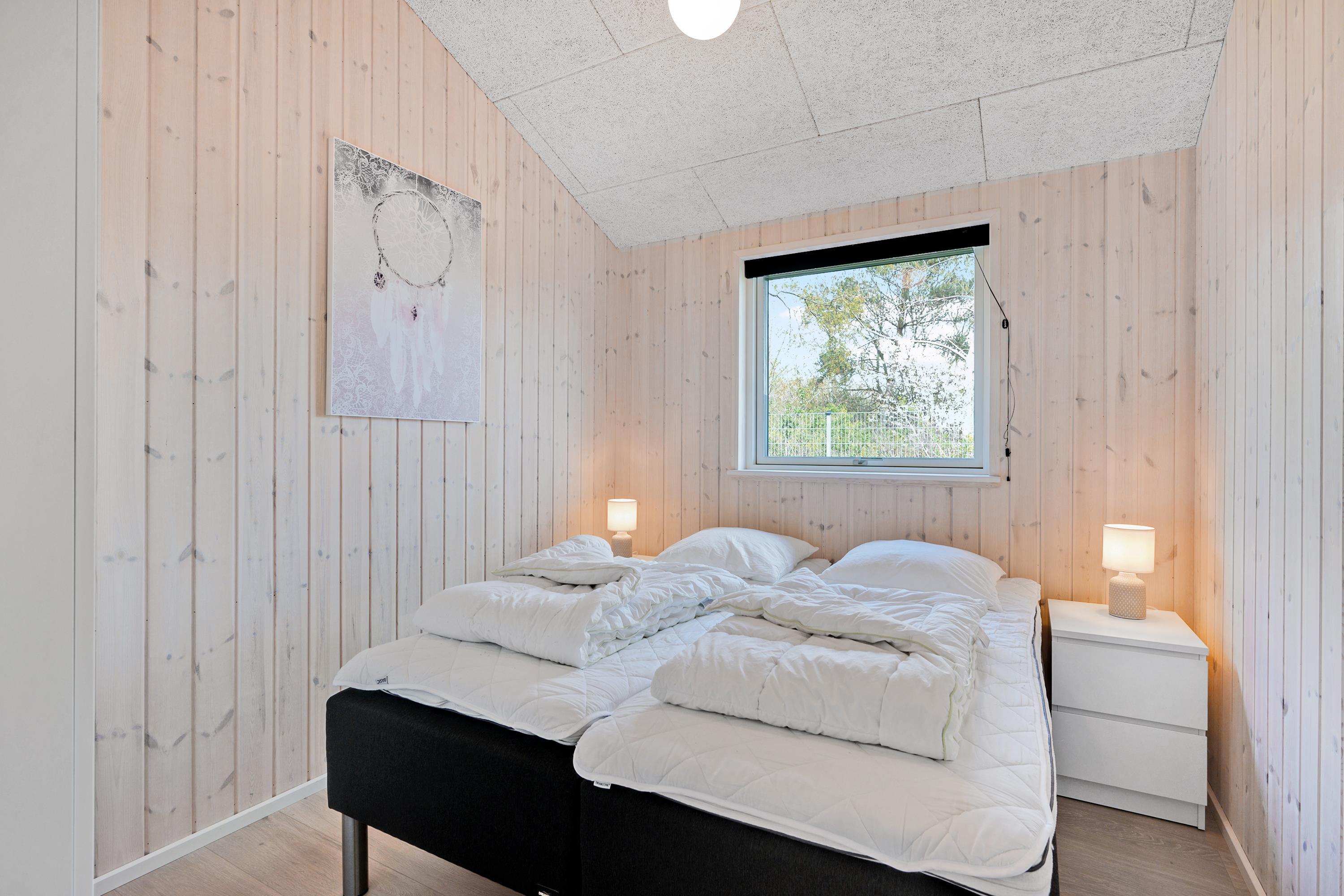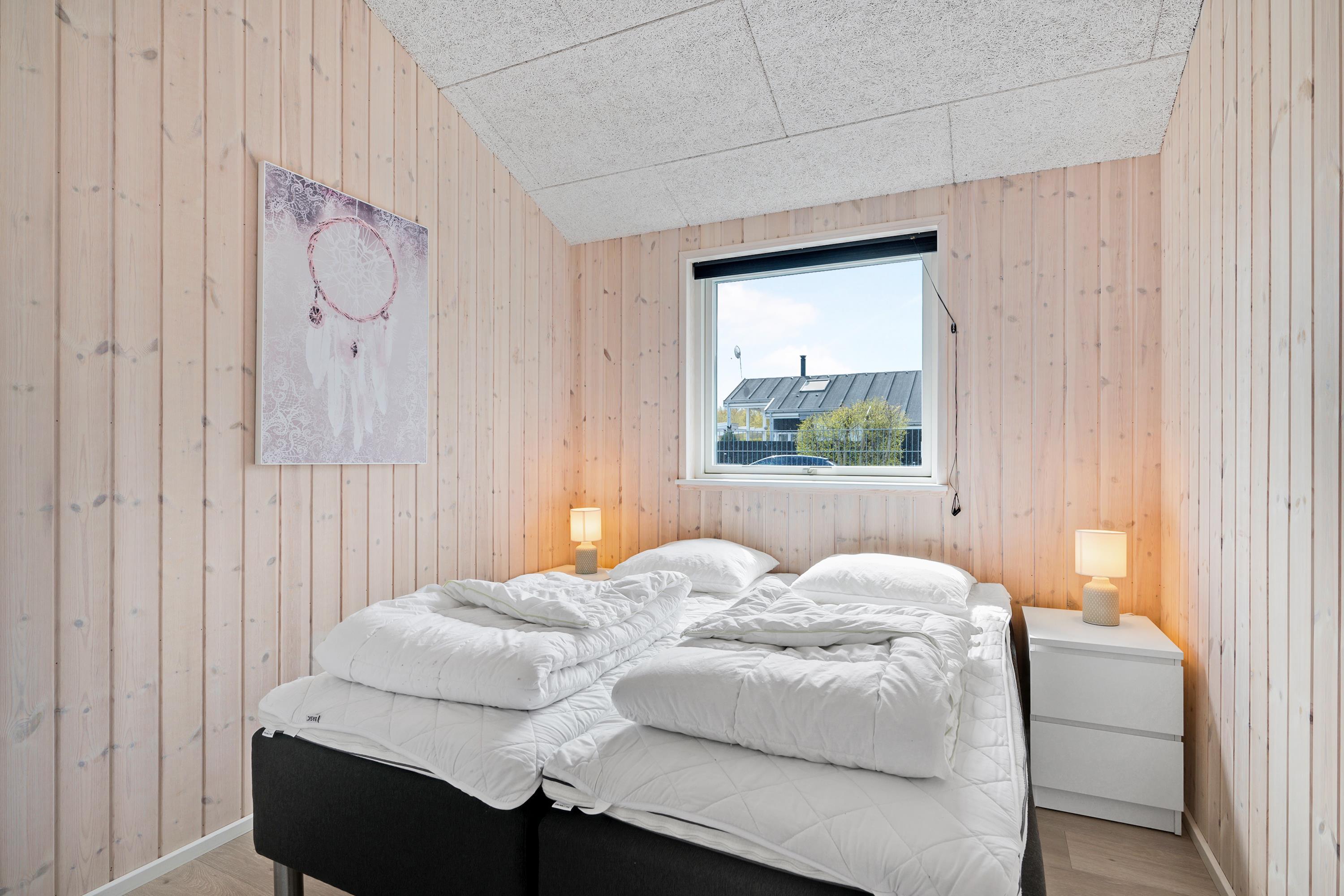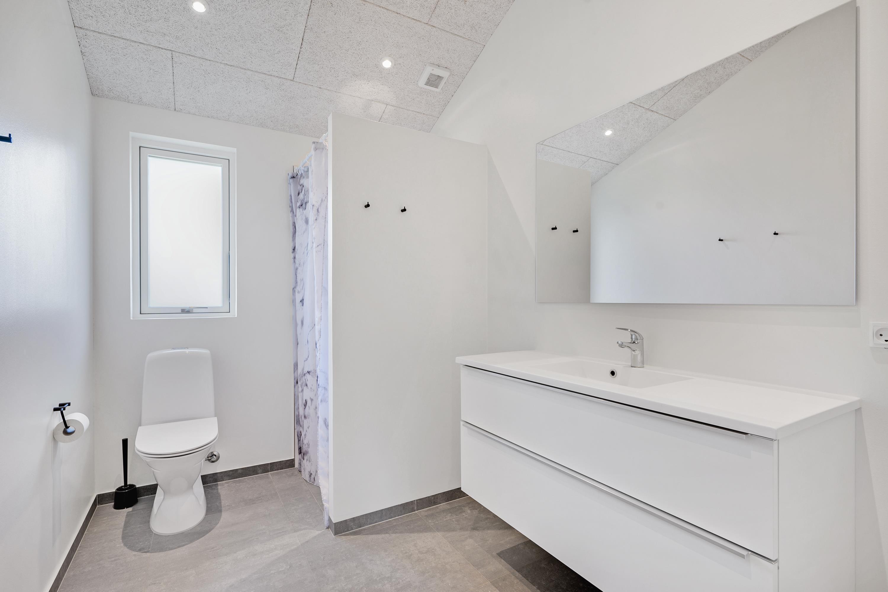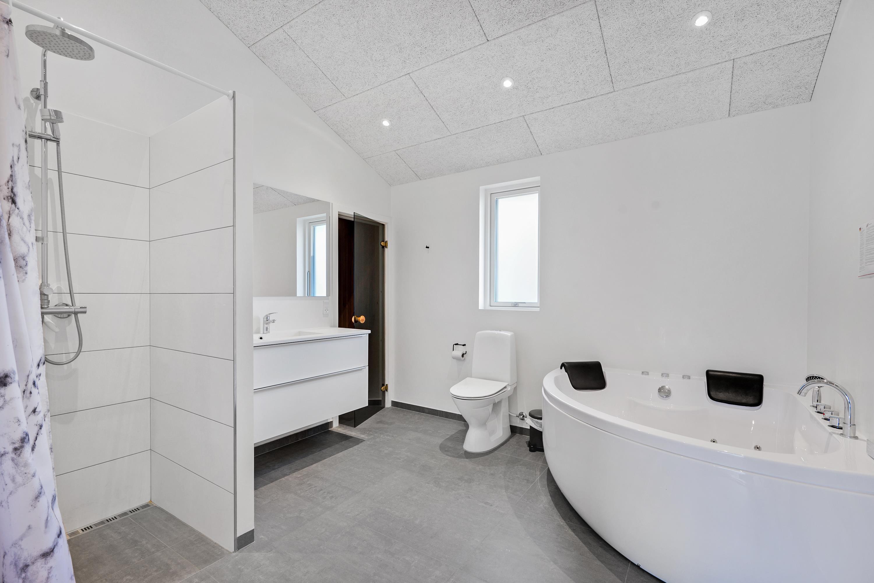 Hele huset er åbent til kip med stor loftshøjde, som bidrager til følelsen af masser af plads og lys. Den store stue ligger i åben forbindelse med køkken og har panoramavinduer og udgang til terrassen. Her er spiseafdeling til 8 personer, brændeovn, dejlig sofaafdeling samt TV med danske (inkl. TV2) og tyske kanaler. Virkelig lækkert og velindrettet køkken med induktionskogeplader, indbygningsovn, køle-/fryseskab, opvaskemaskine og mikrobølgeovn. Som en del af fordelingsgang finder man stort aktivitets-/multirum med poolbord og bordfodbold. Husets 8 sovepladser fordeler sig på 4 dejlige, lyse soveværelser – 2 med dobbeltseng og 2 med 2 enkeltsenge. Stort, virkelig flot badeværelse med bruseniche, spabad og sauna samt lidt mindre badeværelse med bruseniche. Der er gulvvarme i begge vådrum. I den store entré er der desuden vaskemaskine og tørretumbler. Internetadgang.