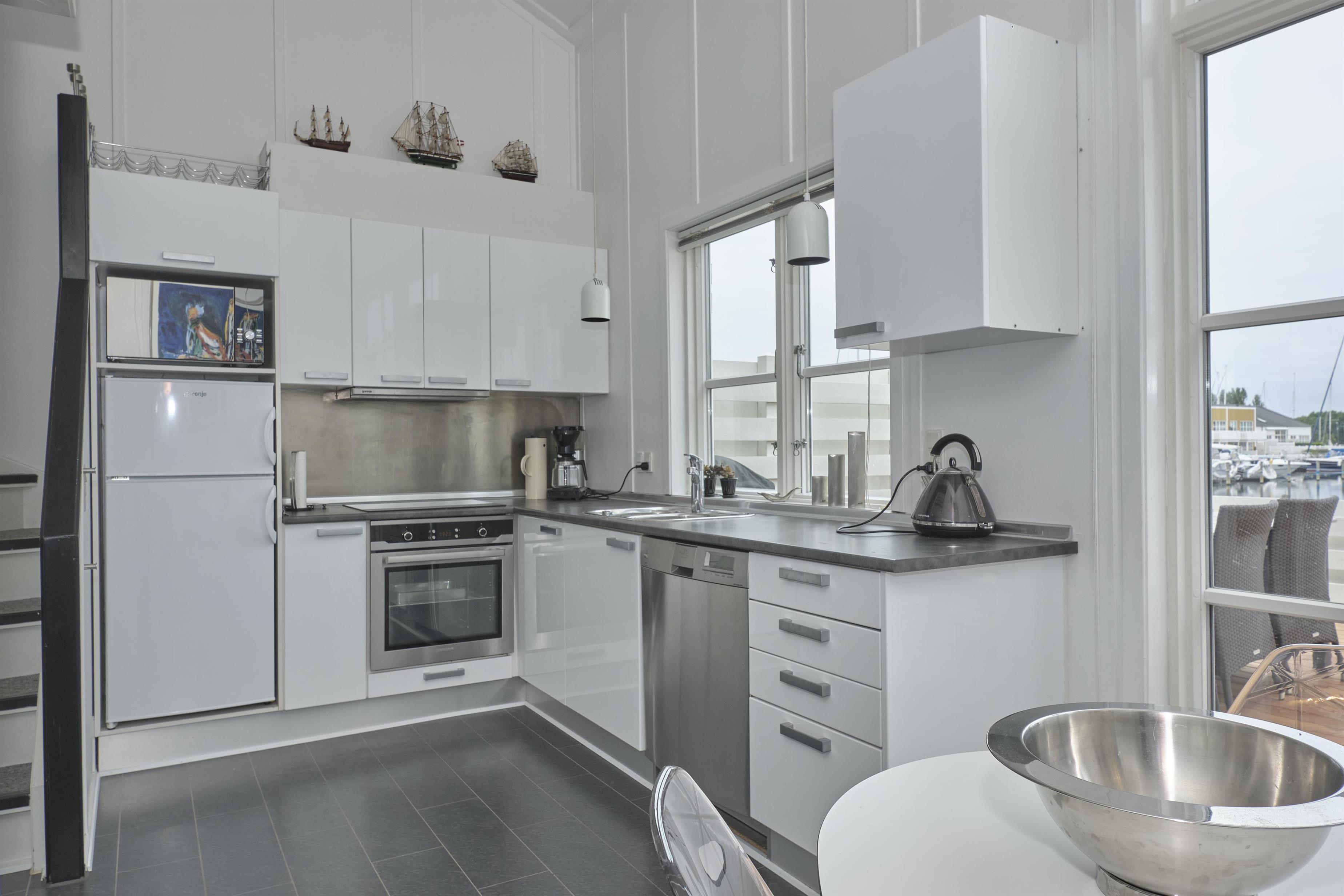 Flot indrettet ferielejlighed i 2 plan beliggende i det naturskønne Øer Maritime Ferieby og med dejlig udsigt til bådpladserne. fra terrasse, køkken og stue. Stor, skøn træterrasse med havemøbler, liggestole, parasol og grill, samt hyggelig, flisebelagt gårdhave med god læ.