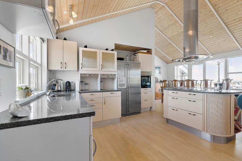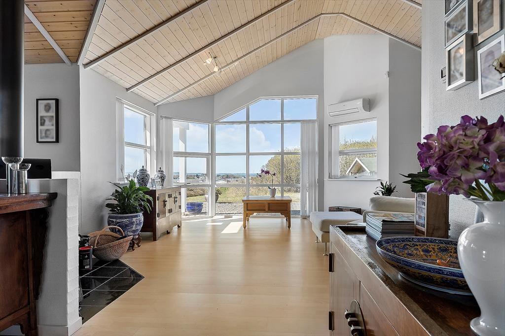 Dette skønne feriehus syd for Ebeltoft by byder på en fantastisk udsigt over Ebeltoft Vig og en indretning, der får dig til at føle dig hjemme fra første øjeblik. Husets køkken, spisestue og dagligstue er samlet i ét, hvilket skaber en hyggelig atmosfære med havudsigt fra alle disse rum. Med plads til 8 personer fordelt på 4 dejlige soveværelser – 3 med dobbeltsenge og 1 med køjeseng – er her plads til både familie og venner. De to badeværelser er moderne og praktiske, hvor det ene byder på spabad og sauna, mens det andet har en vaskemaskine. I det store og veludstyrede køkken med kogeø kan I let tilberede alt fra hurtige snacks til gourmetmiddage. Aftenerne kan nydes foran brændeovnen, hvor der er rig mulighed for hygge med spil, bøger og film.