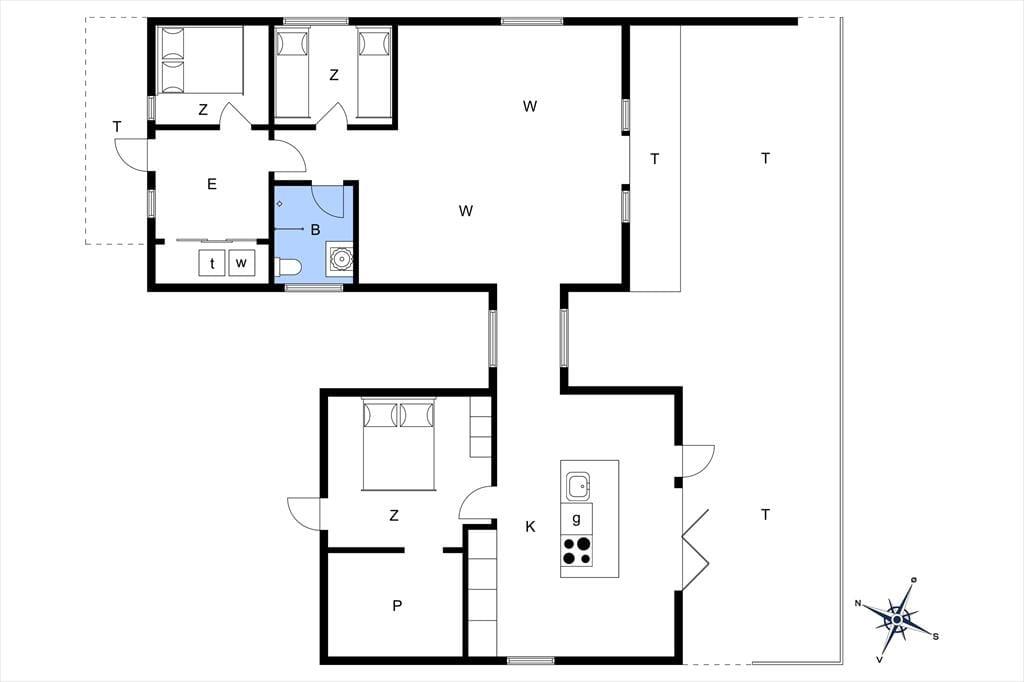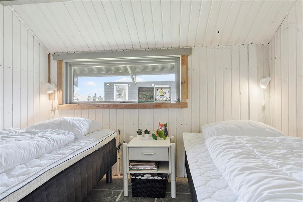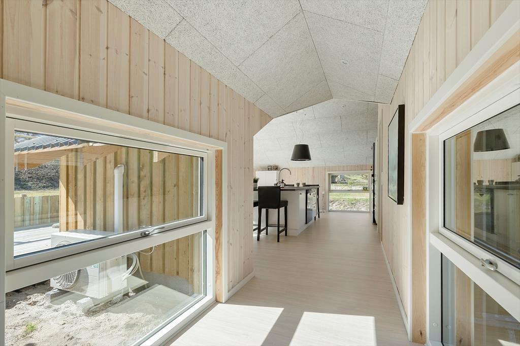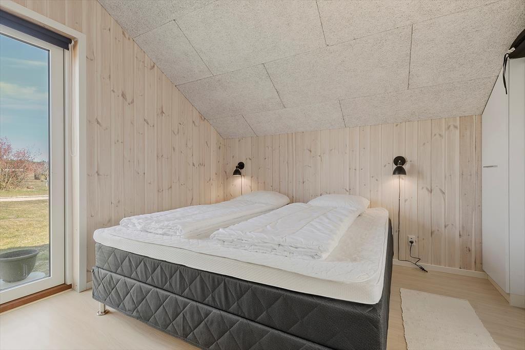 Her træder I ind i et indbydende og lyst feriehus, hvor to sammenhængende bygninger skaber de perfekte rammer for jeres ophold. Den store stue med brændeovn og varmepumpe inviterer til hyggeaftener, mens den nye tilbygning (2022) imponerer med et moderne køkken og et ekstra soveværelse. Køkkenets foldedør i glas lader jer åbne op og nyde naturen helt tæt på – nærmest som at spise under åben himmel. Huset rummer tre soveværelser, to med dobbeltsenge og ét med enkeltsenge, samt et flot badeværelse fra 2021 med bruseniche. Selvfølgelig er der også internet, så I nemt kan dele jeres ferieminder.