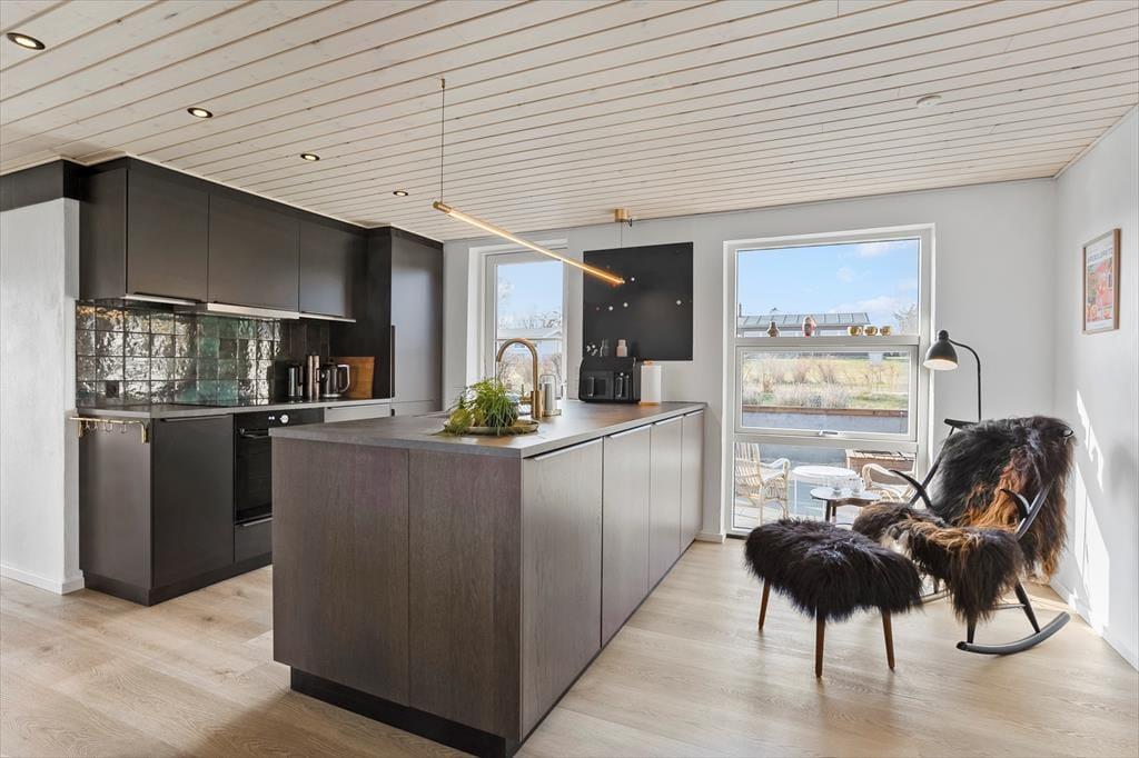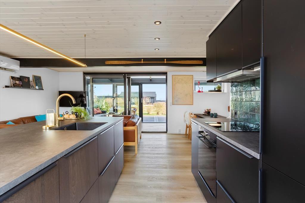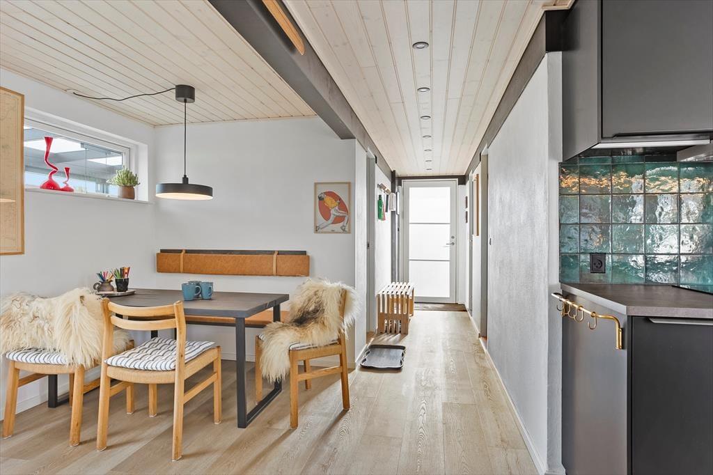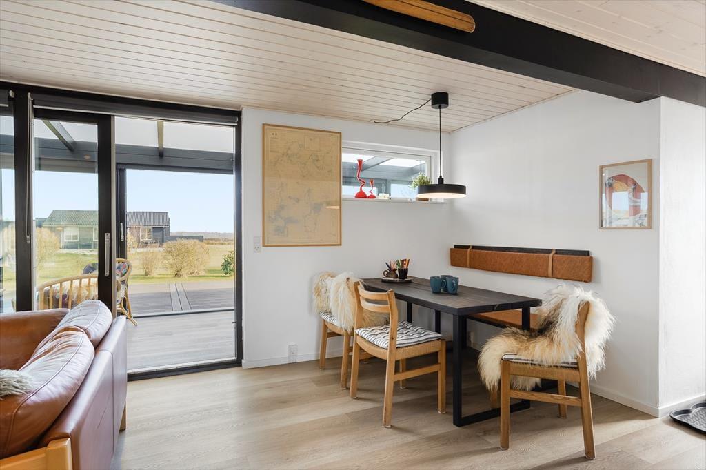 Her venter haven som en sand ferieoase: en stor, uforstyrret grund med terrasseområder rundt om huset, hvor du kan la’ solen følge dig fra loungemøbler til liggestole. I havestuen kan du nyde din morgenkaffe med udsigt til haven, og når aftenen falder på, tændes grillen eller bålpladsen til lange samtaler under åben himmel. Det er det oplagte sted til boldspil, leg og udendørsaktion – eller blot rolig afslapning med en god bog. Og fordi huset ligger tæt på natur og strand, kan du hurtigt skifte mellem indekomfort og udeoplevelser – det bedste fra begge verdener.
