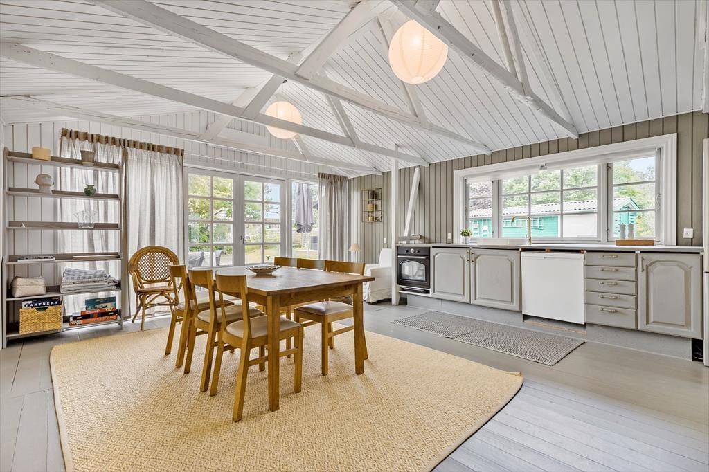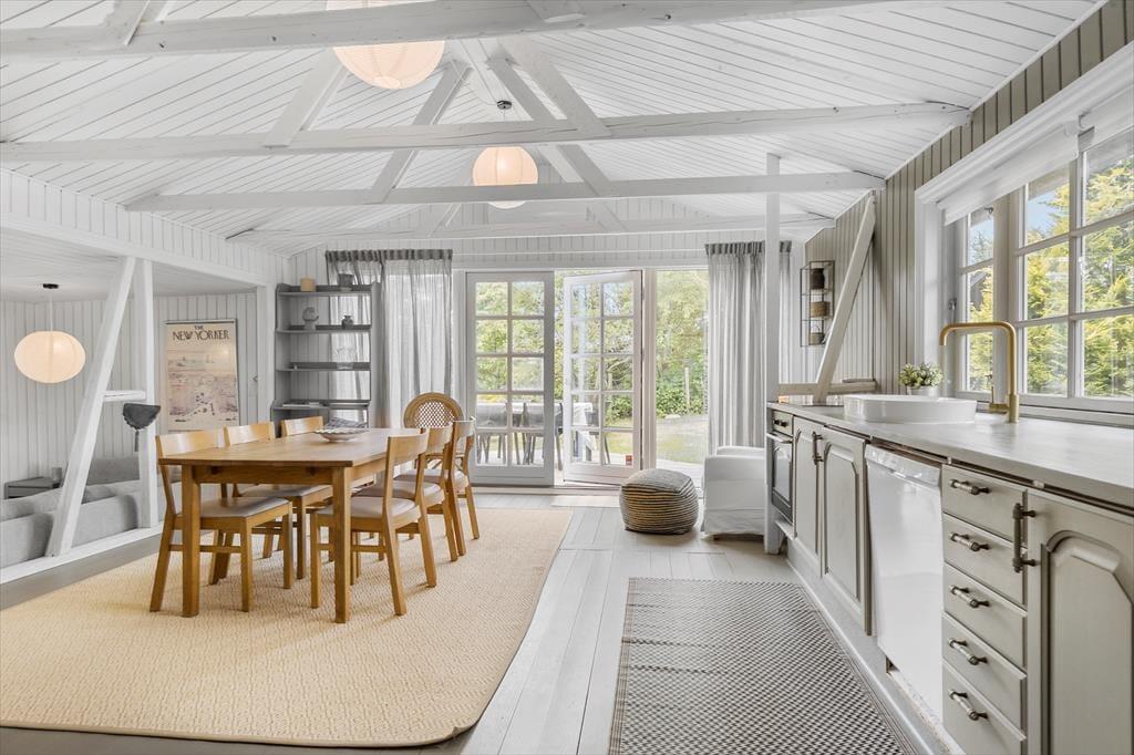 Huset ligger 3 km fra en dejlig og meget børnevenlig badestrand i et populært område tæt på Ebeltoft by. Derudover ligger det i et skønt naturområde, som er rigt på fugle- og dyreliv. Ca.5 min. kørsel fra huset er Ebeltoft centrum, som byder på mange aktiviteter og attraktioner. I kan b.la. besøge Det gamle Rådhus, hvor man om sommeren kan høre vægterne synge ved rådhuset kl. 20 og 21 for derefter at starte på deres patrulje gennem byens gader. På havnen finder man Glasmuseet, som er førende indenfor moderne glaskunst, samt flere gode spisesteder og special butikker. Der er heller ikke langt til større attraktioner såsom Ree-Park, hvor I kan opleve dyrene helt tæt på. Djurs Sommerland og Kattegatcentret i Grenaa er heller ikke langt væk.