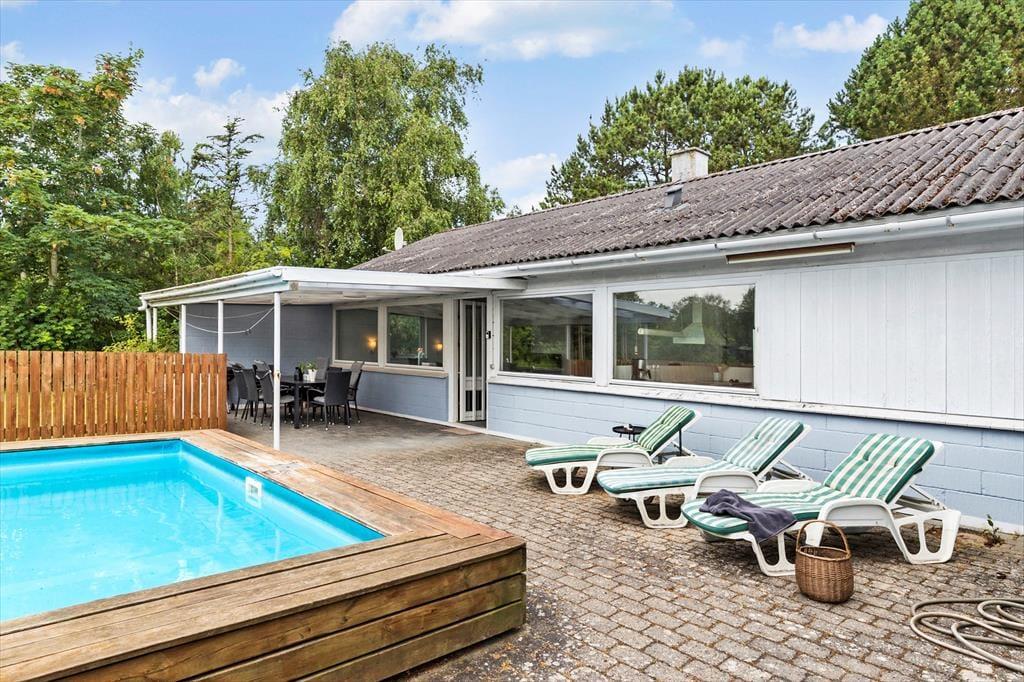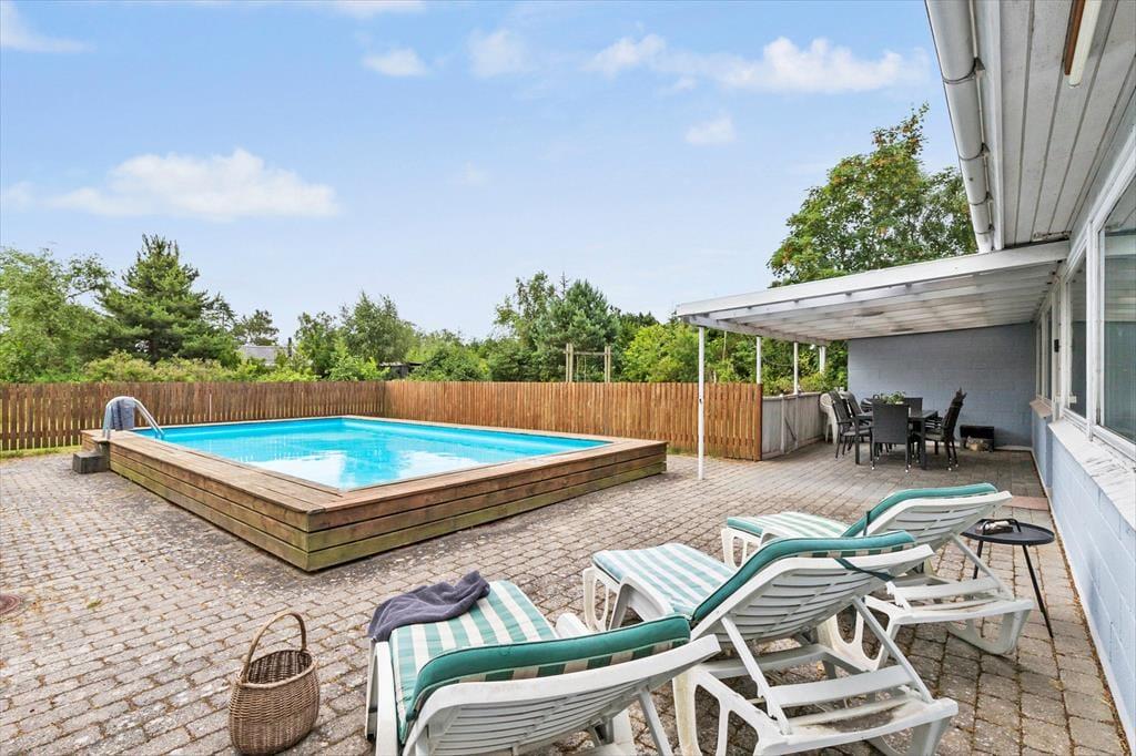Velkommen til jeres nye feriedrøm! Her får I et rummeligt og velindrettet feriehus, hvor op til 7 personer og 2 husdyr kan slå sig ned og nyde feriedagene sammen. Huset er lyst og venligt indrettet med plads til hyggelige stunder for hele familien – og ja, også for de firbenede familiemedlemmer! Efter en dag fuld af oplevelser ved vandet kan I se frem til en afslappende aften i de komfortable omgivelser. Der er også muligheder for at få dyppet tæerne i den udendørs opvarmede private pool