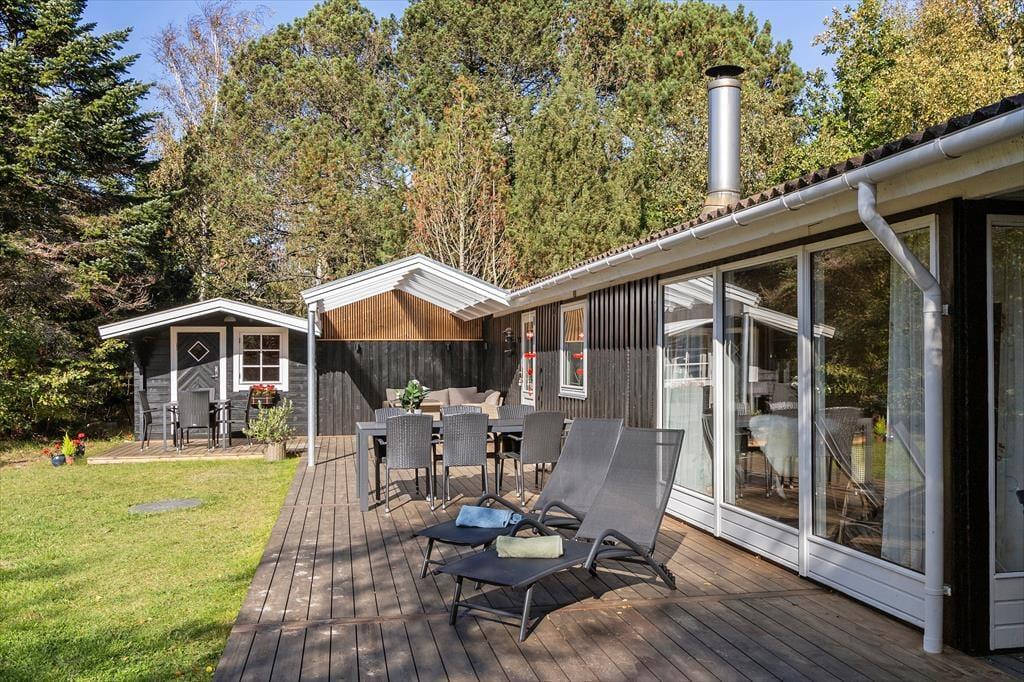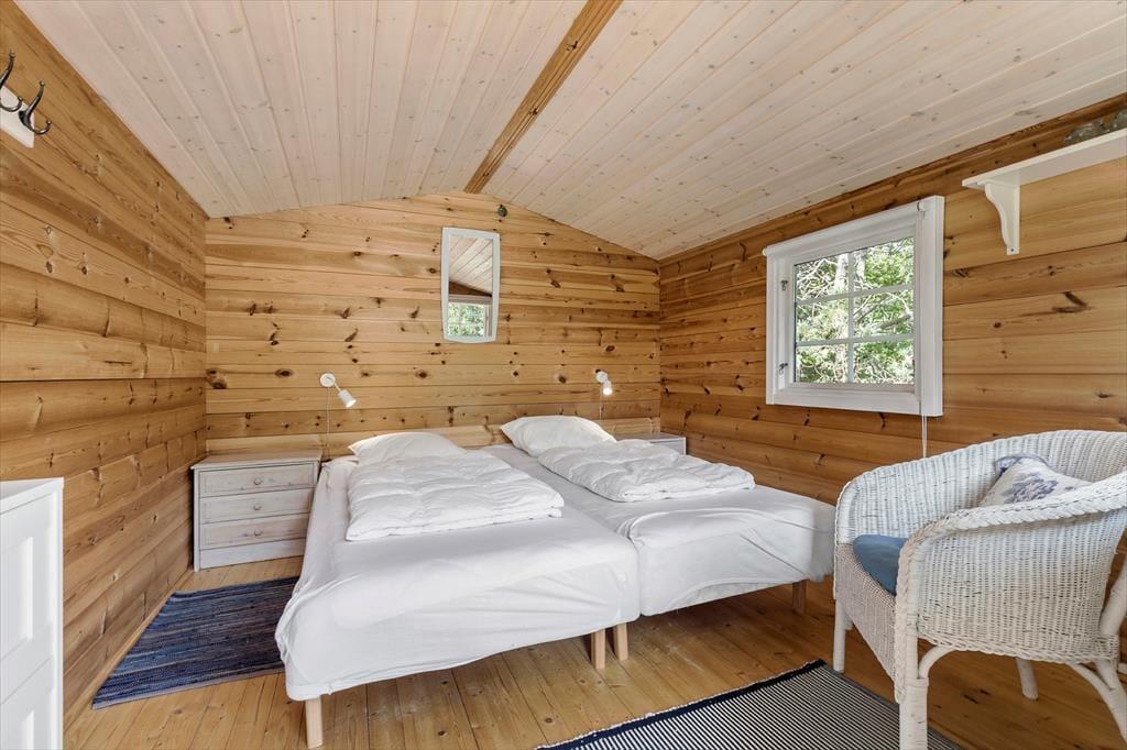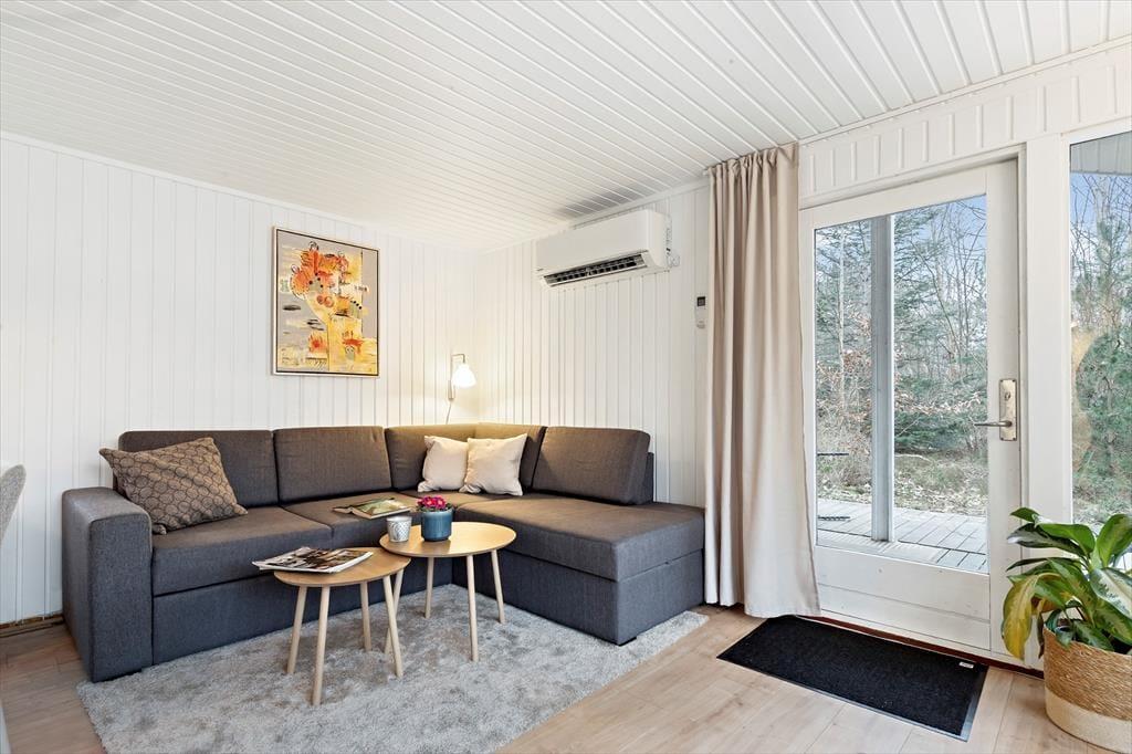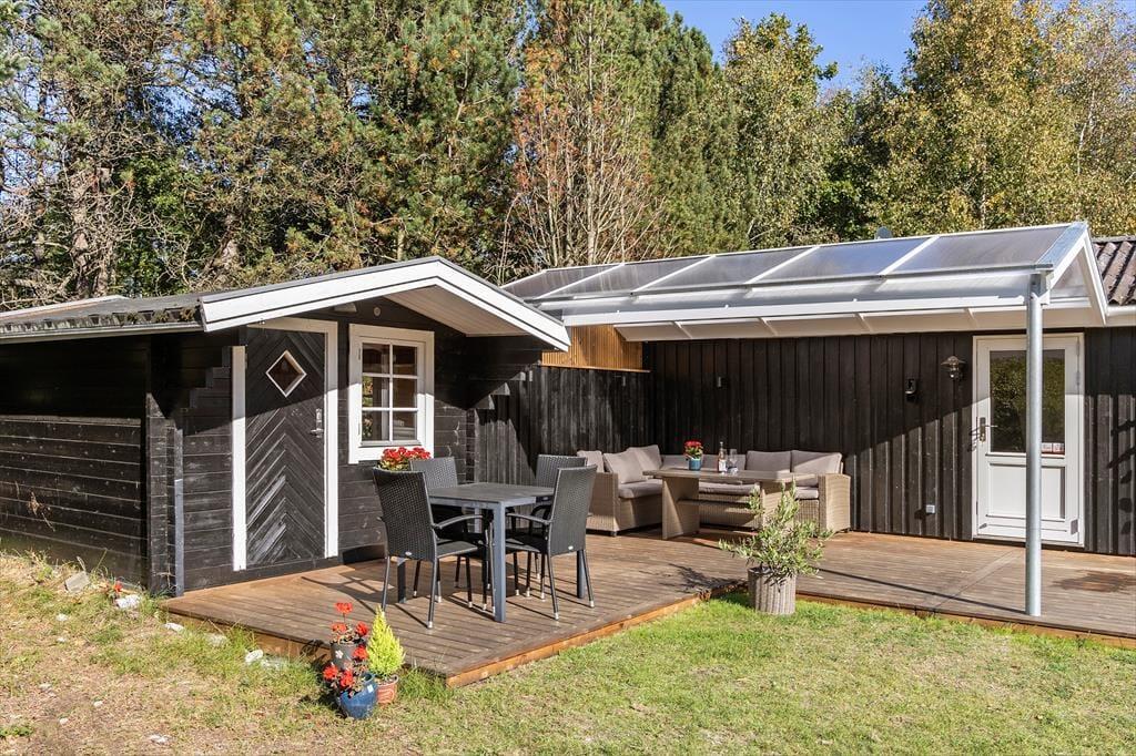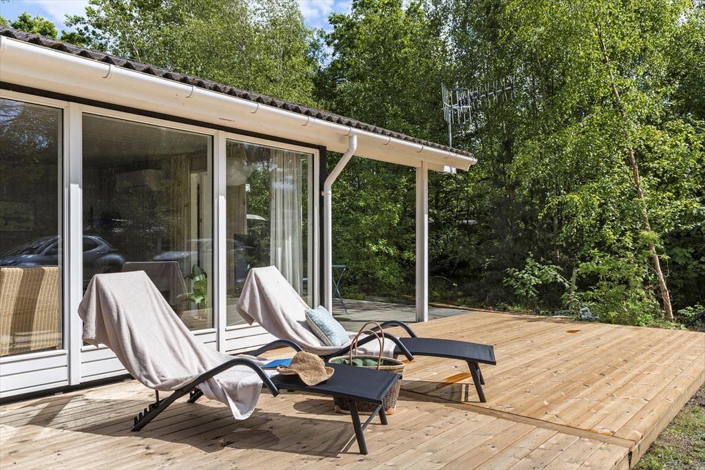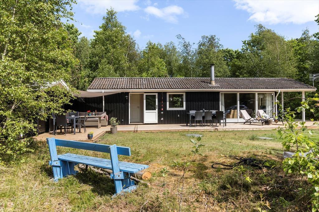 Sommerhuset ligger på en solrig naturgrund for enden af en blind vej, hvilket giver en rolig og ugeneret atmosfære. Der er stier til opdagelse, gode terrasser og et hyggeligt udhus med egen terrasse og anvendelsesmuligheder. Kun 200 meter til stranden kan du starte dagen med en frisk dukkert eller en gåtur langs kysten.
