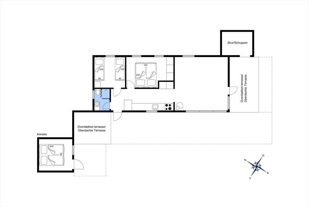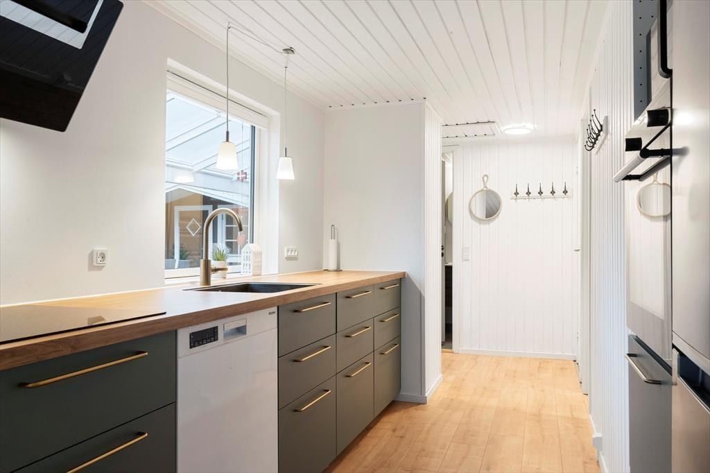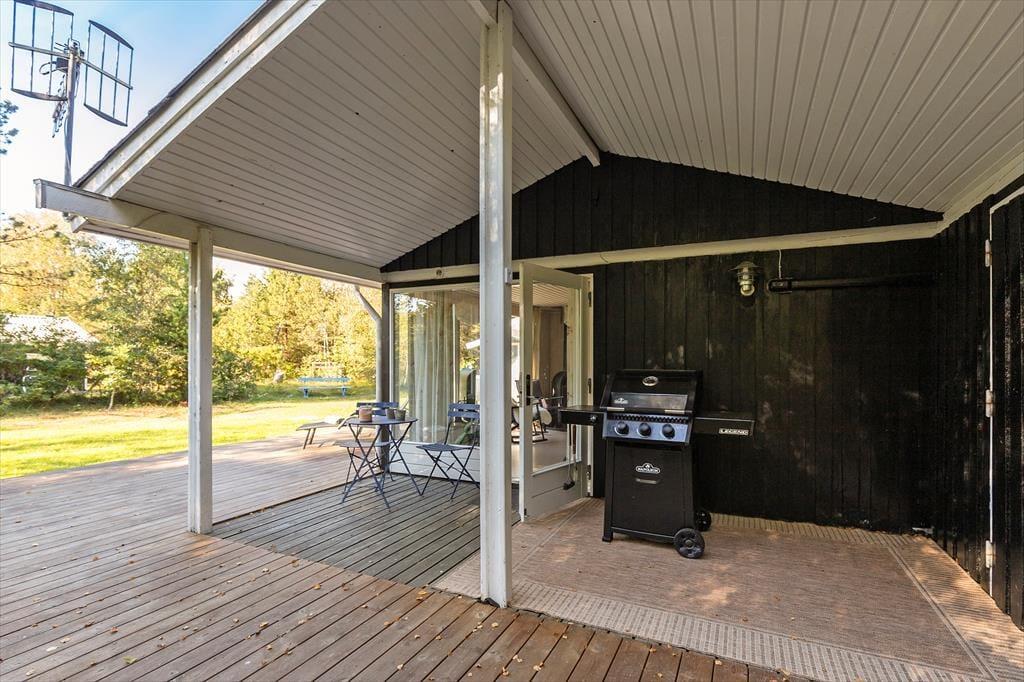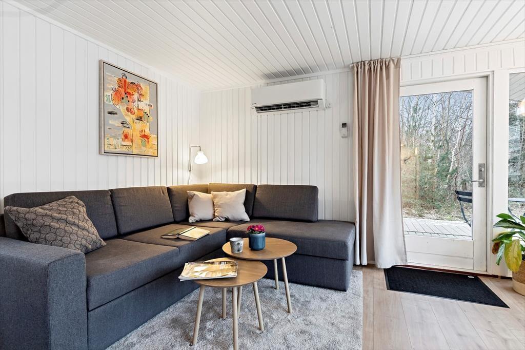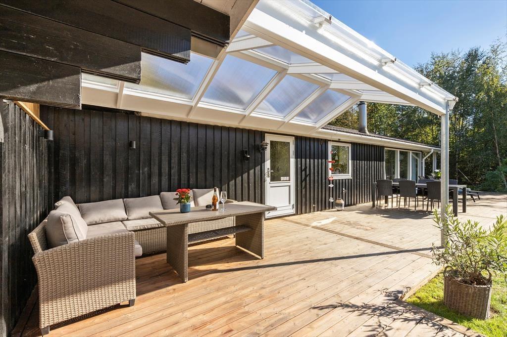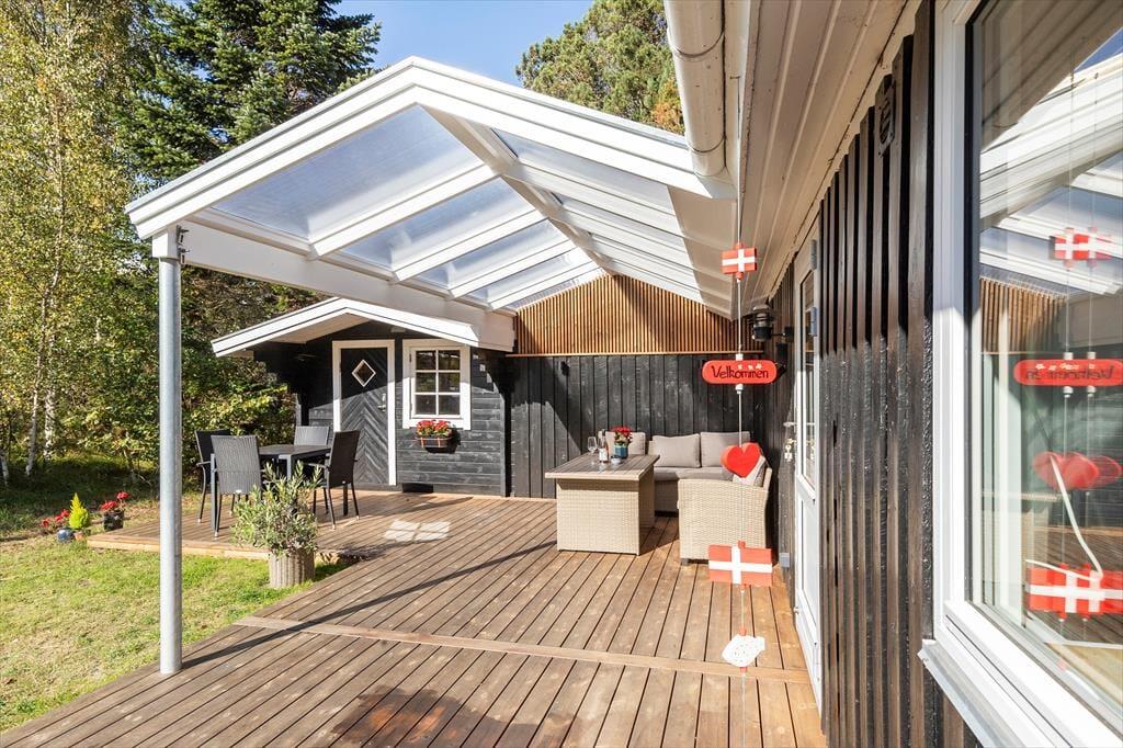 Sommerhuset ligger på en solrig naturgrund for enden af en blind vej, hvilket giver en rolig og ugeneret atmosfære. Der er stier til opdagelse, gode terrasser og et hyggeligt udhus med egen terrasse og anvendelsesmuligheder. Kun 200 meter til stranden kan du starte dagen med en frisk dukkert eller en gåtur langs kysten.