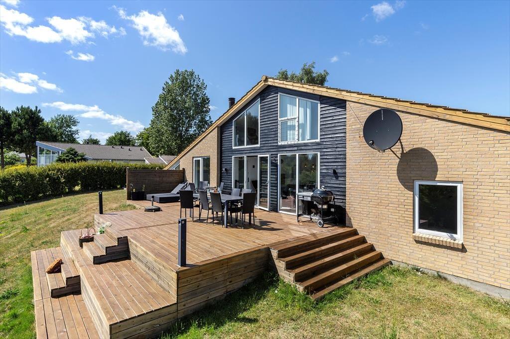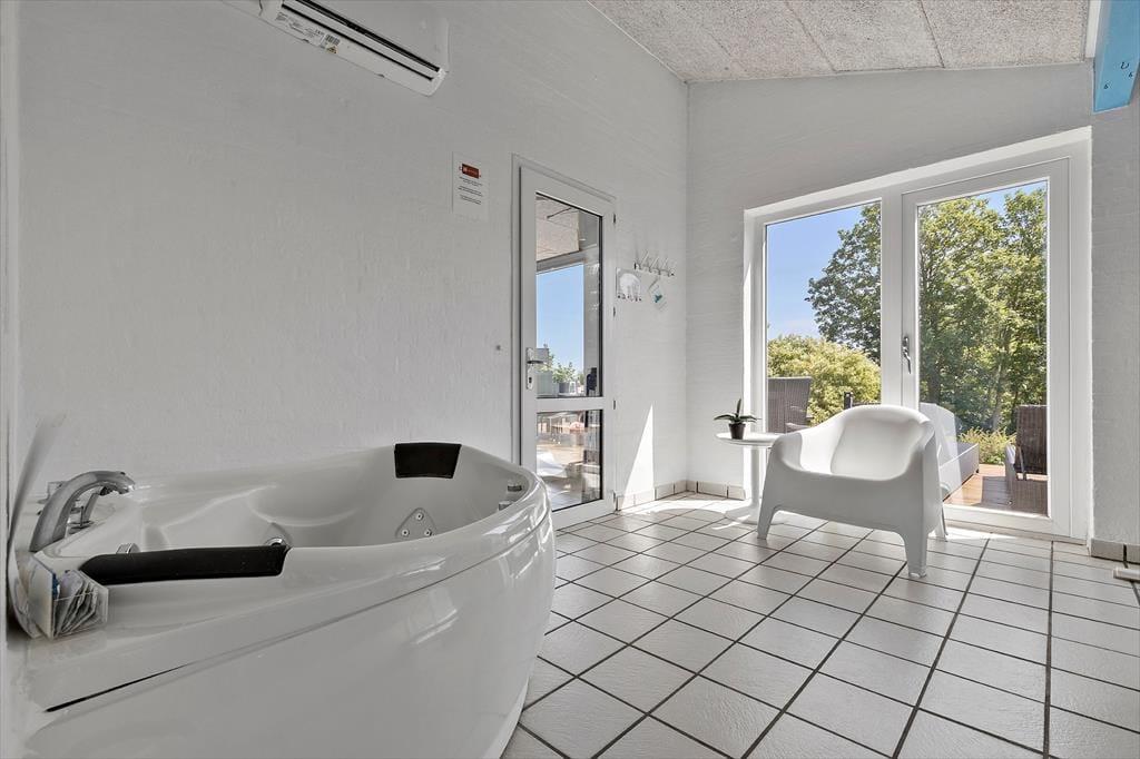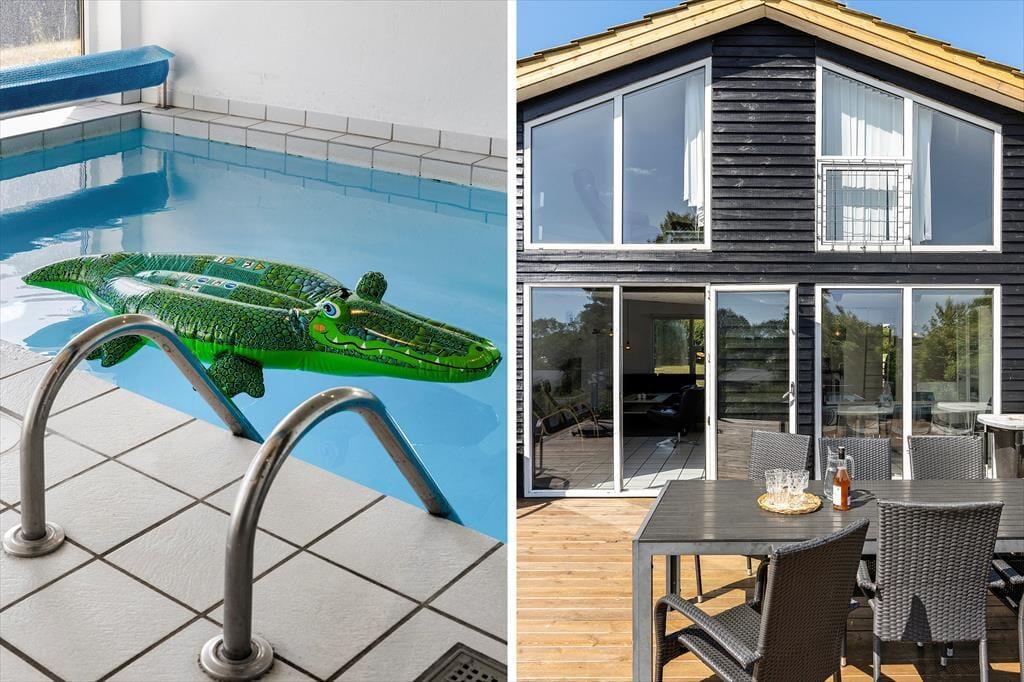 Sommerhusets private poolafdeling med sauna og bruseniche giver wellnessoplevelser året rundt. Udenfor finder du en stor, lukket have med legeplads og plads til afslapning, perfekt for både børn og hunde. Terrassen i læ indbyder til udeliv fra morgenkaffen til grillmiddagen.