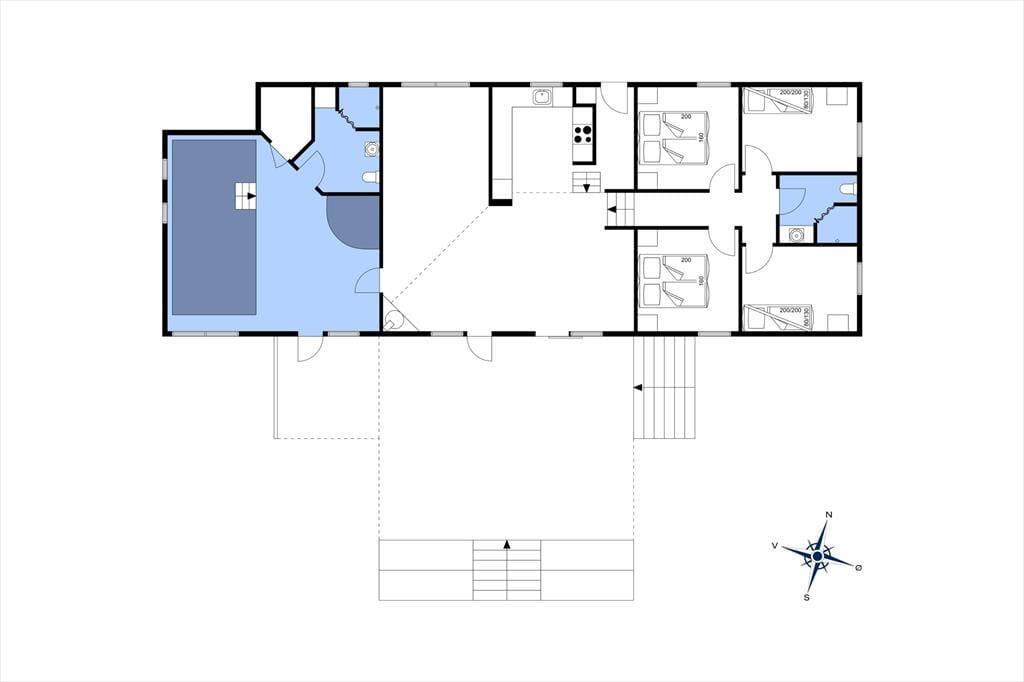 Du træder ind i et lyst og moderne sommerhus i ét plan, hvor komfort og hygge går hånd i hånd. Det åbne køkken er fuldt udstyret og ligger i direkte forbindelse med spise- og opholdsstue, så du altid er en del af samværet. Stuen indbyder til afslapning foran brændeovnen, mens lyset strømmer ind gennem de store vinduer. Huset rummer fire soveværelser med gode senge og skabsplads – ideelt til både familier og venner på tur. Kronen på værket er den private pool-afdeling, hvor du kan nyde en dukkert året rundt. Her finder du også spa, sauna og bruseniche, som giver oplevelsen af wellness i ferien – uanset årstiden.