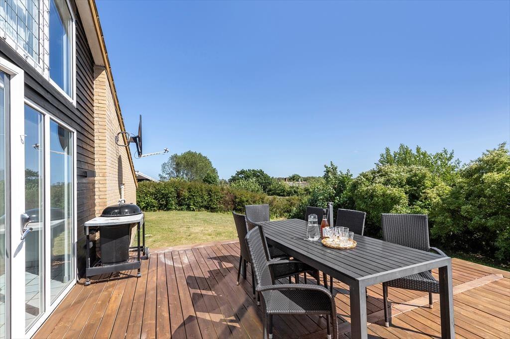 Udenfor venter en stor, lukket have med god plads til både leg og afslapning. Her kan børnene lege trygt, og har du hund med, kan den frit nyde omgivelserne. Terrassen ligger i læ og inviterer til udeliv hele dagen – fra morgenkaffe i solen til grillmiddag i de lange, lyse sommeraftener. Havemøbler og grill står klar, så du nemt kan rykke måltider og hyggestunder ud i det fri og nyde den friske luft og den rolige stemning omkring huset.