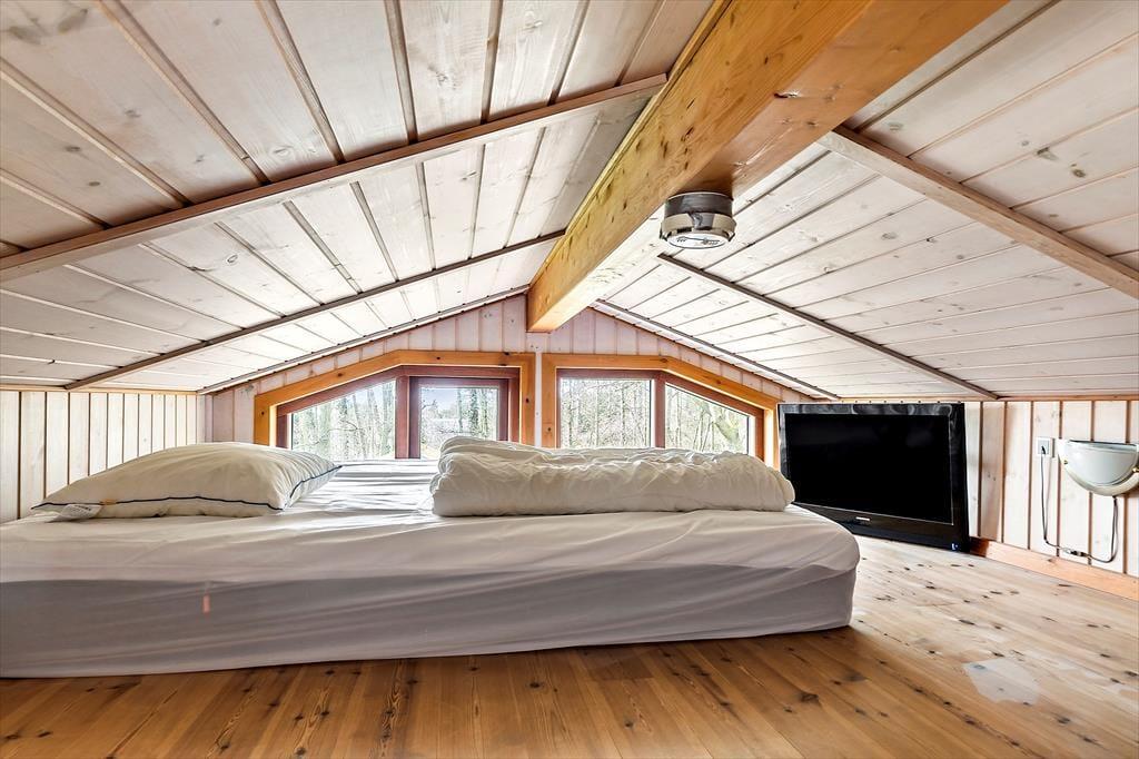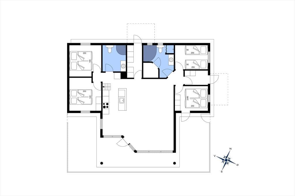 Der er 4 soveværelser i huset, samt 4 sovepladser på hemsen alle med springmadrasser.