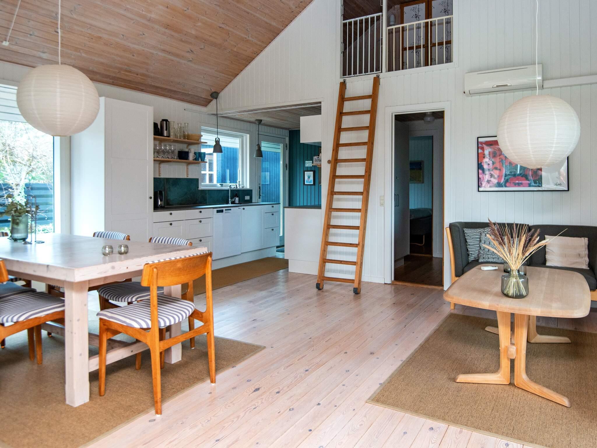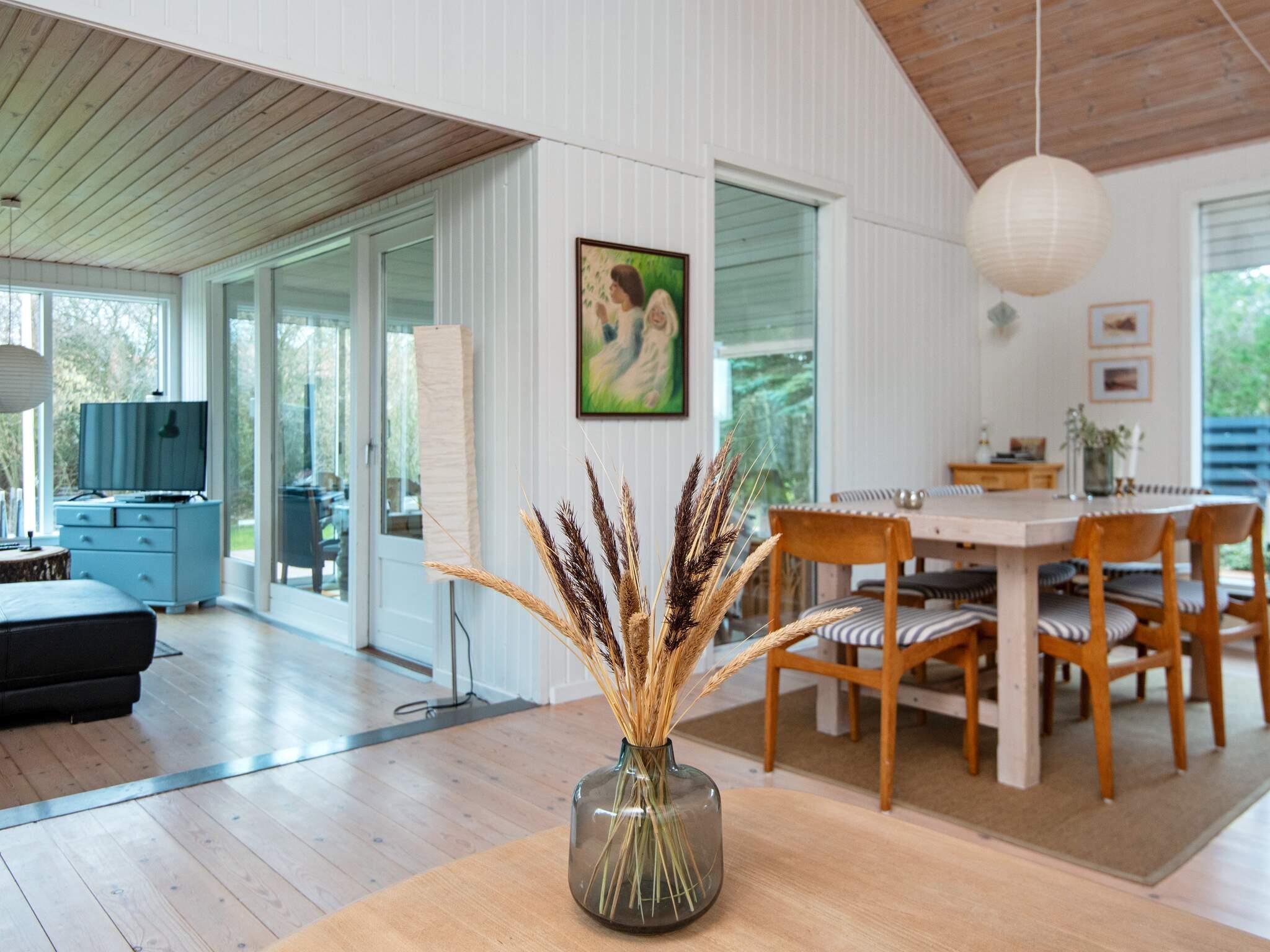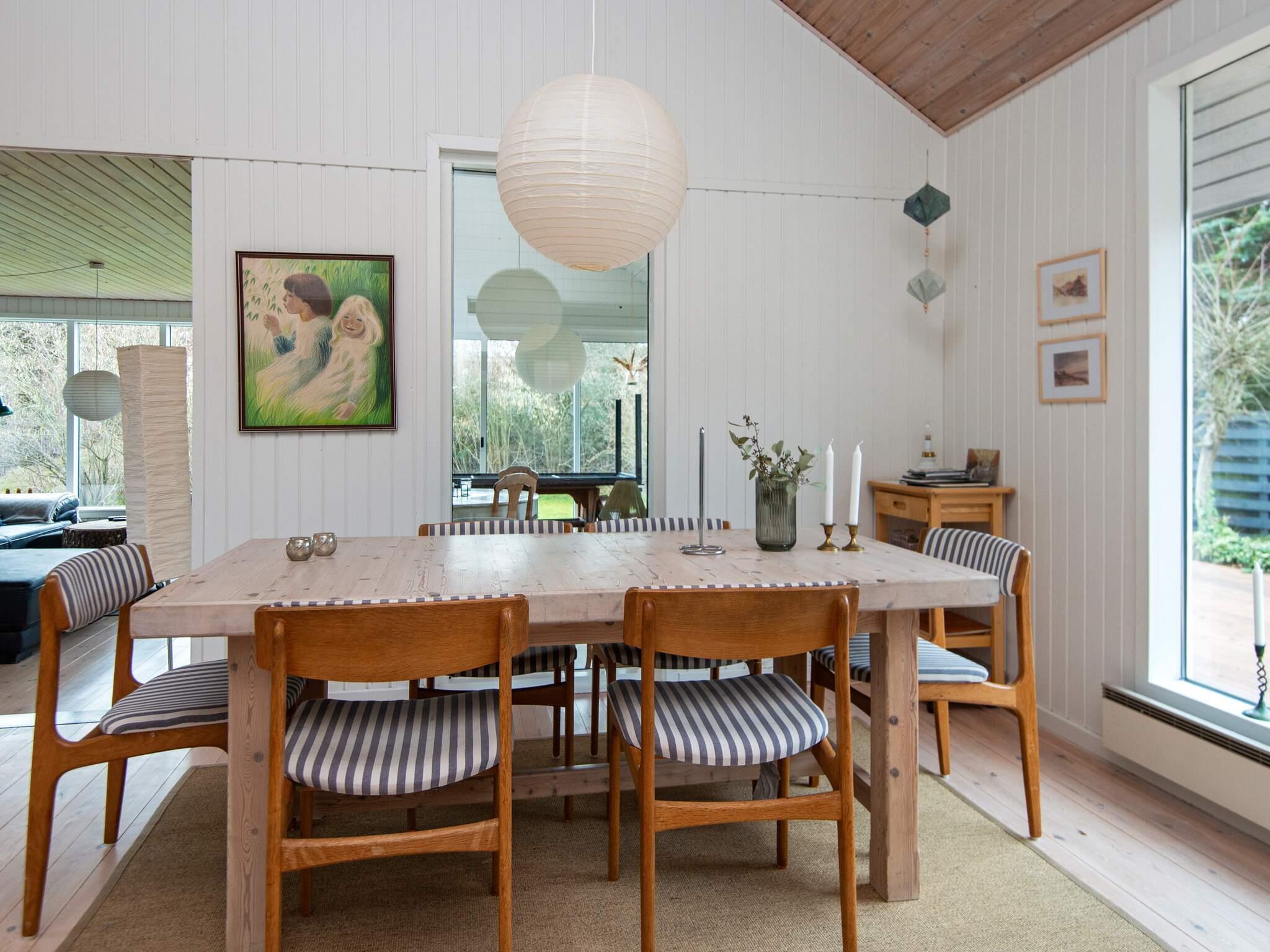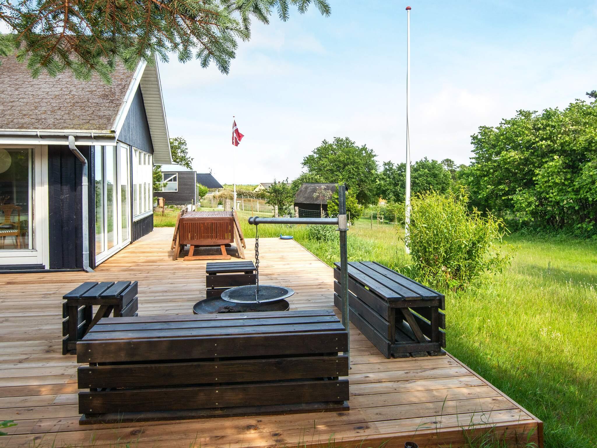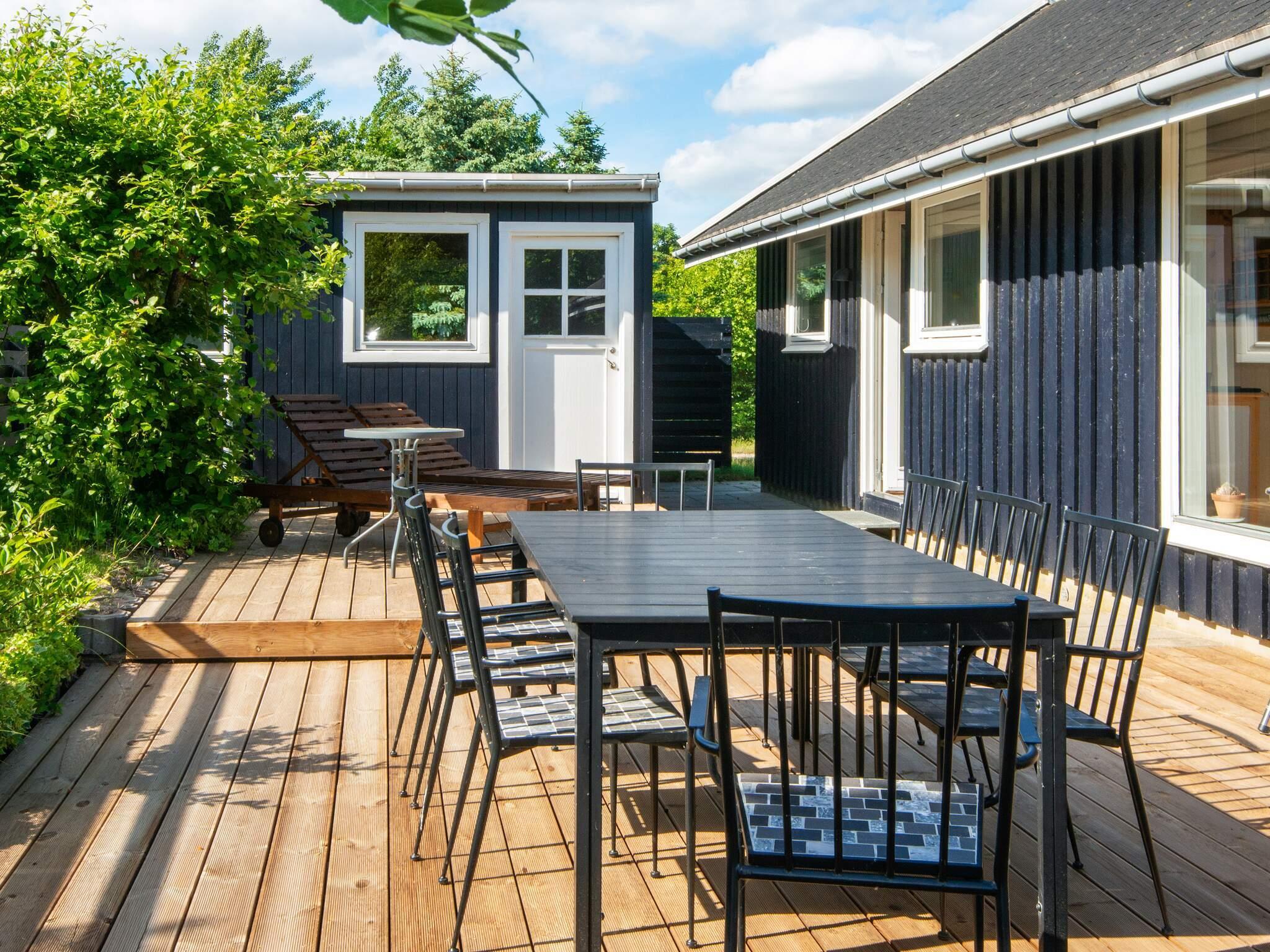 Sommerhus med plads til børnene. Haven er dejlig stor og huset ligger på en lille, stille vej med ganske få huse. Der er plads til boldspil og andre lege eller bare det at nyde solen på den store terrasse. Indenfor er der også tænkt på børnene, specielt den afskærmede hems er et godt hyggested for dem. I udestuen kan naturens gang følges indefra, hvor der samtidig kan spilles spil og andre hyggeting. Rummet får dejligt meget lys, og i stue og køkkenet er der højt til loftet, som giver en stor rumopfattelse. Udlejes ikke til ungdomsgrupper.
