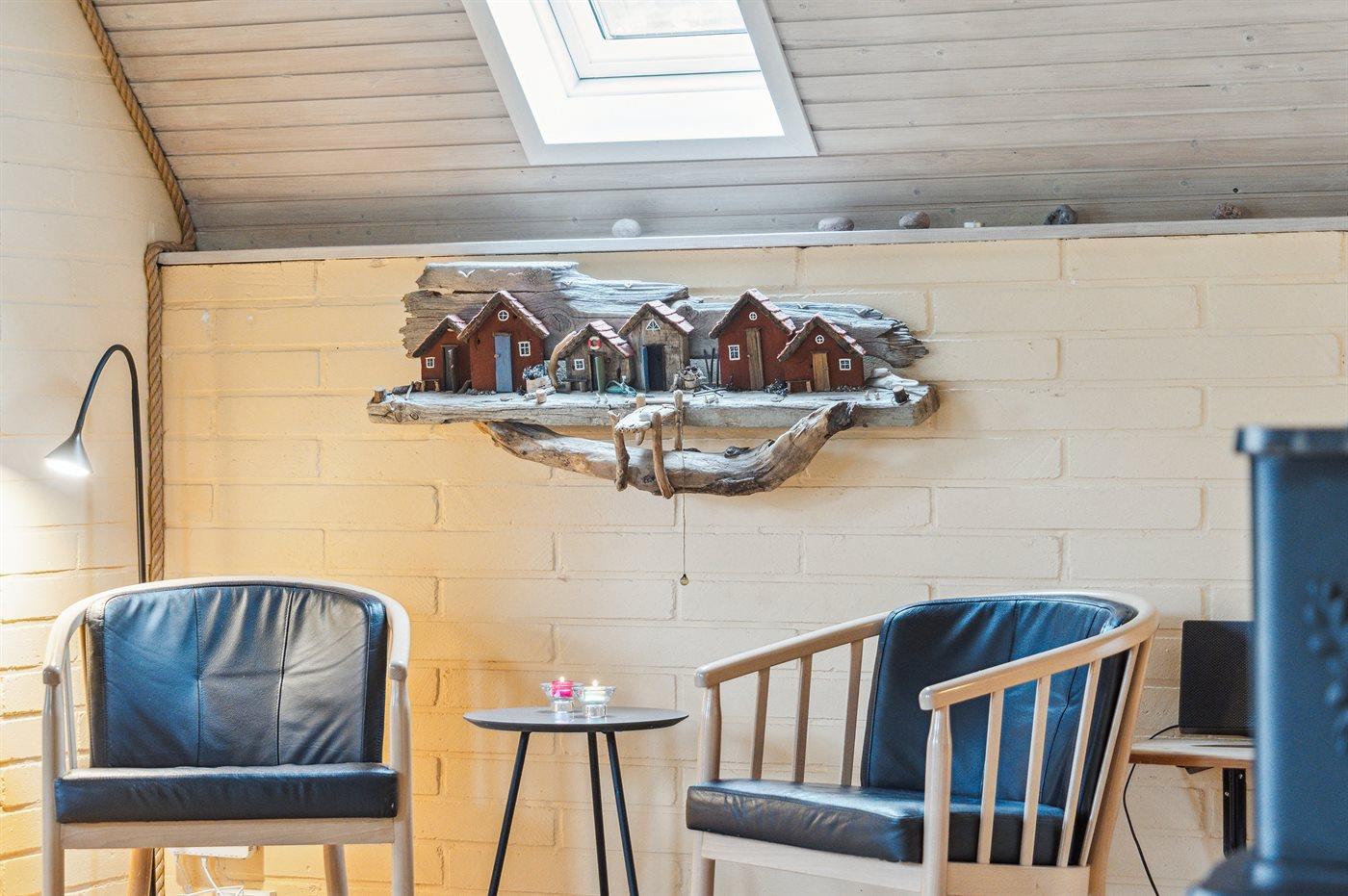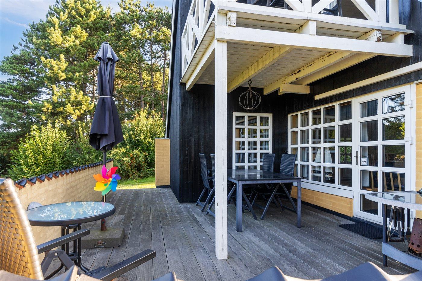 Til huset hører en dejlig terrasse, hvor der altid er mulighed for at finde en plads i læ for vinden, således man kan nyde timer i det fri, og fra terrassen på 1. sal kan området/havet skimtes. Sommerhuset er godt indrettet og passer rigtig fint til f.eks. en familie med to børn eller ét par.