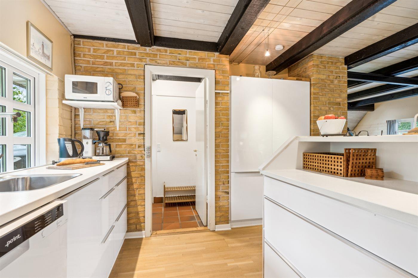 Køkkenet er udstyret med 1 køleskab. Der er 4 keramiske kogeplader, varmluftovn, mikrobølgeovn samt opvaskemaskine.